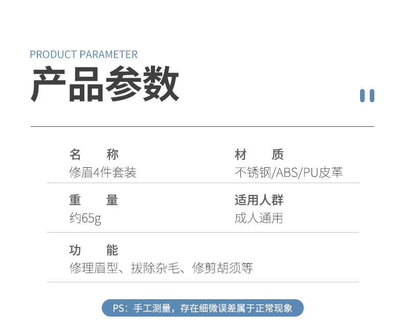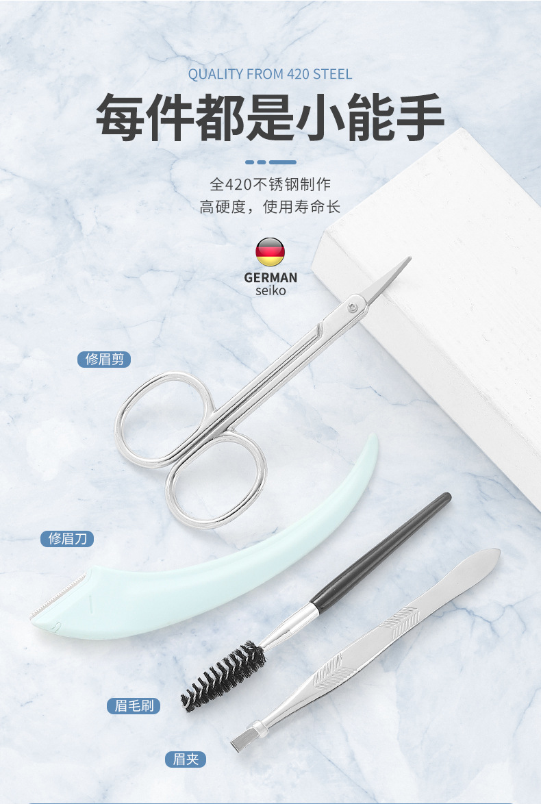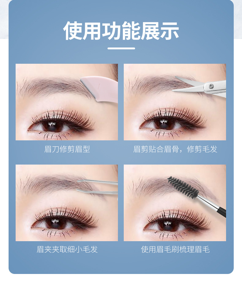 多用修眉刀套装随身美妆镜眉夹眉剪4件套拔毛镊子初学者美妆工具