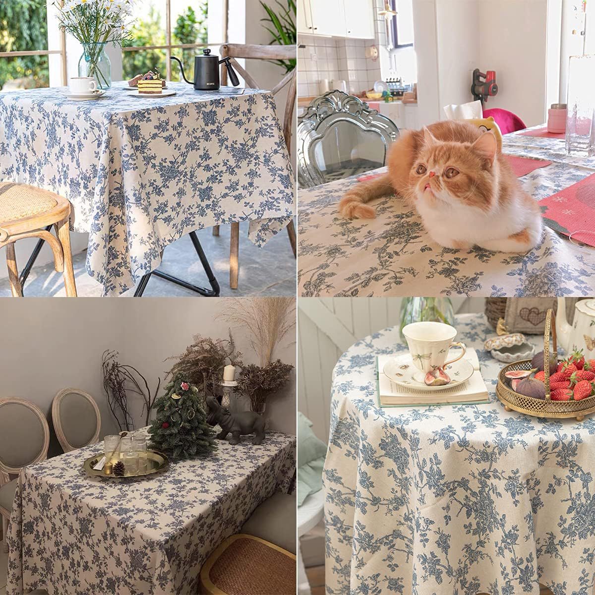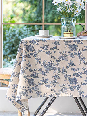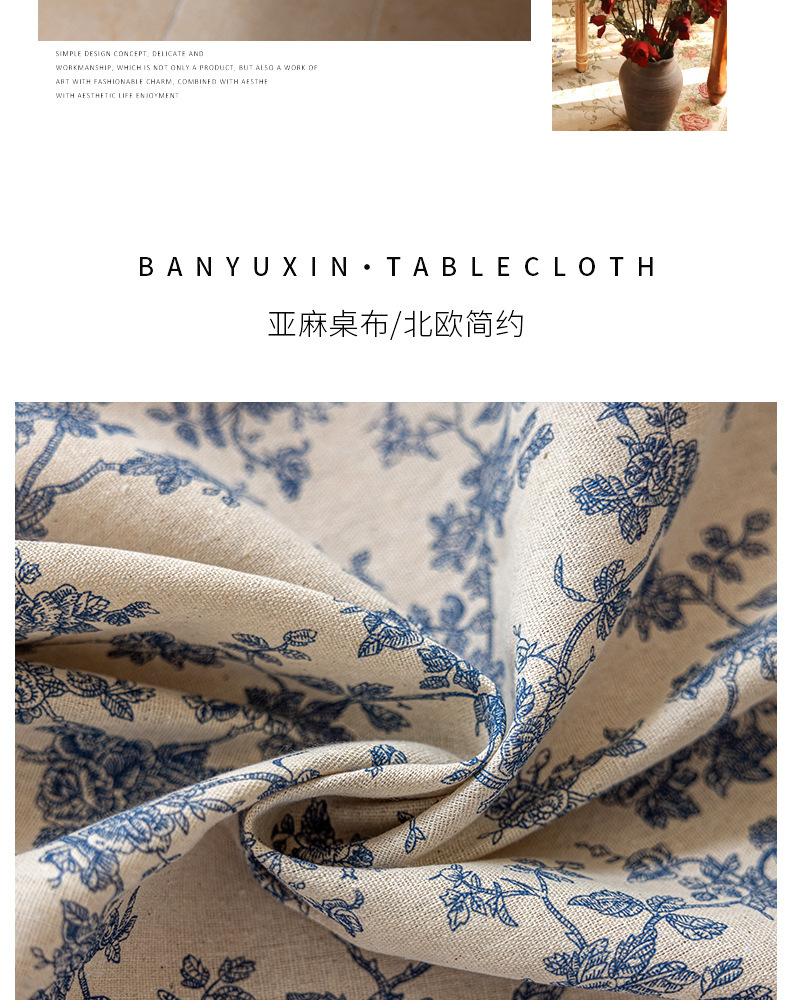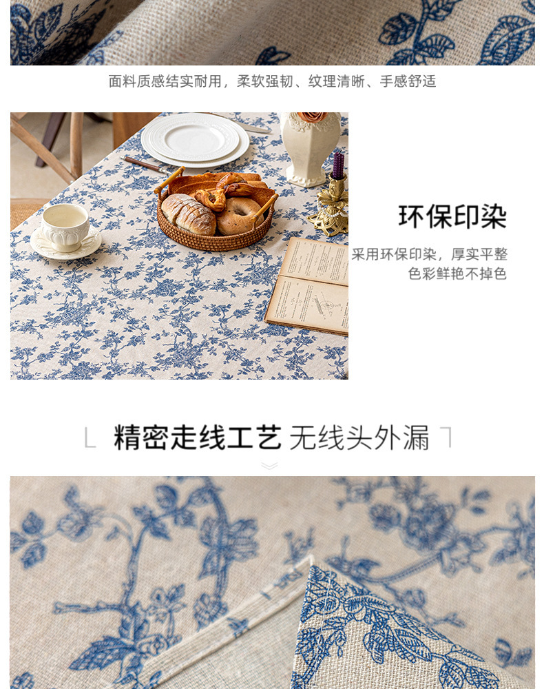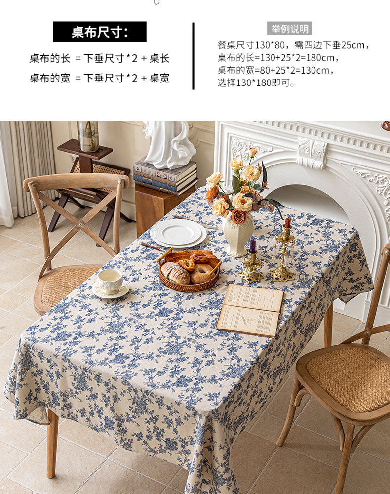 美式田园布艺桌布家用餐桌棉麻复古风蓝色印花批发零售家用盖巾台