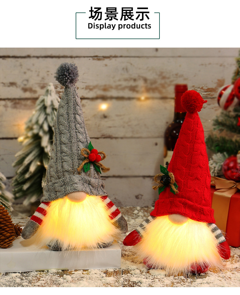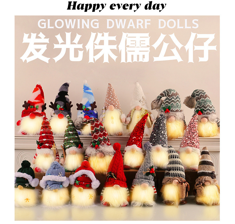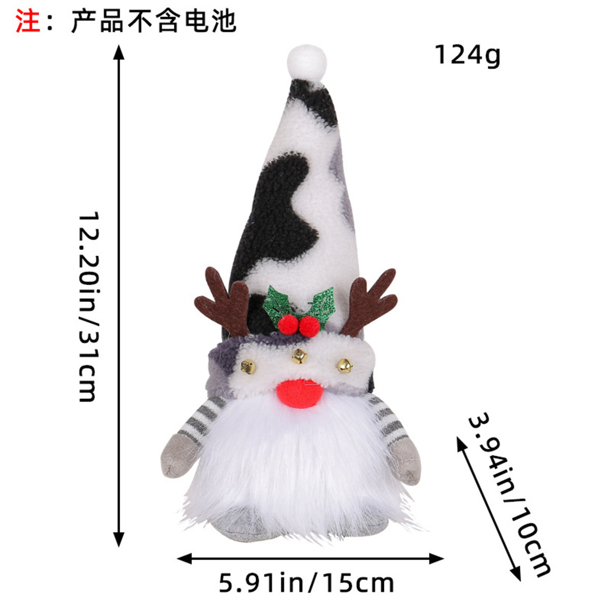 跨境圣诞节装饰圣诞亮片带灯鲁道夫公仔圣诞发光无脸侏儒娃娃摆件