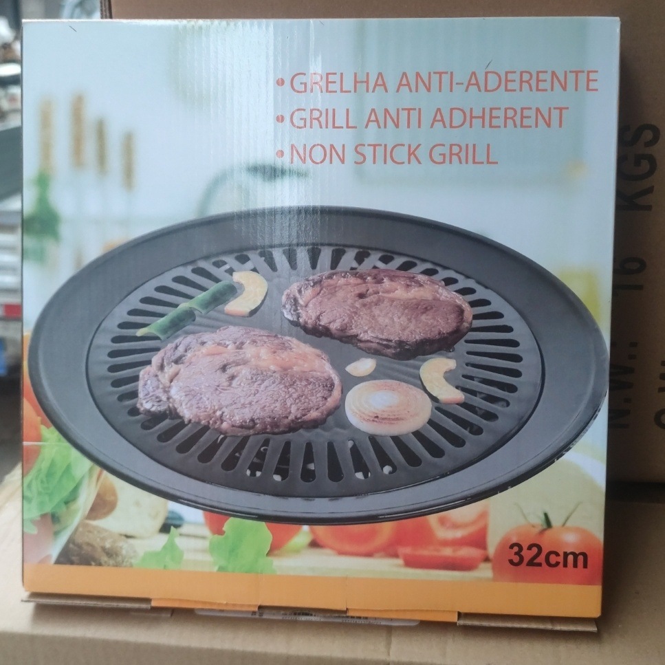 跨境贴标外贸韩式烧烤盘烤肉盘卡式炉烤盘家用不粘圆形煎烤盘加厚