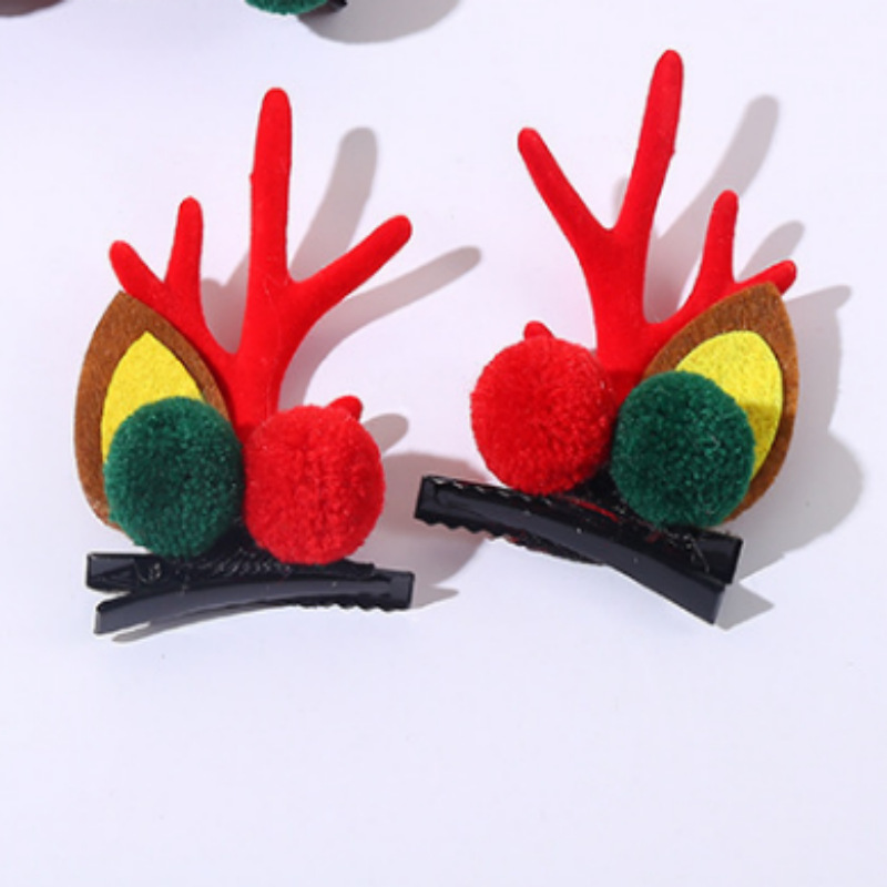 圣诞头饰鹿角儿童发夹圣诞节发卡毛球鸭嘴夹可爱小鹿刘海夹发夹