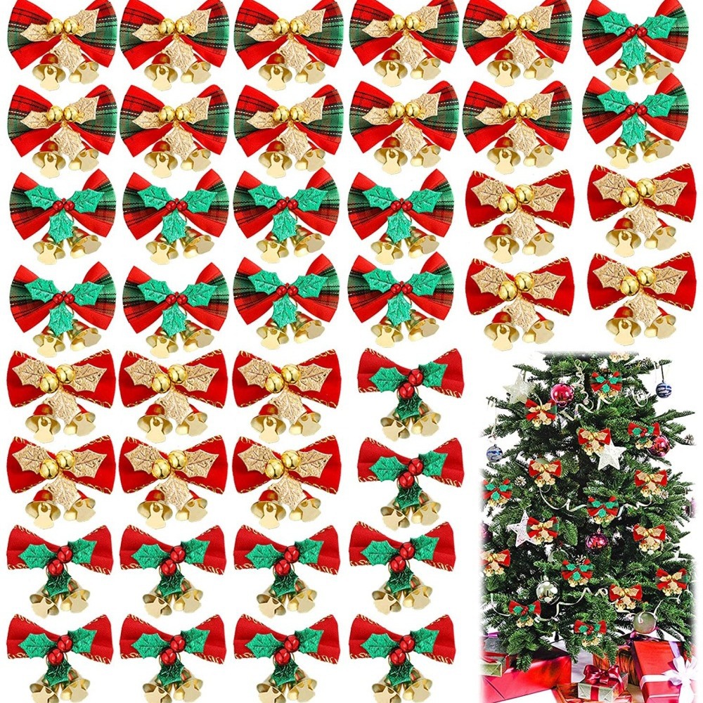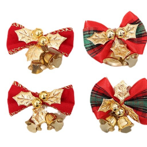 豪贝圣诞装饰品圣诞蝴蝶结带铃铛圣诞礼品装饰圣诞树花环装饰配件