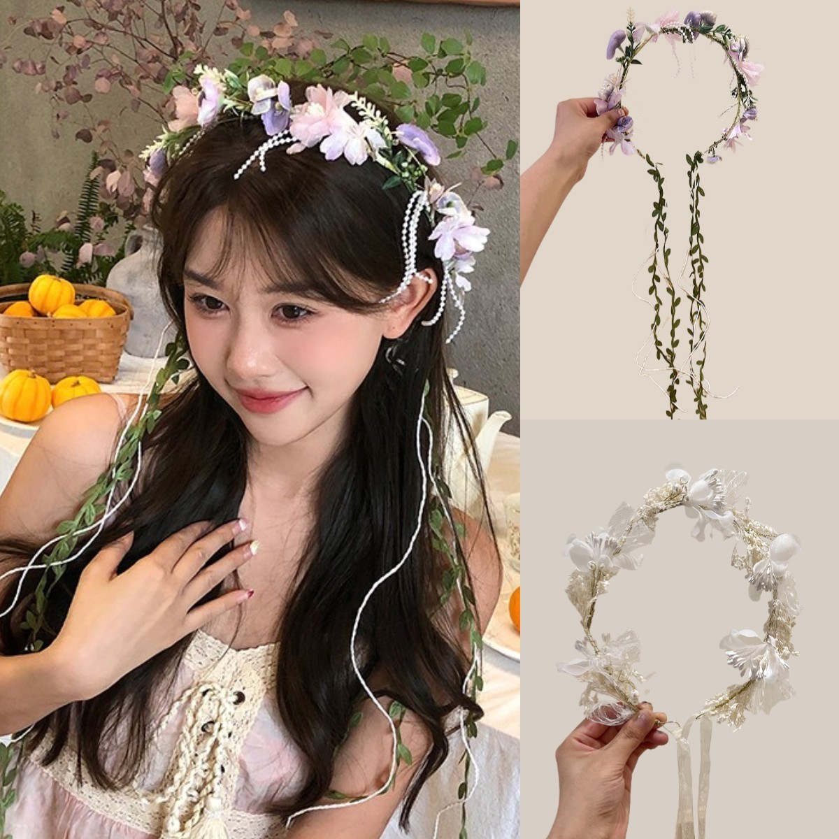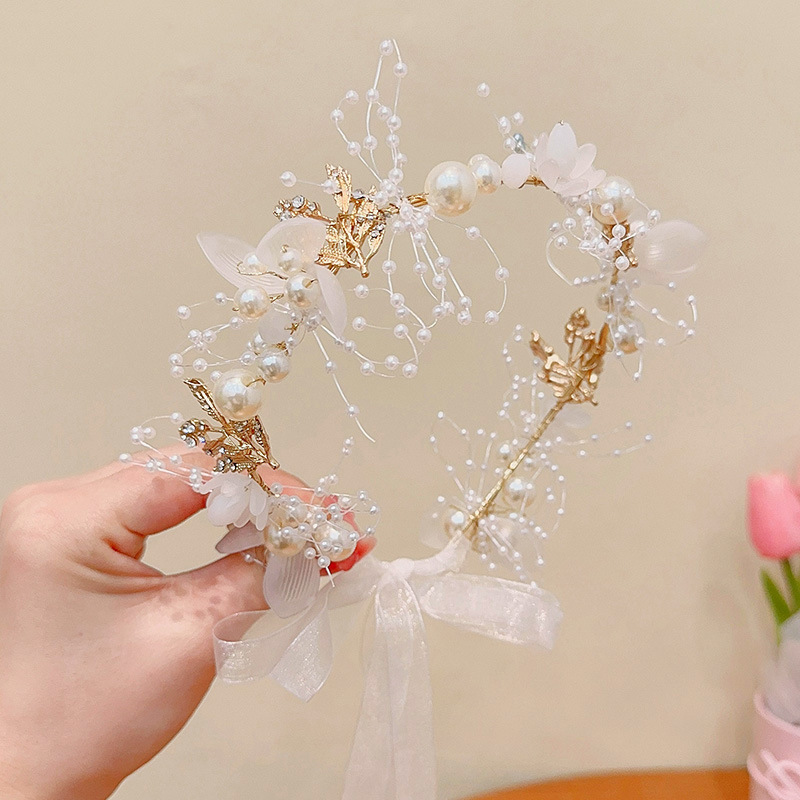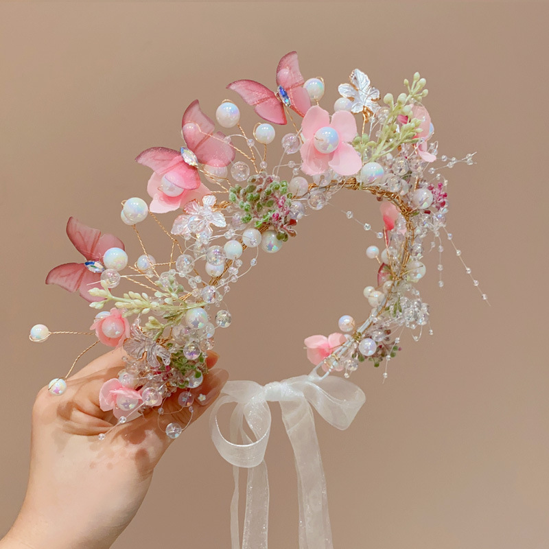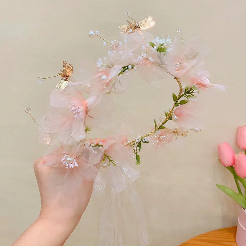 超仙美儿童头饰唯美花环头花童发饰森系女童演出主持度假腕花发箍