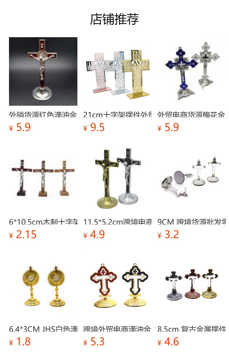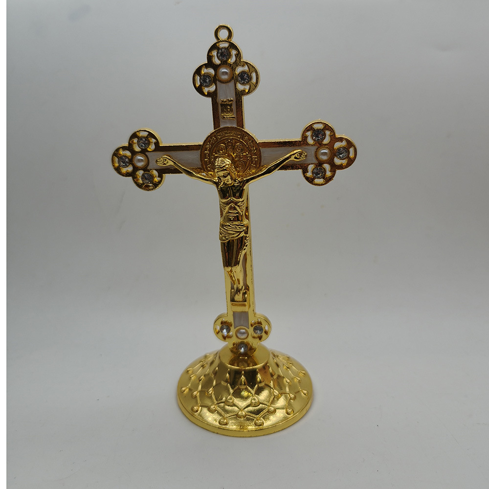 15.5cm高金色十字架带钻金属摆件摆台欧式圣像旅行汽车家居装饰