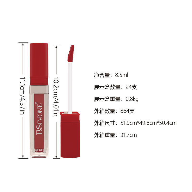 跨境专供展示盒装 丝绒哑光保湿持久唇釉防水防汗不沾杯口红唇釉
