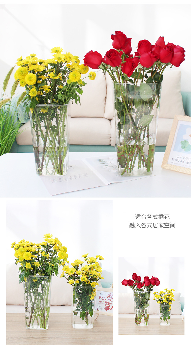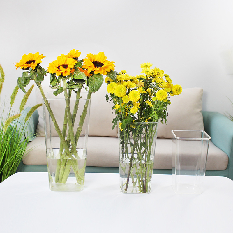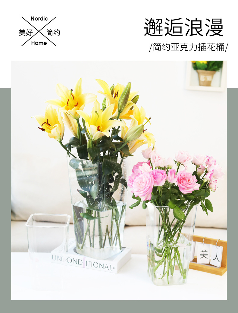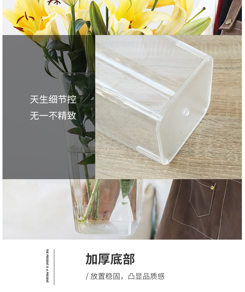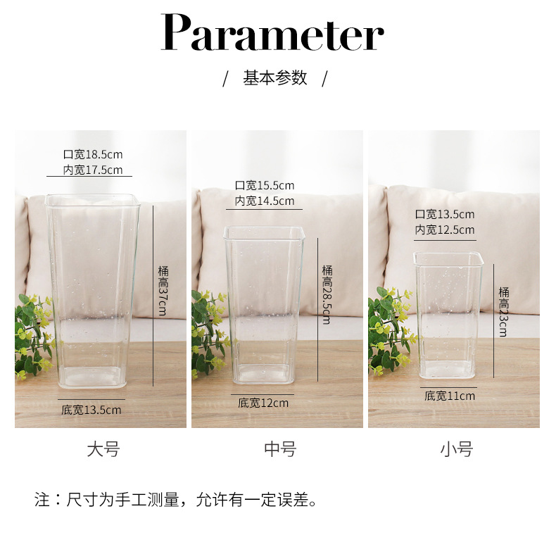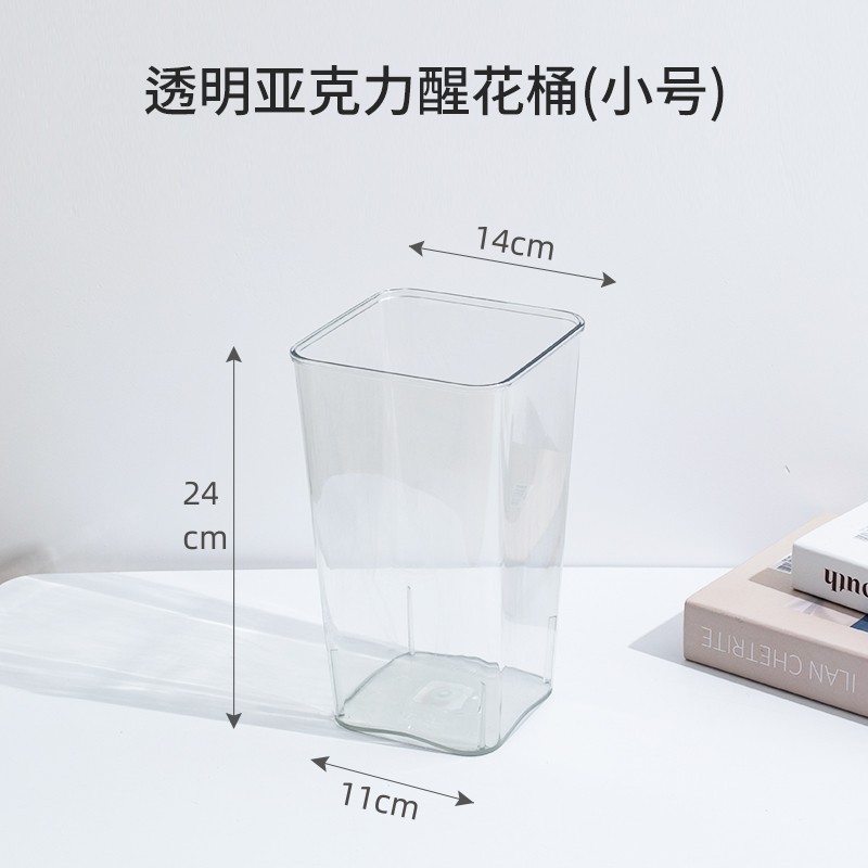 加厚方形透明亚克力醒花桶家用花店深水大号花桶鲜花桶塑料插花桶