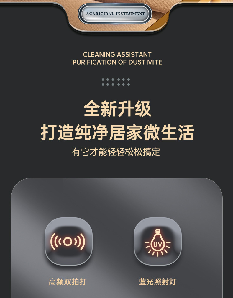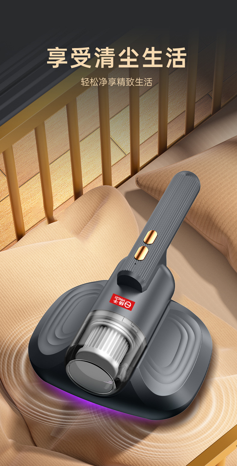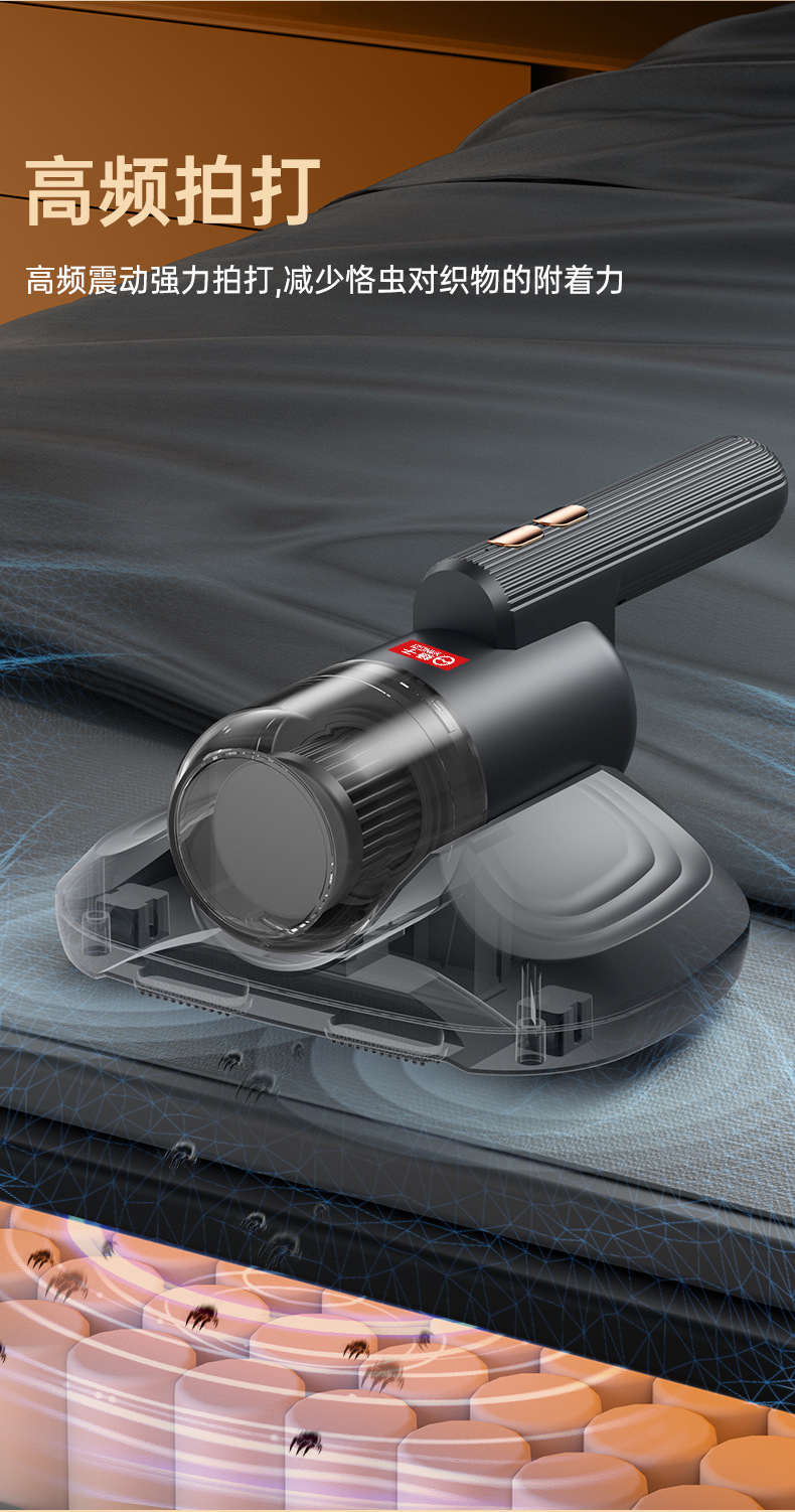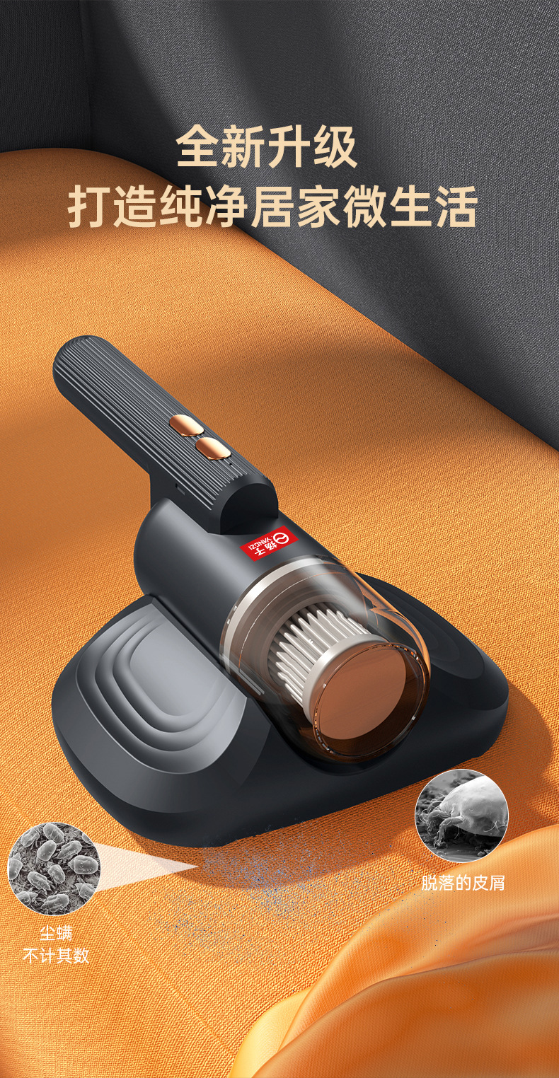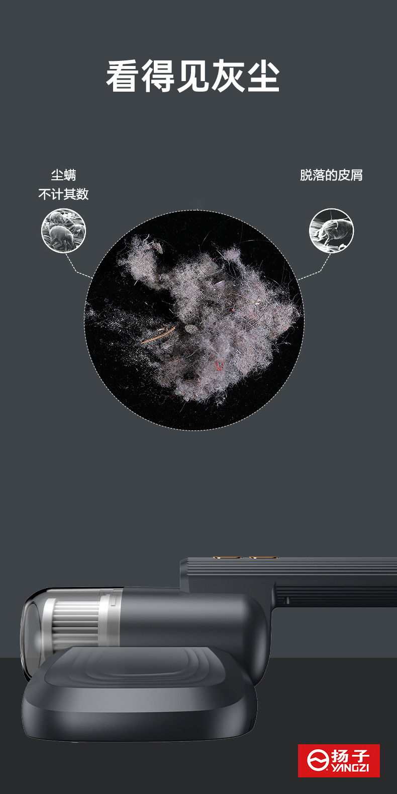 外贸定制logo扬子除螨仪小型手持双拍打除螨器家用无线床上吸尘器