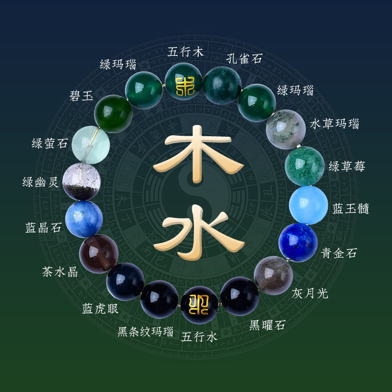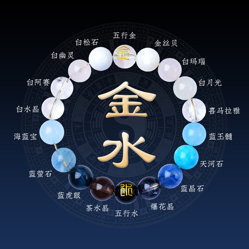 精品五行手链五行手链五行水晶手串五行平衡手链天然水晶手链