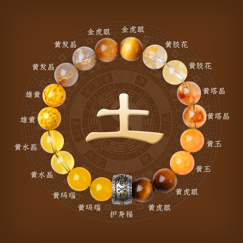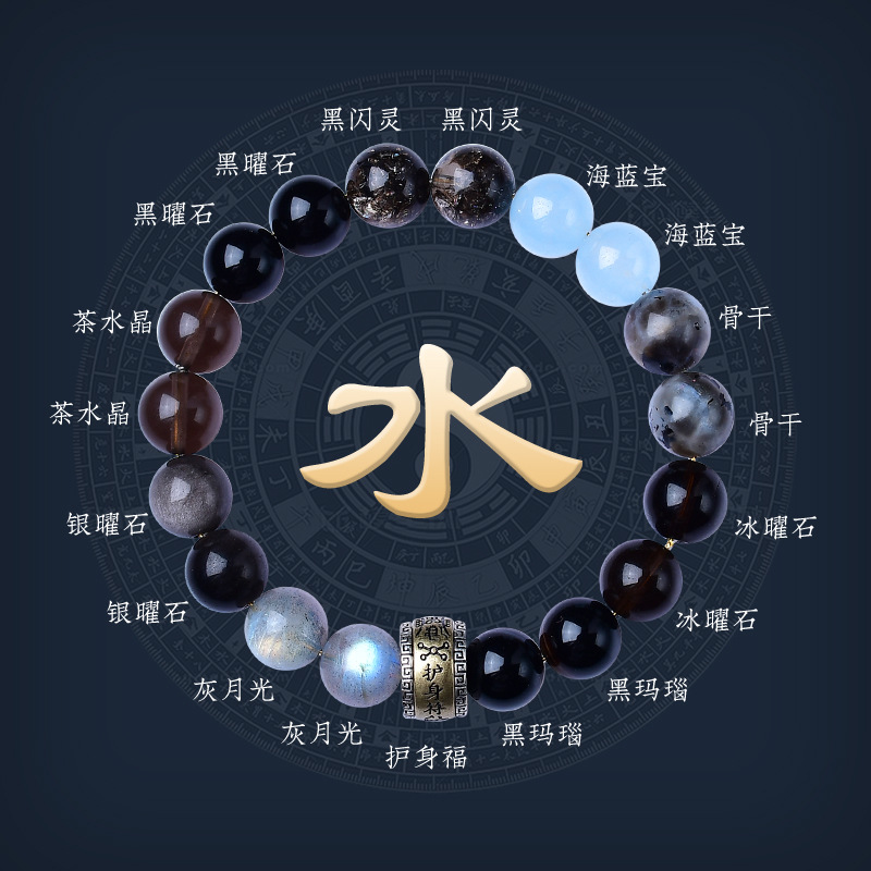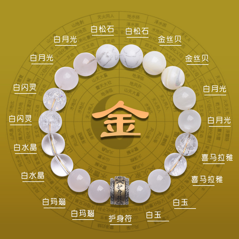五行天然水晶玛瑙玉石镀银s925补金补木补火补水补土护身平衡礼物