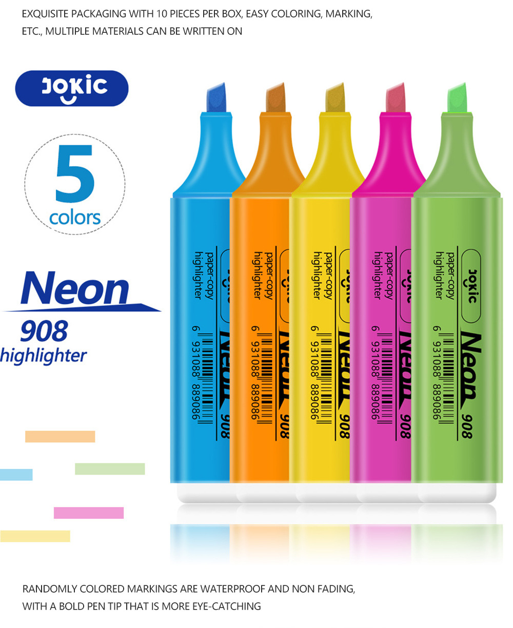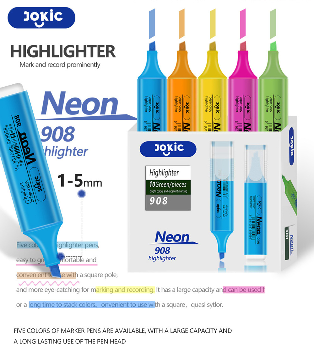 亚马逊热销学生荧光笔记号笔彩色划重点笔荧光大容量标记笔夜光笔