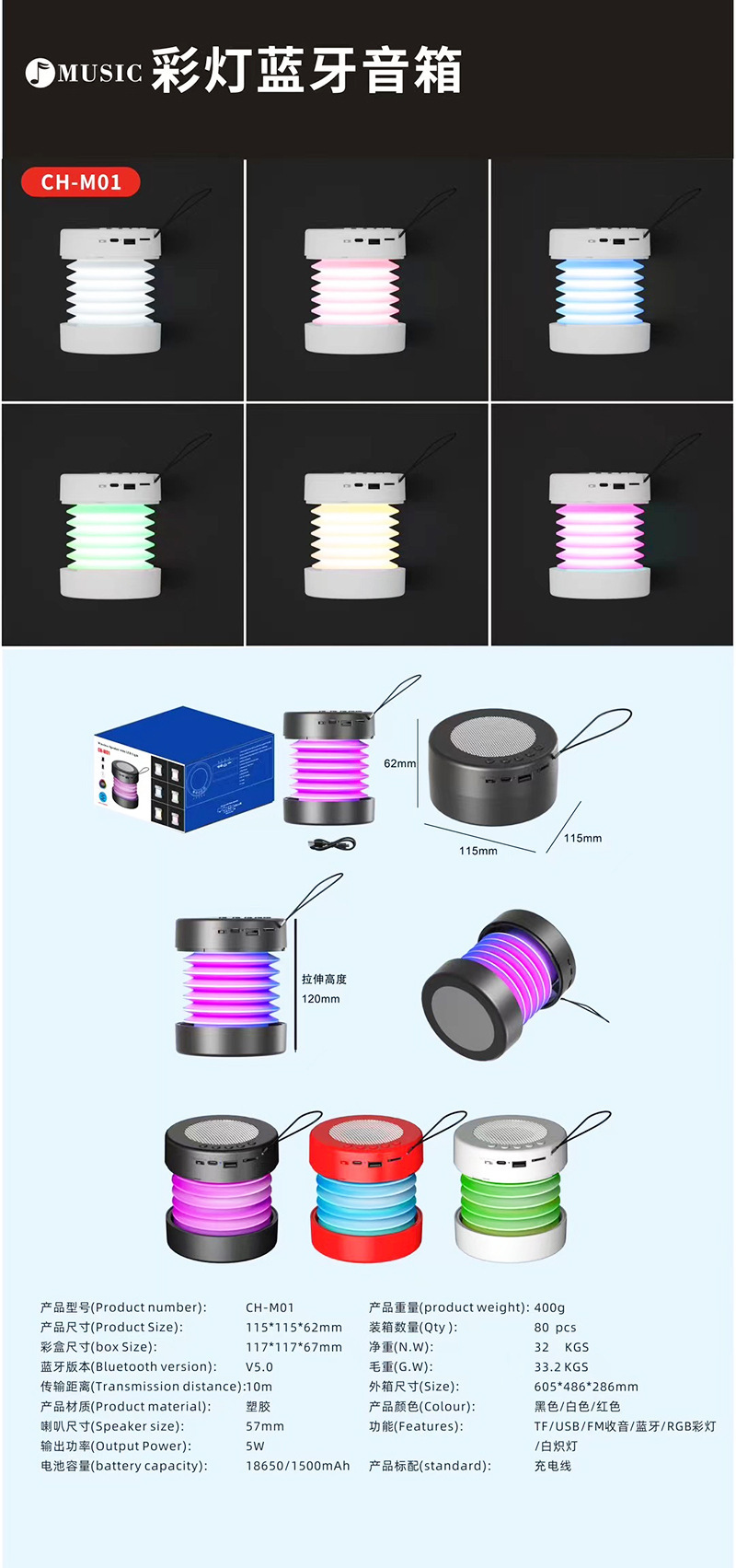 爆款新款无线蓝牙音箱创意可压缩便携式吊带炫彩迷你低音炮*