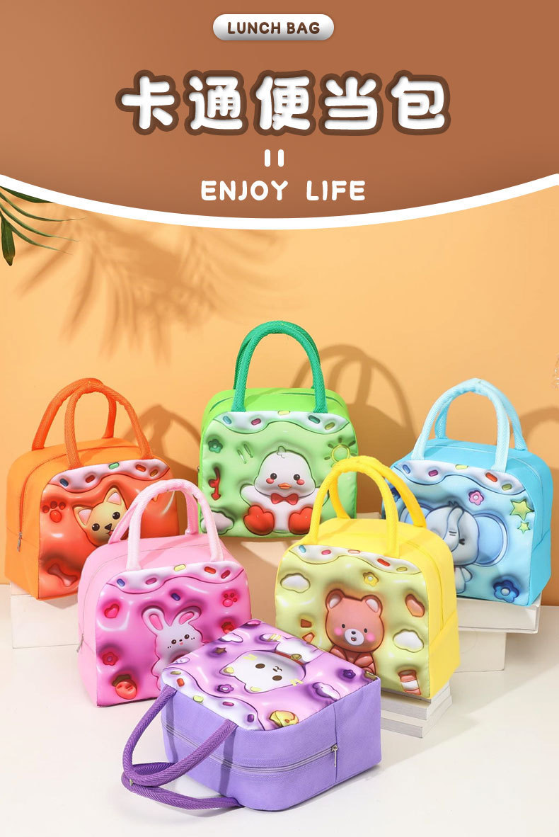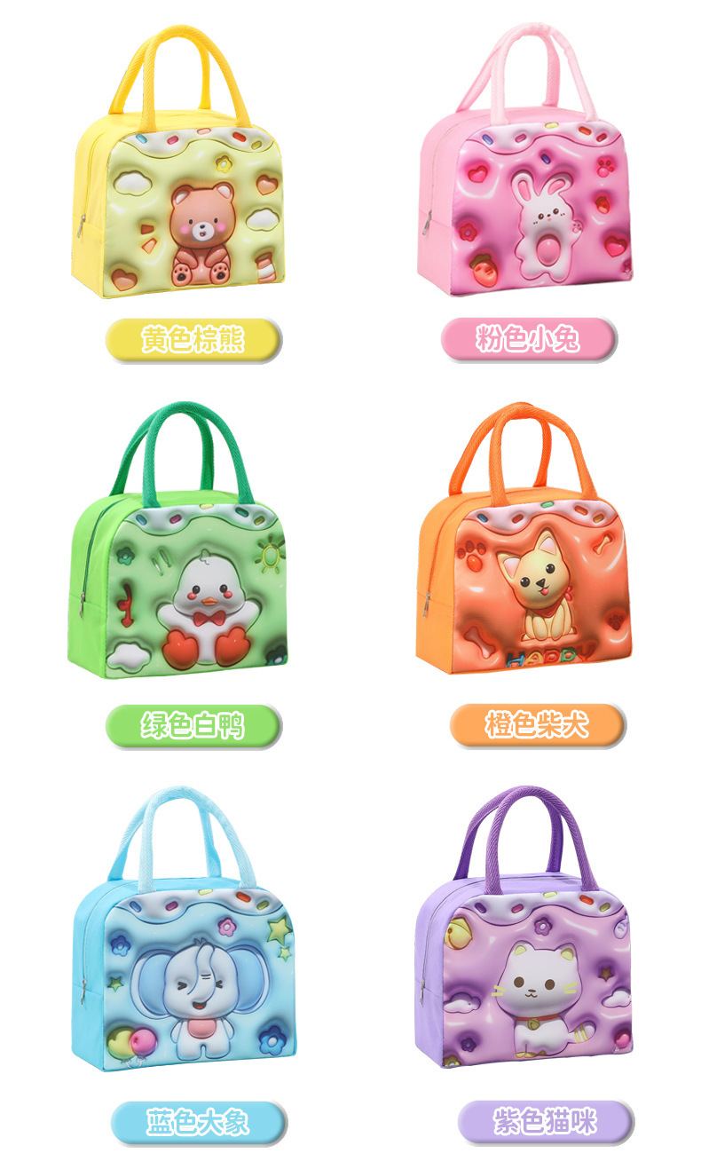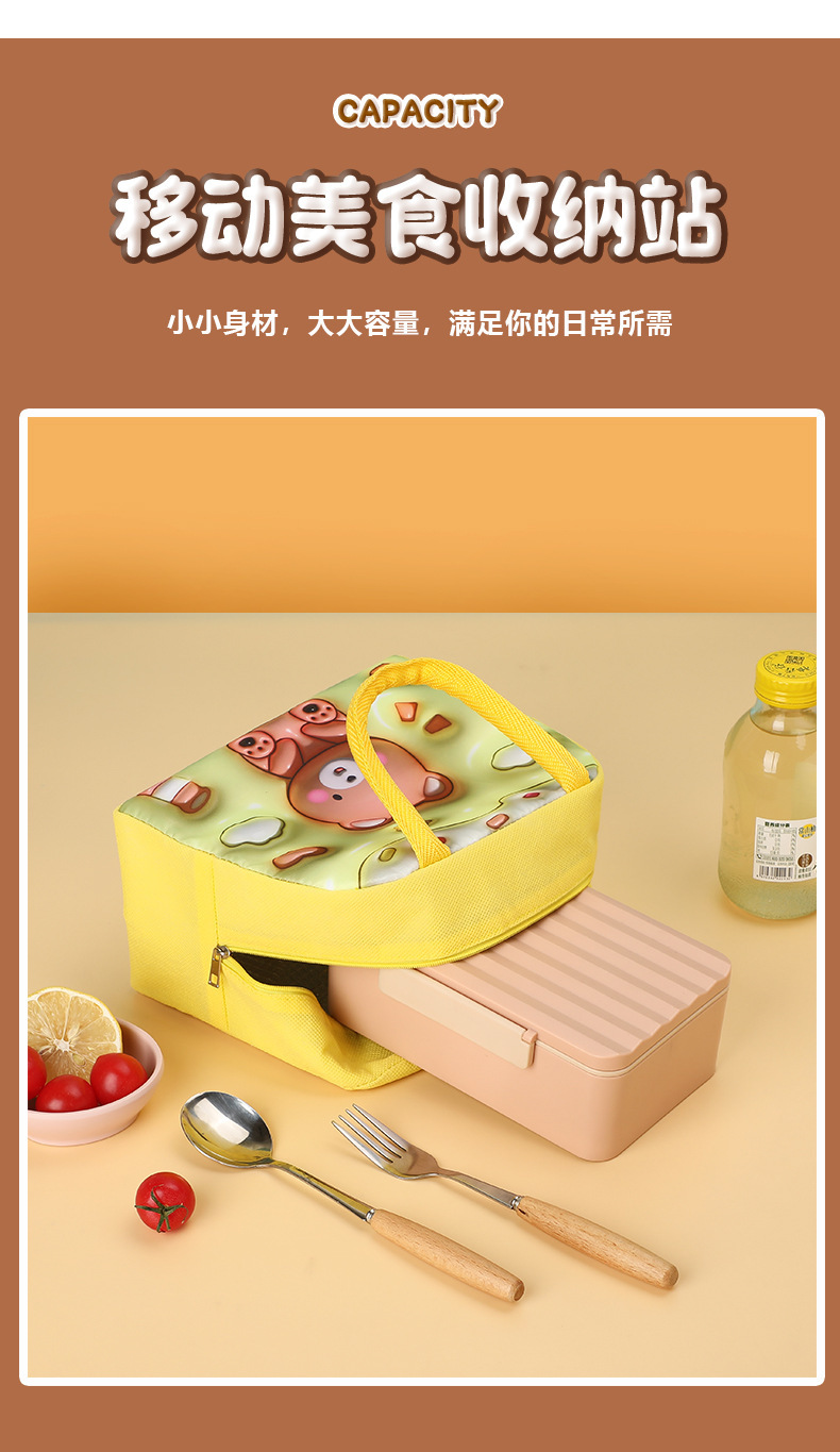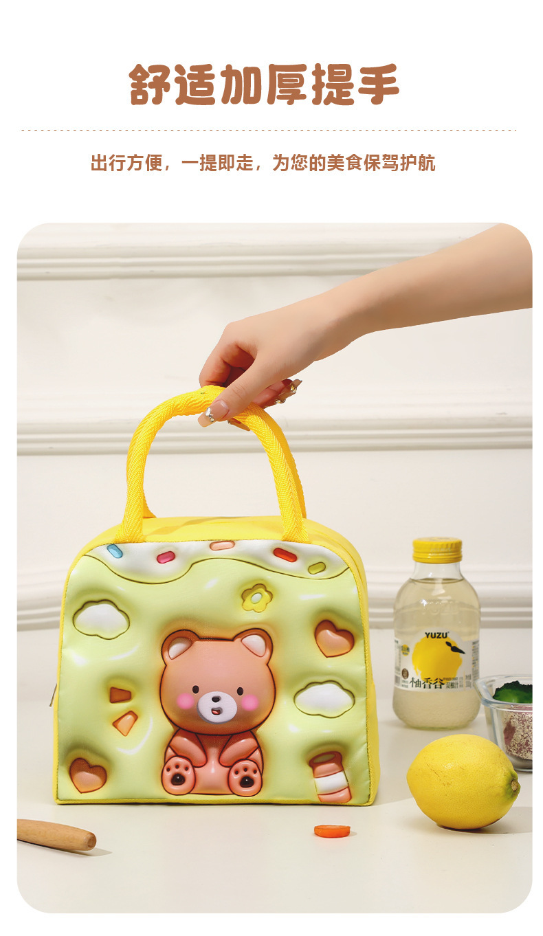 可爱小熊便当包加厚铝箔便捷手提午餐保温包儿童3D卡通饭盒袋批发