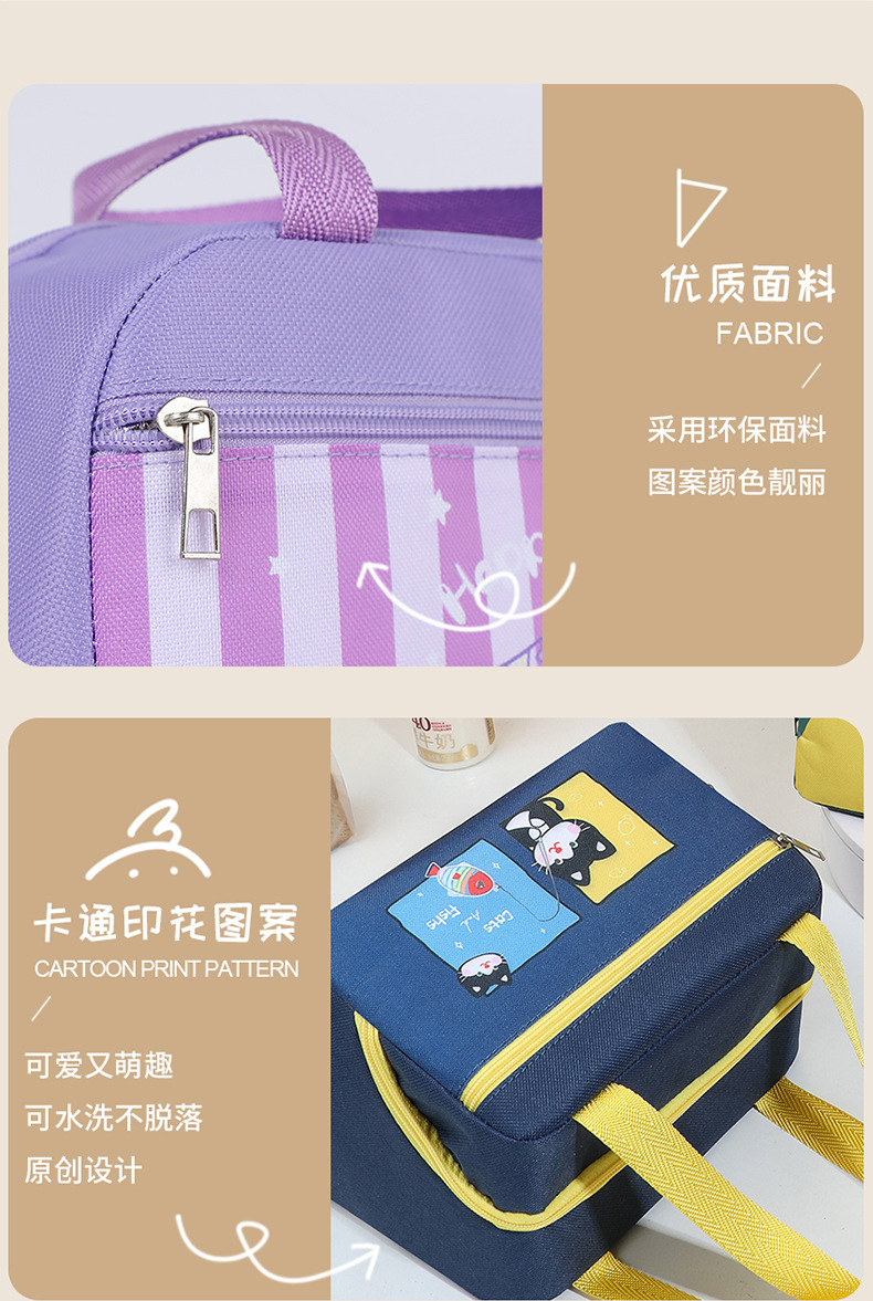 卡通萌宠图案午餐包方形大容量保鲜野餐包加厚铝箔冰包保温便当包