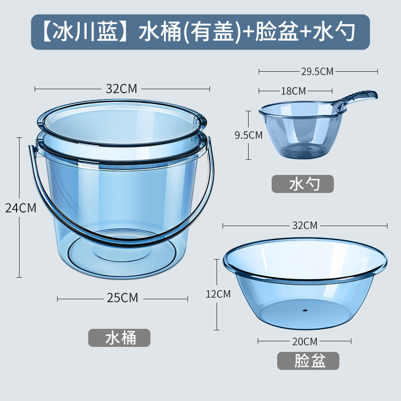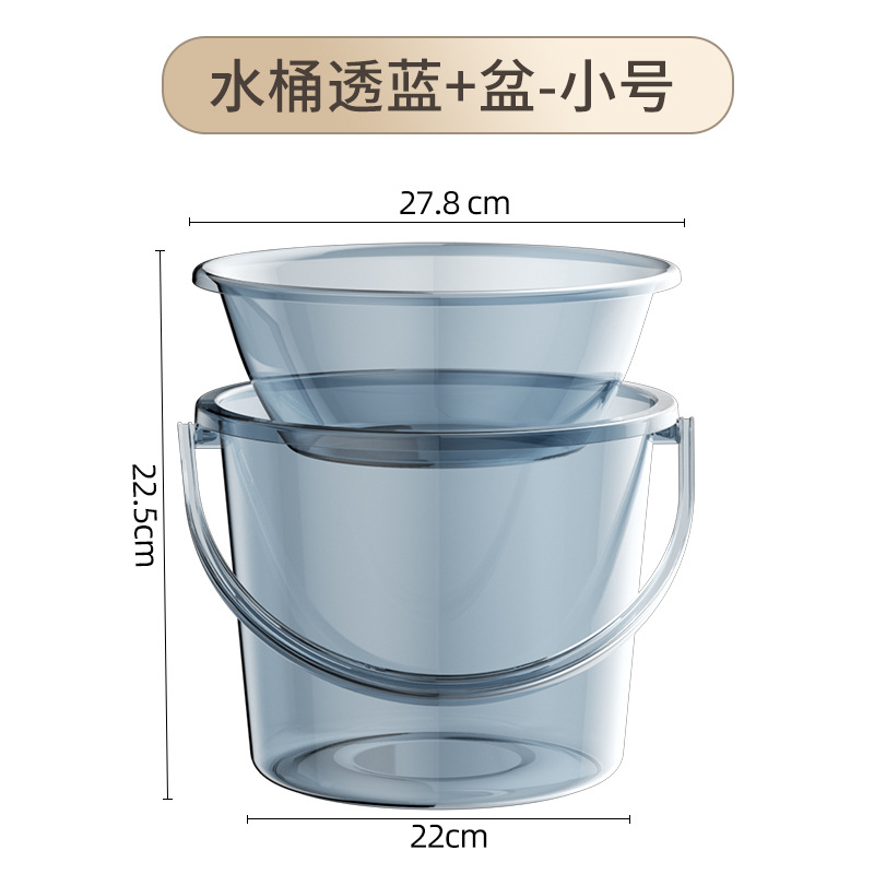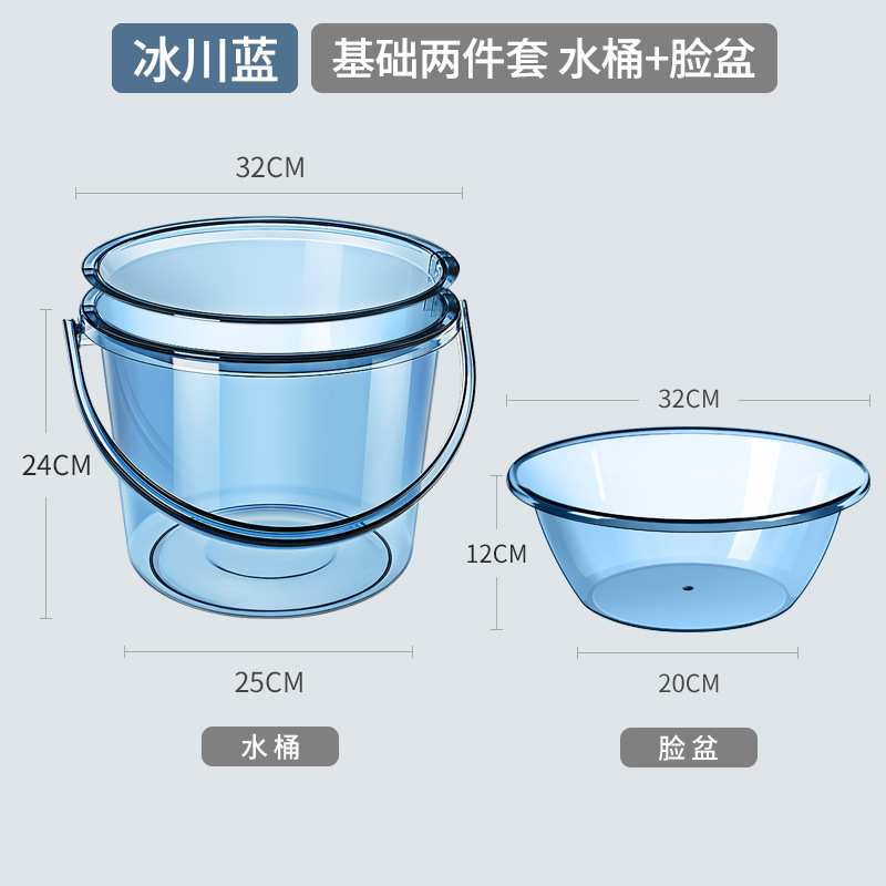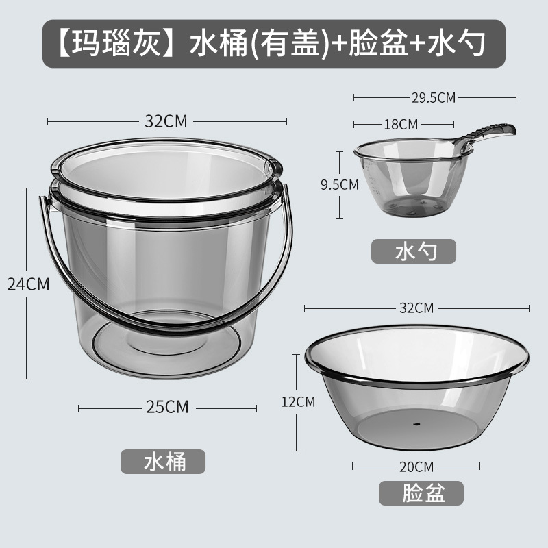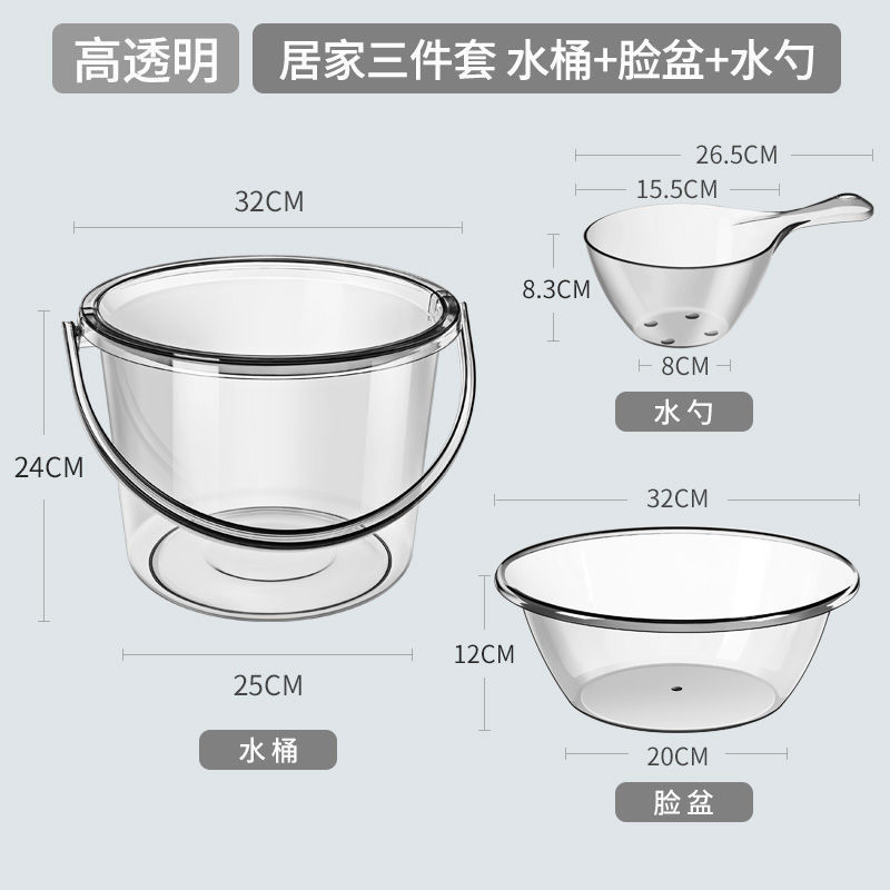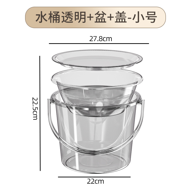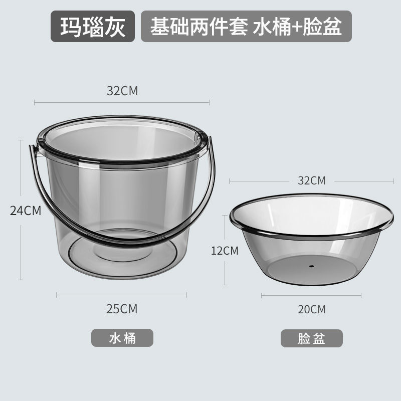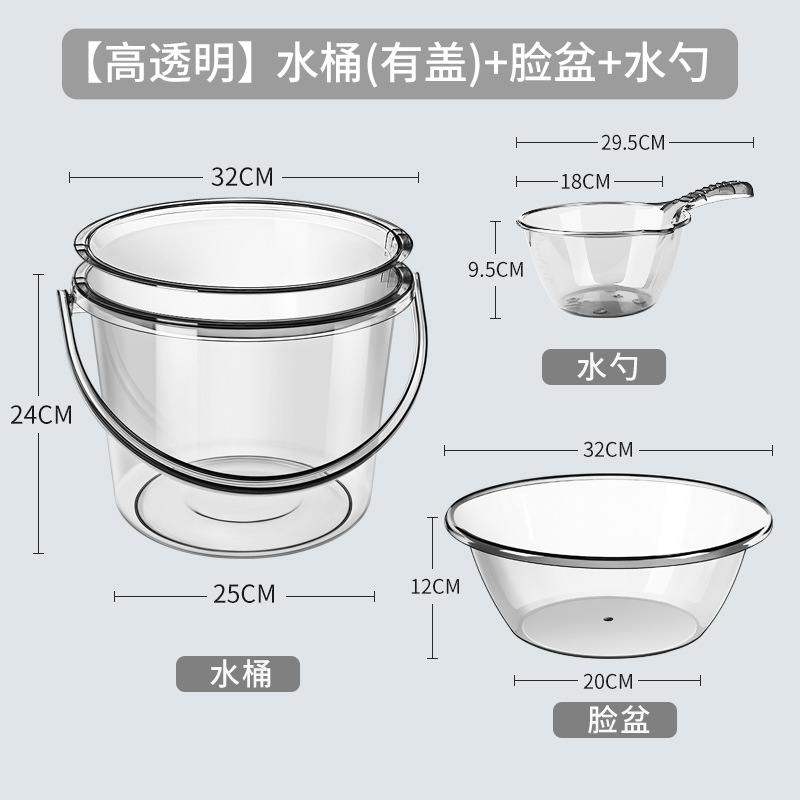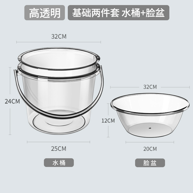 水桶脸盆套装 家用储水用洗衣手提宿舍用轻奢透明带盖加厚塑料桶