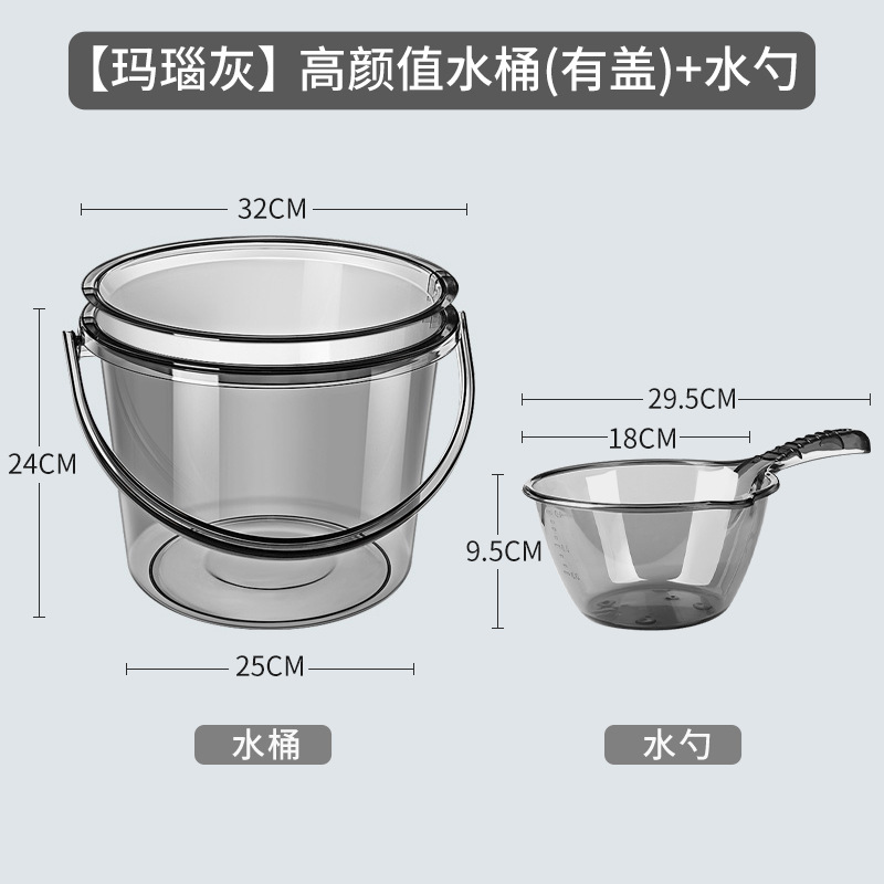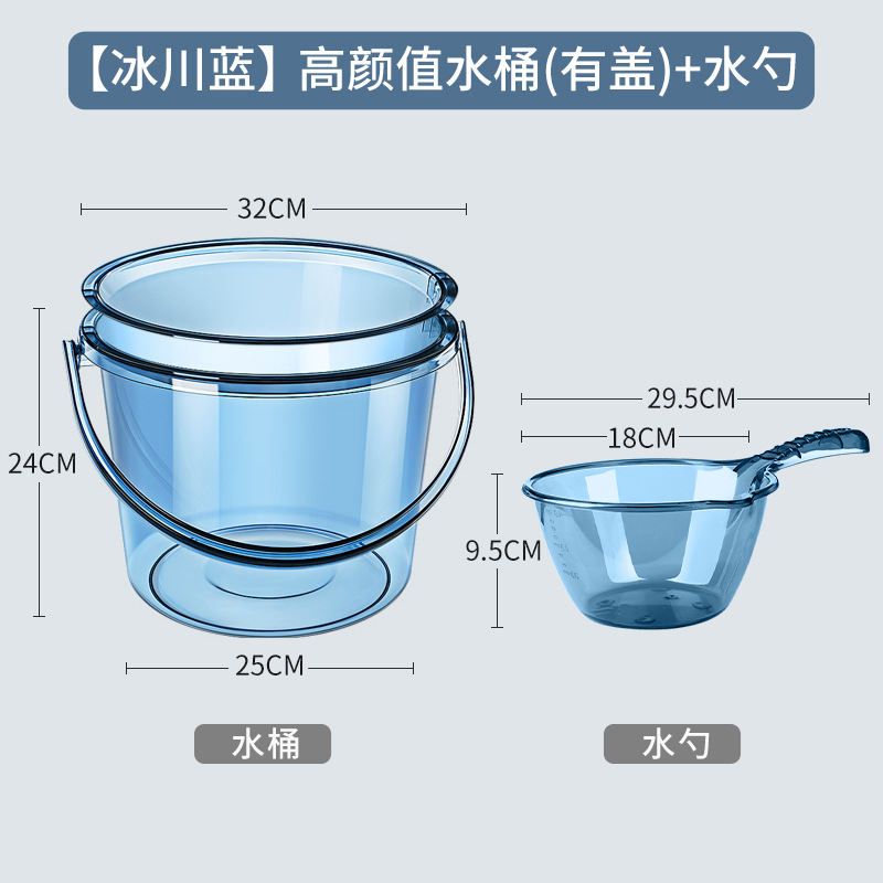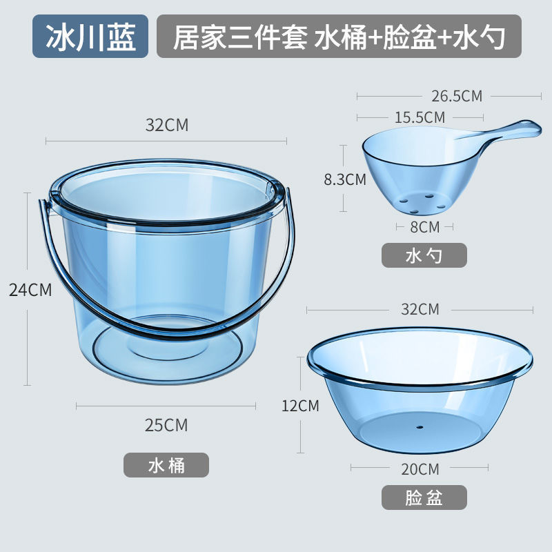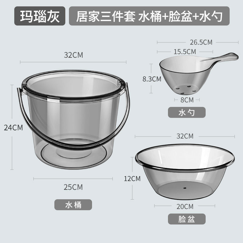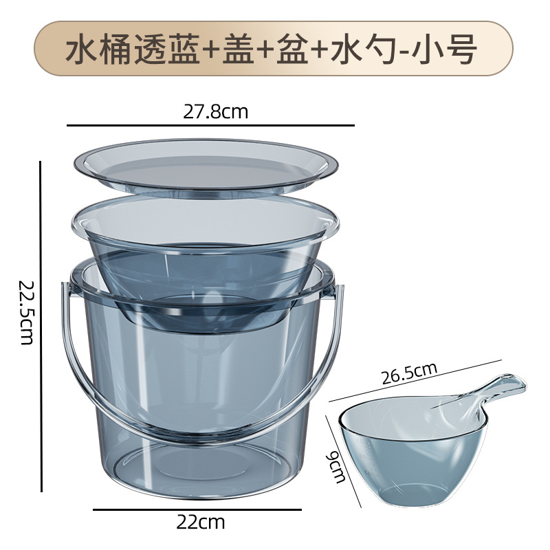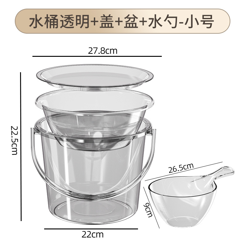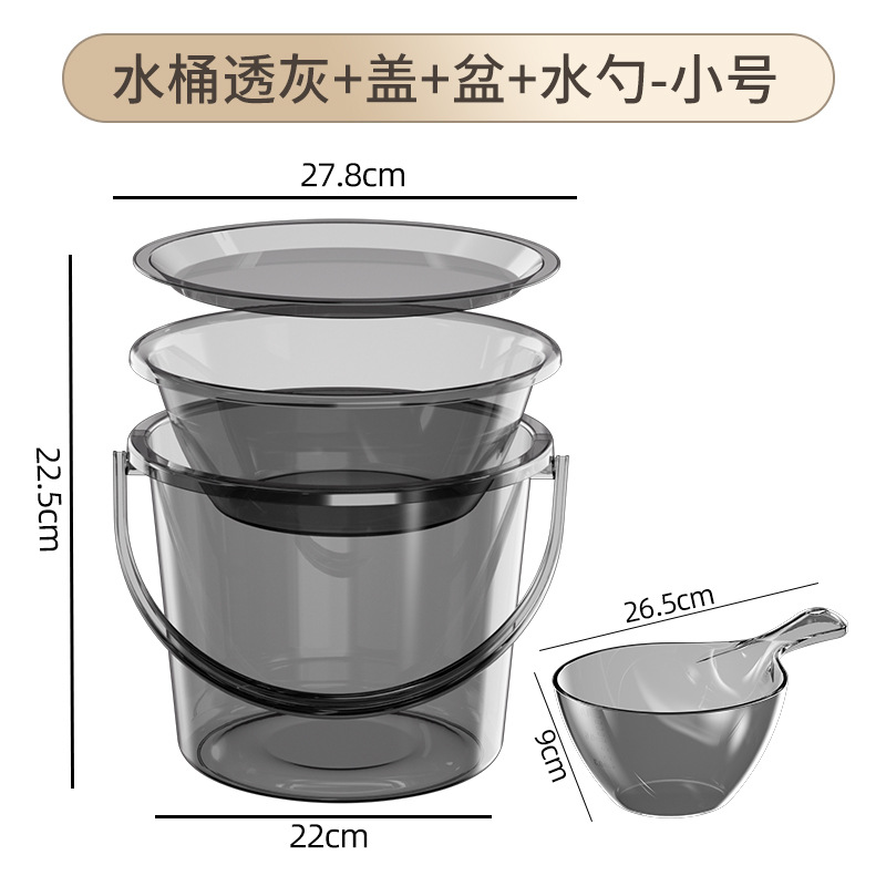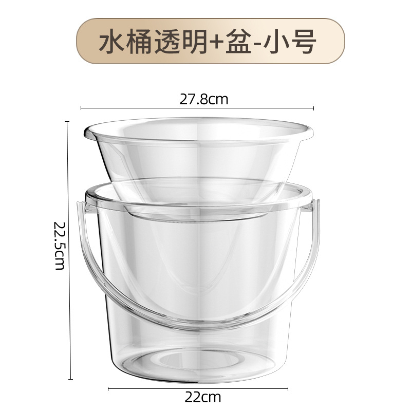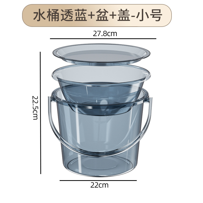 水桶脸盆套装 家用储水用洗衣手提宿舍用轻奢透明带盖加厚塑料桶