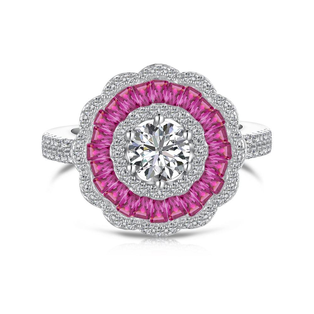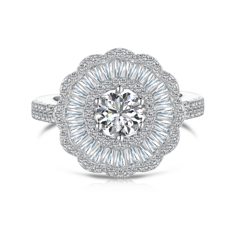 小红书s925纯银花朵套装女镶嵌排钻梯方锆石时尚轻奢个性婚宴套装