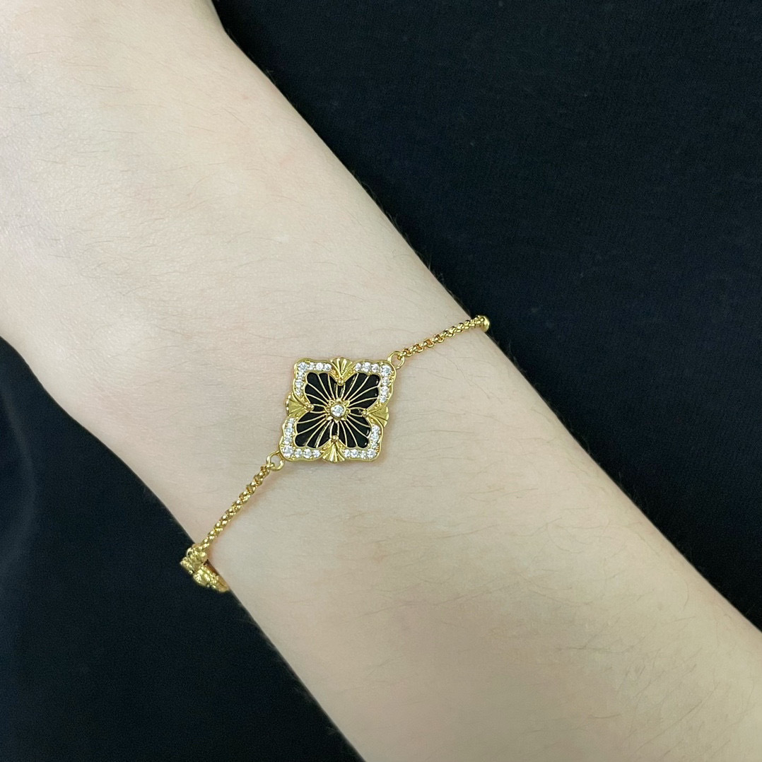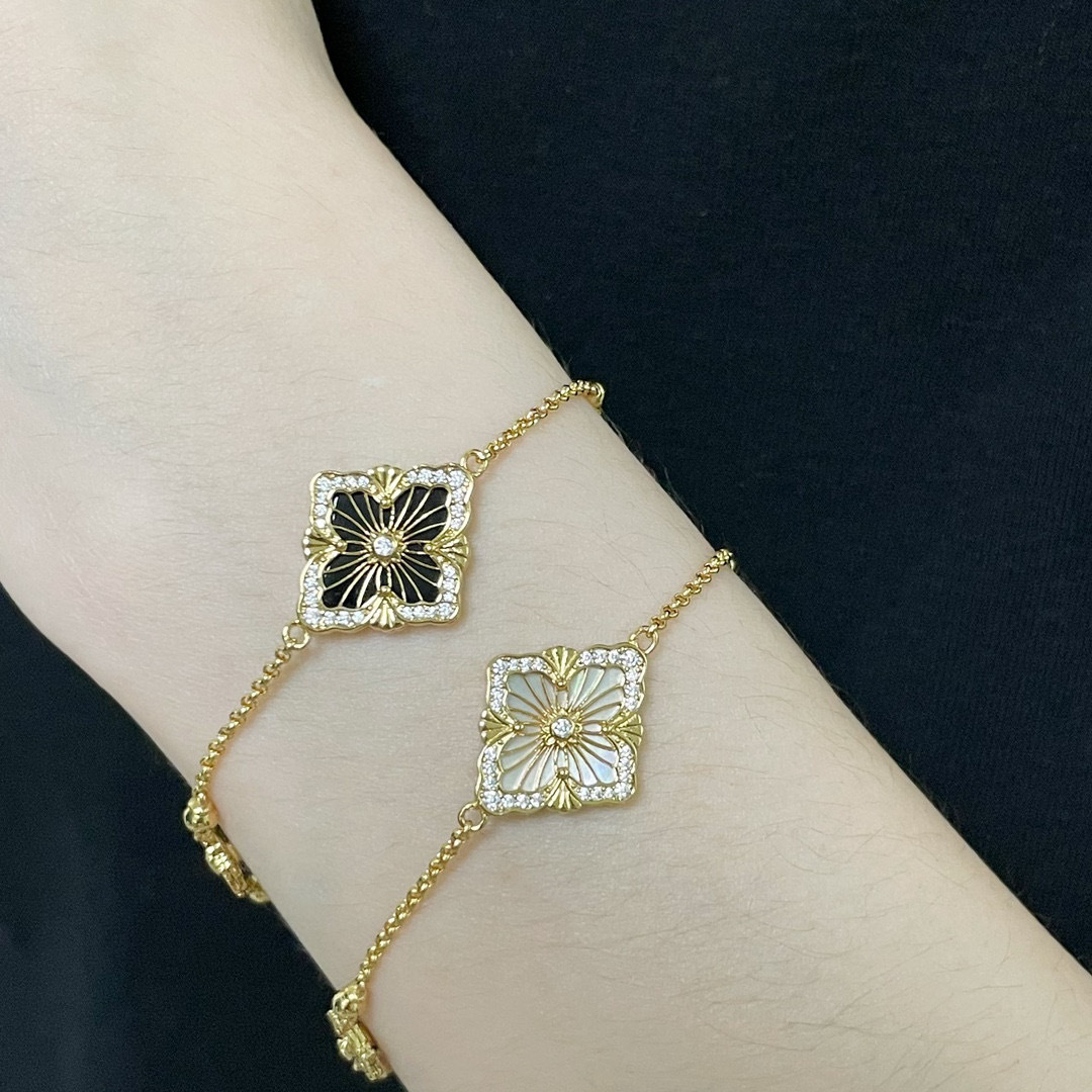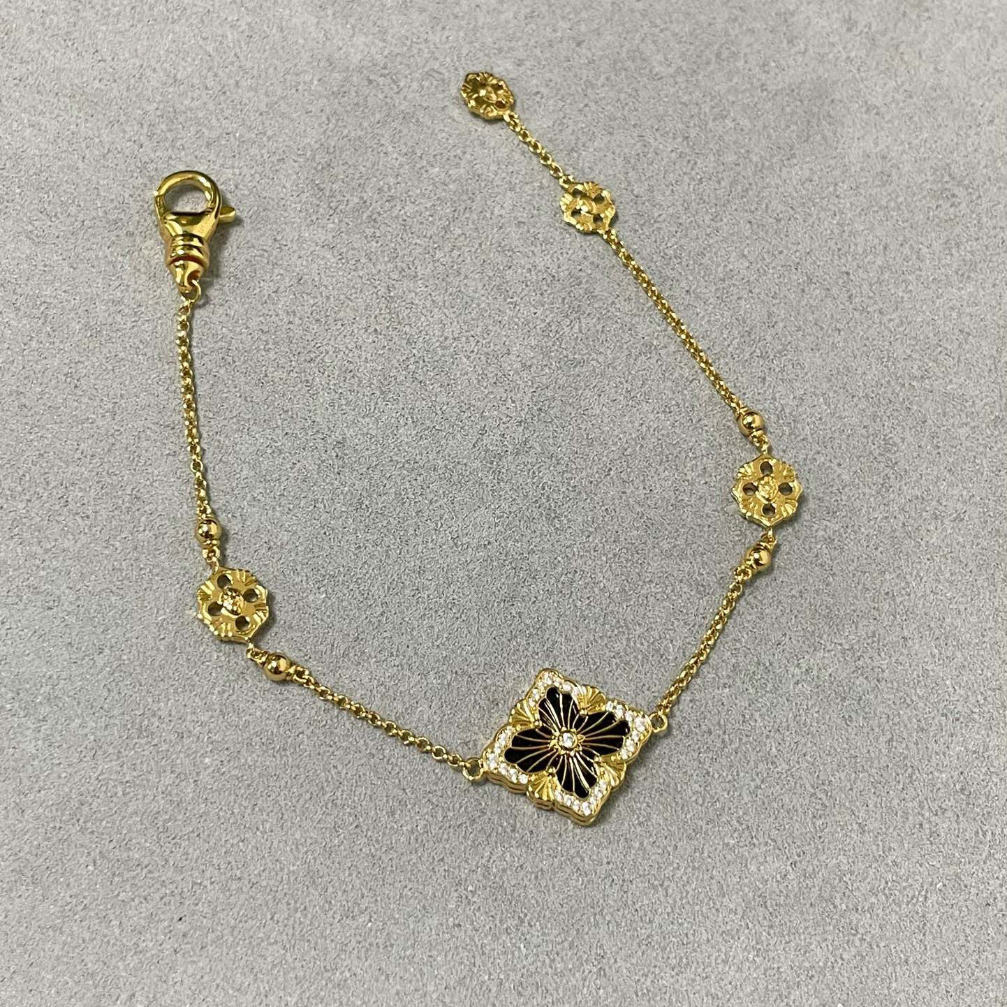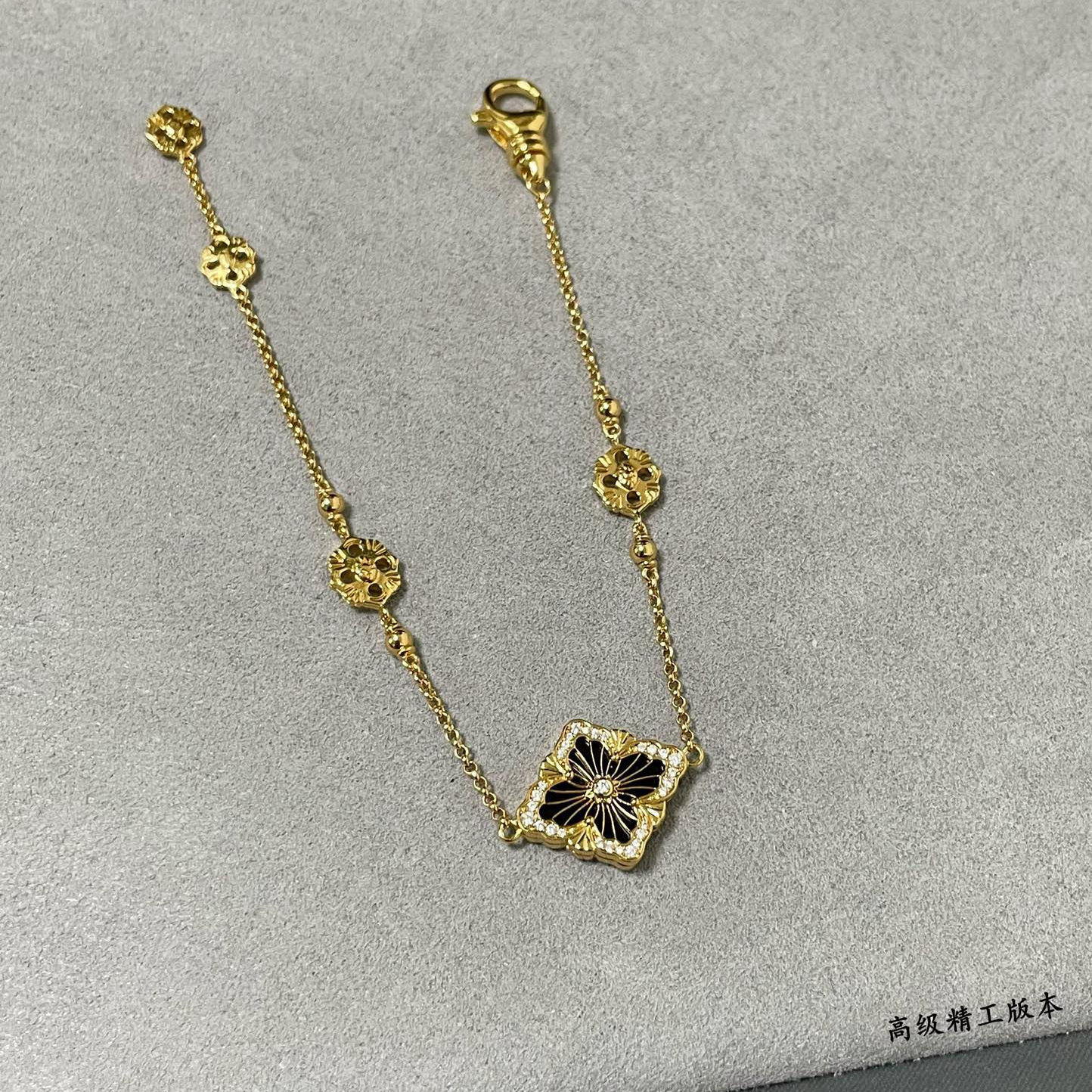 高版本布契拉提手链女黑玉髓白贝母手饰v金镀18k金拉丝工艺宫廷风