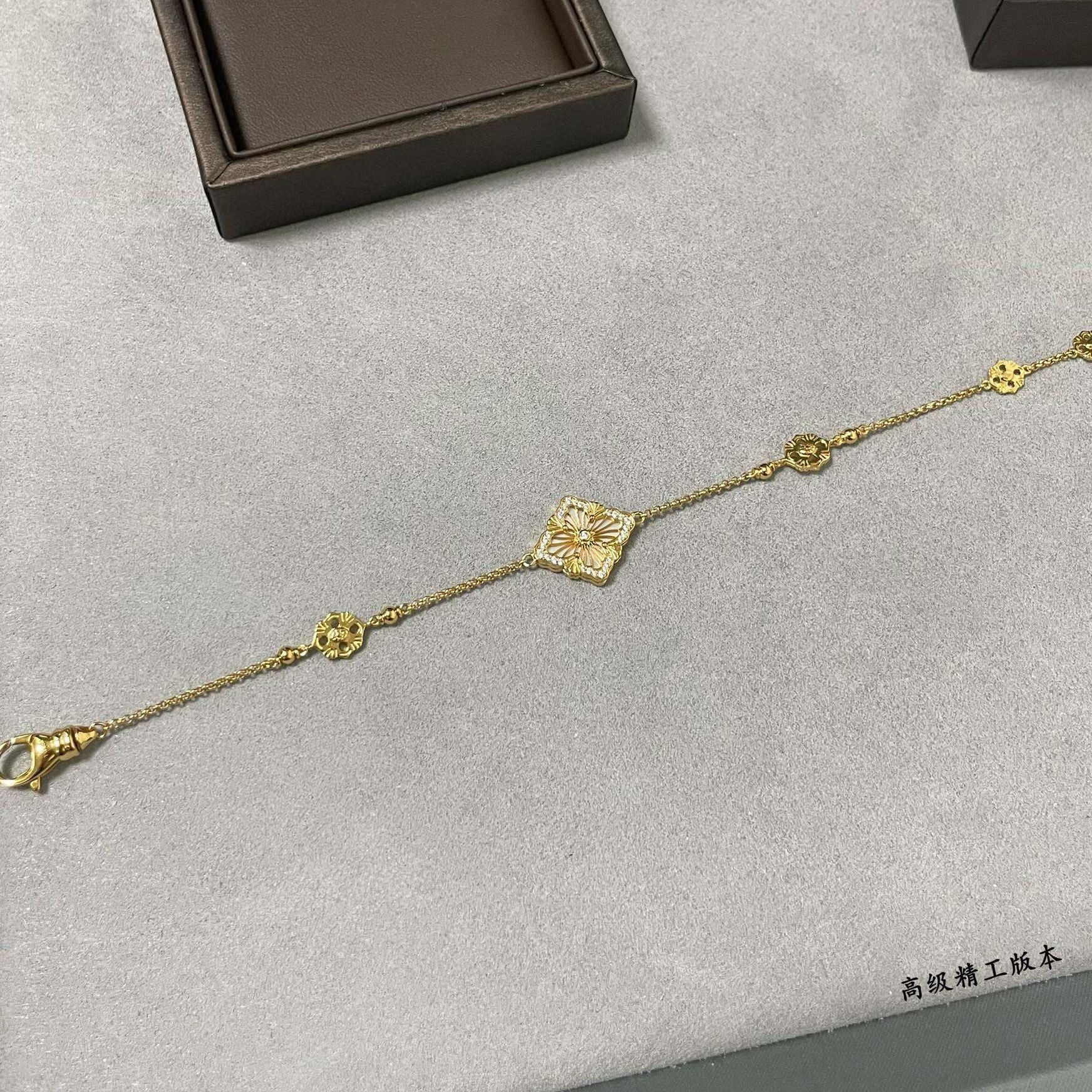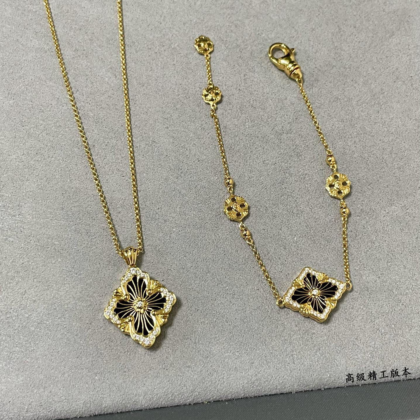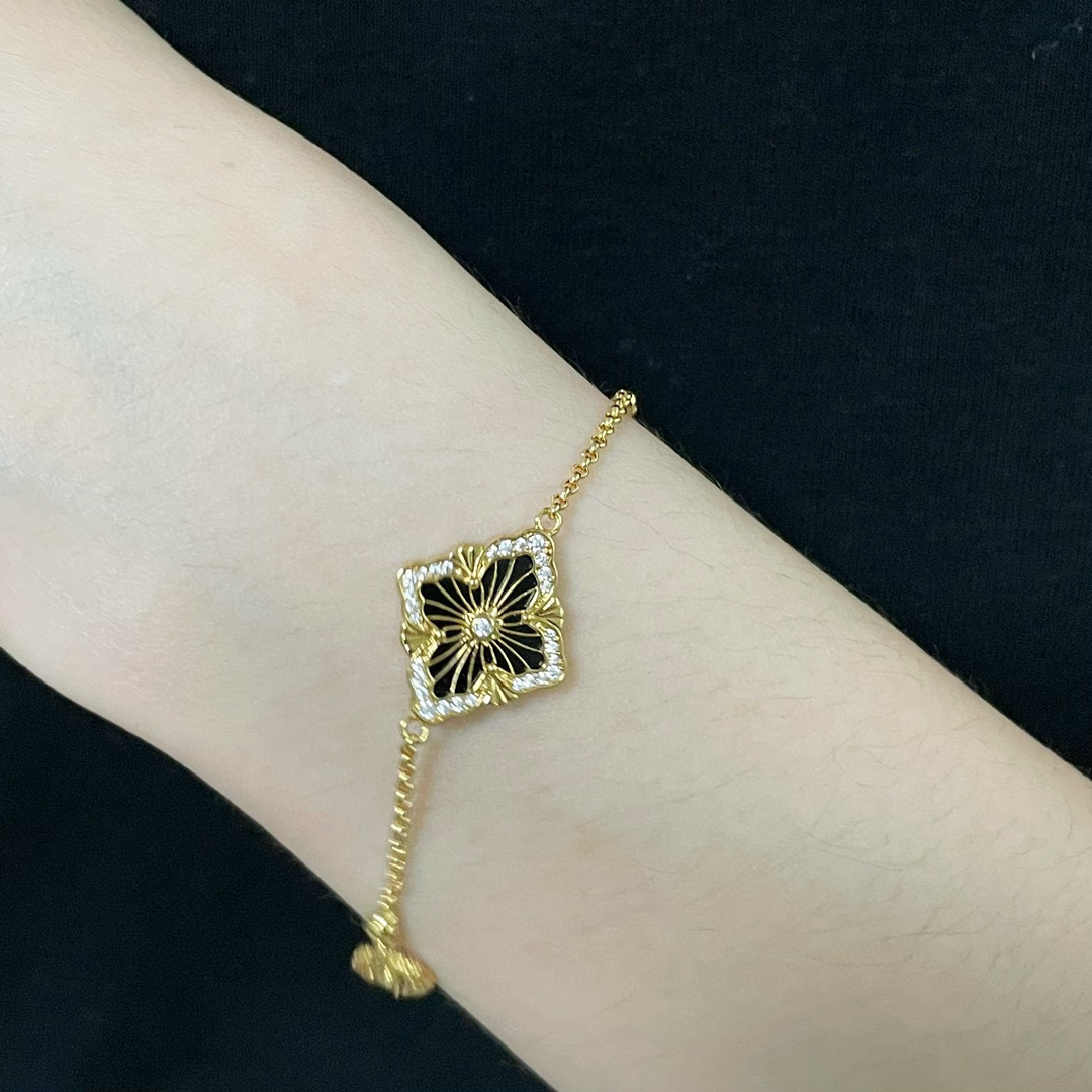 高版本布契拉提手链女黑玉髓白贝母手饰v金镀18k金拉丝工艺宫廷风