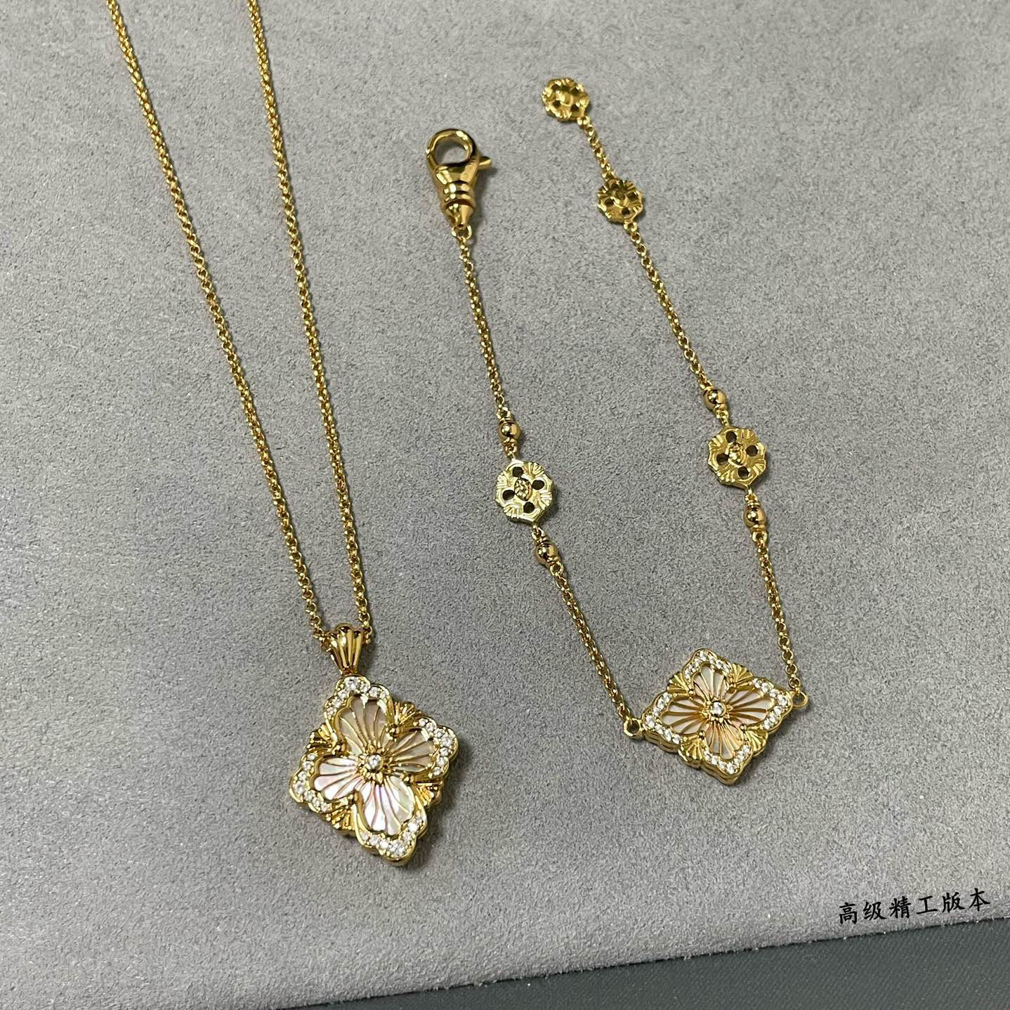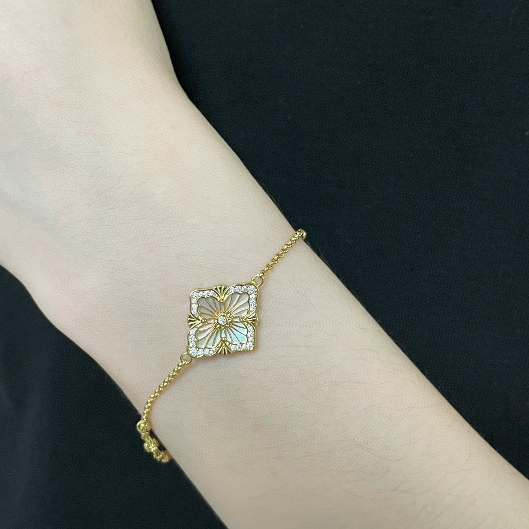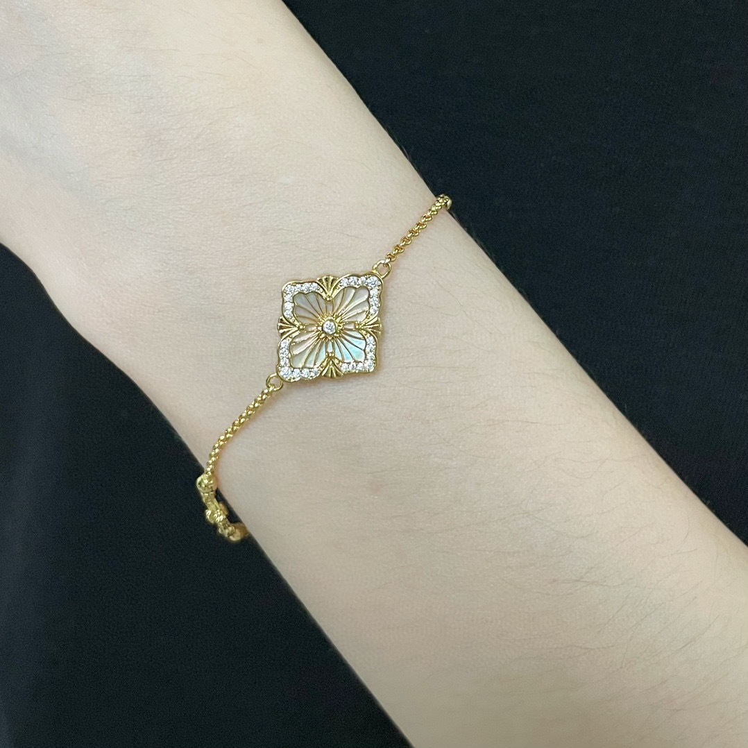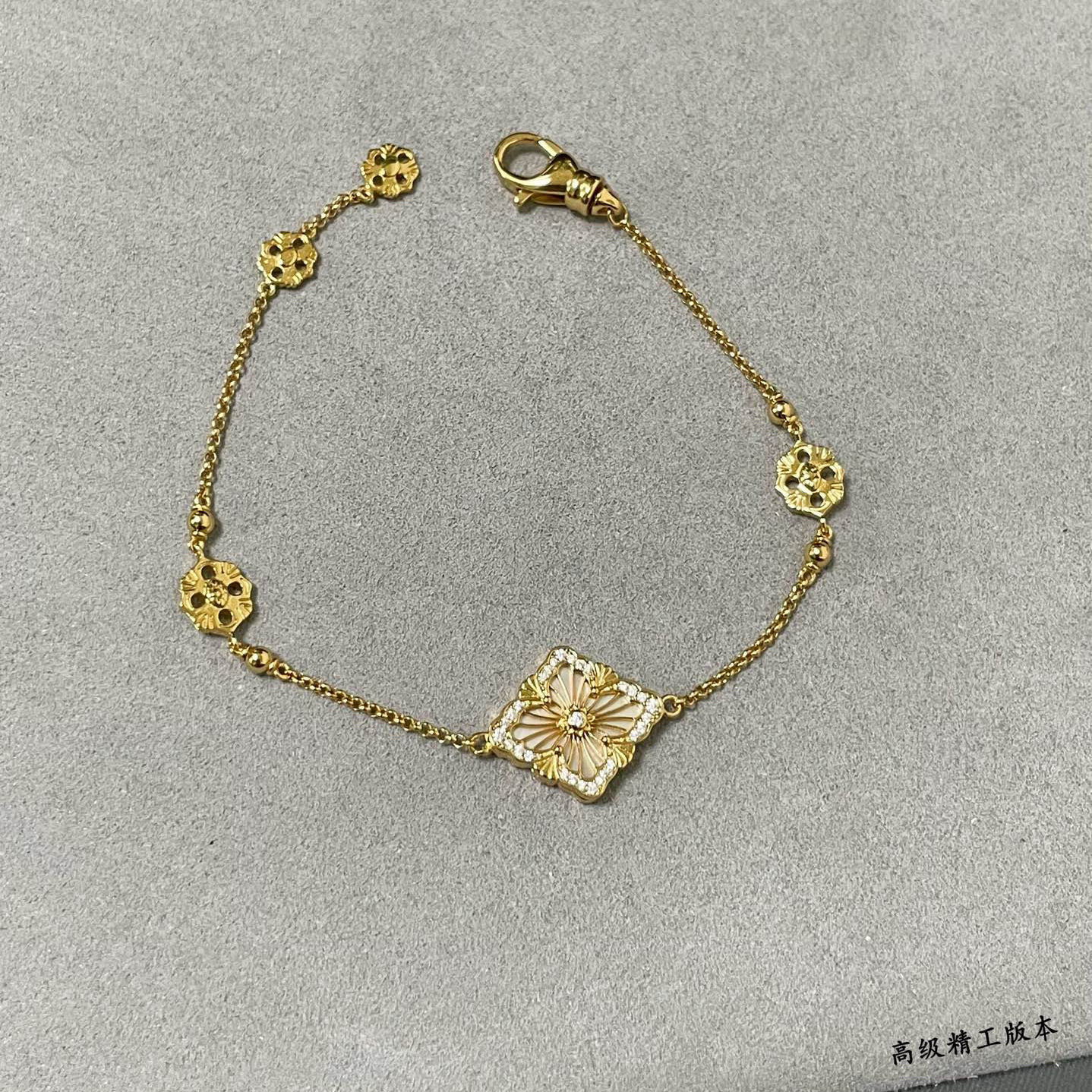 高版本布契拉提手链女黑玉髓白贝母手饰v金镀18k金拉丝工艺宫廷风