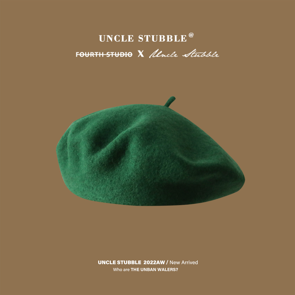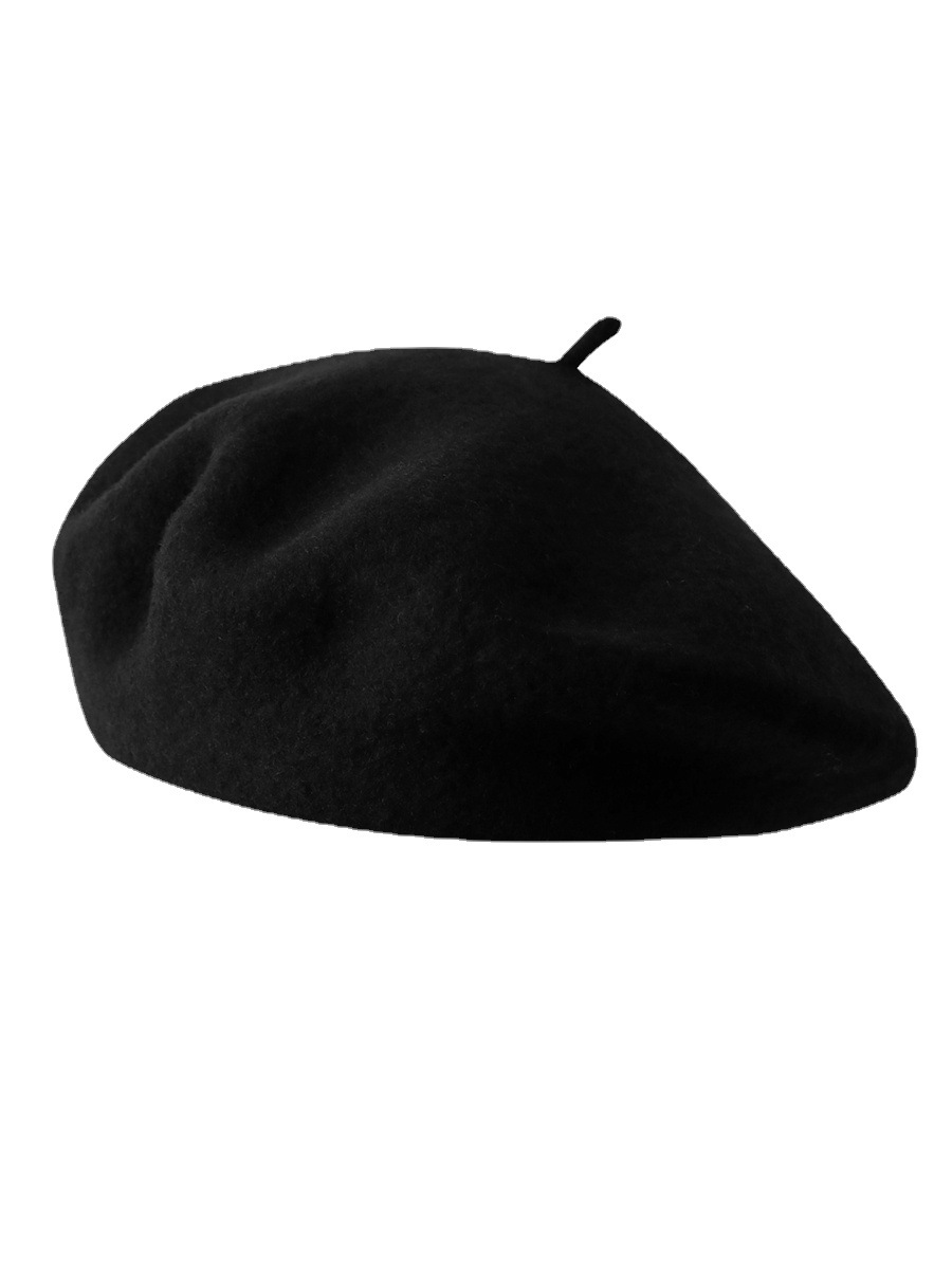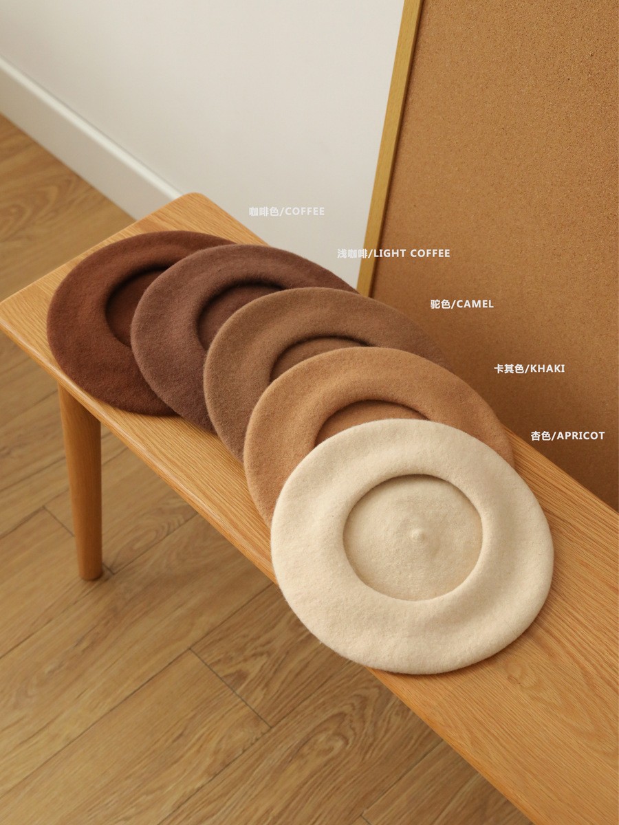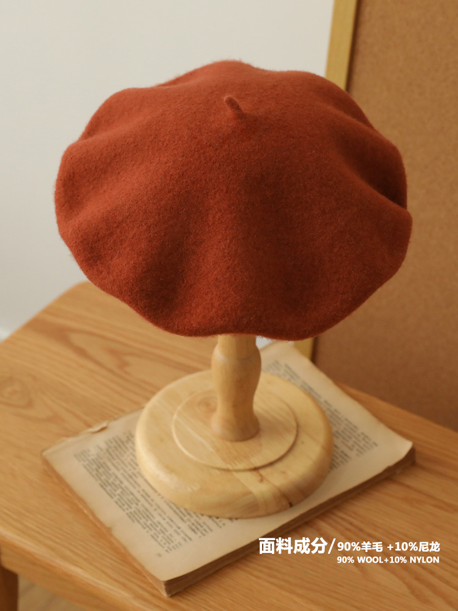 石原里美同款蓓蕾帽韩版皮标百搭毛呢贝雷帽秋冬复古画家帽子女生