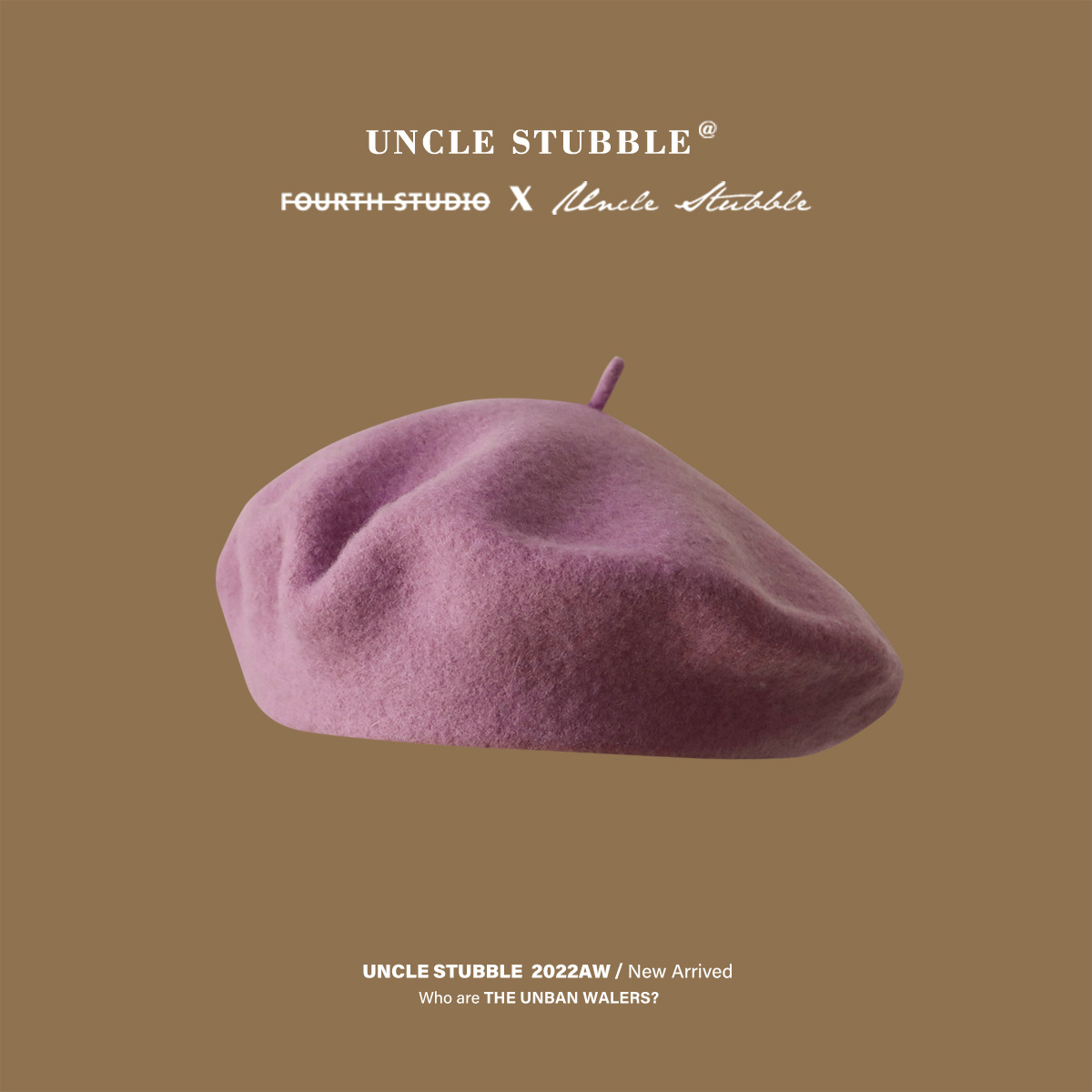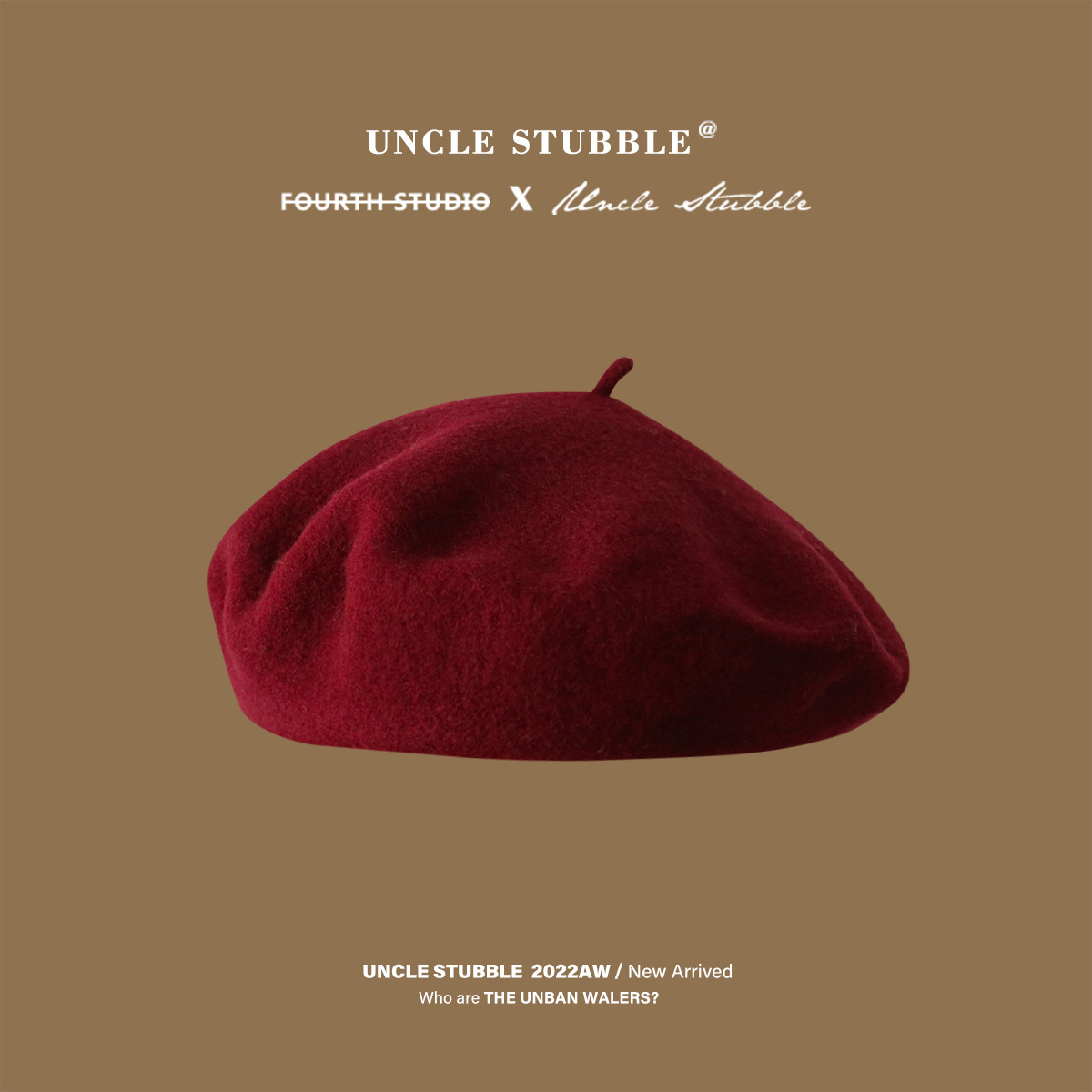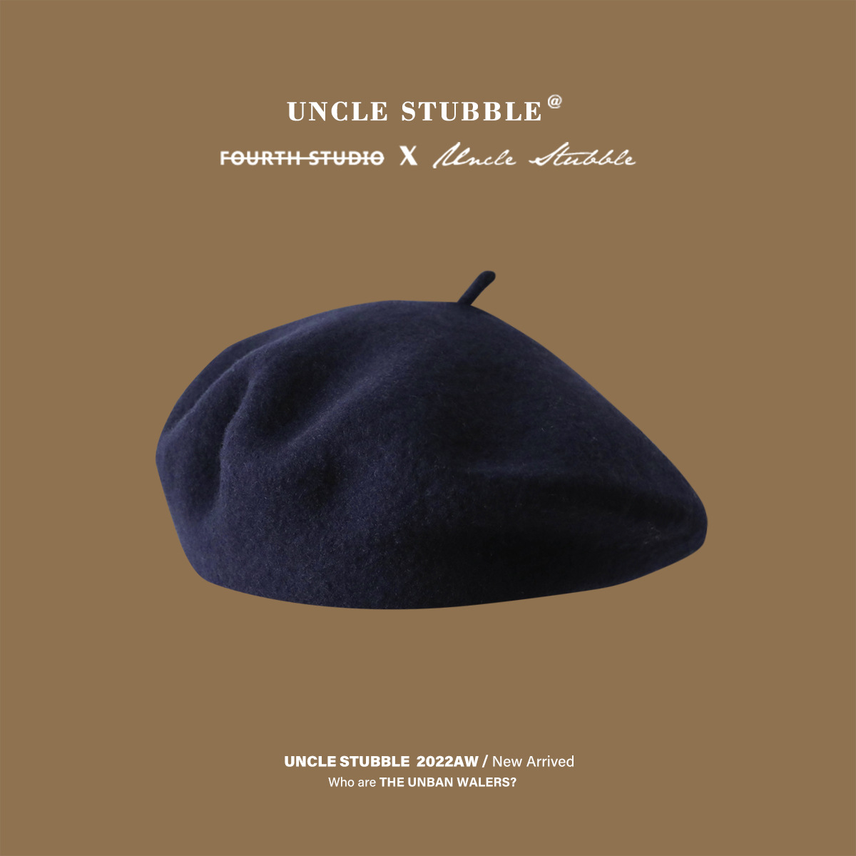 石原里美同款蓓蕾帽韩版皮标百搭毛呢贝雷帽秋冬复古画家帽子女生