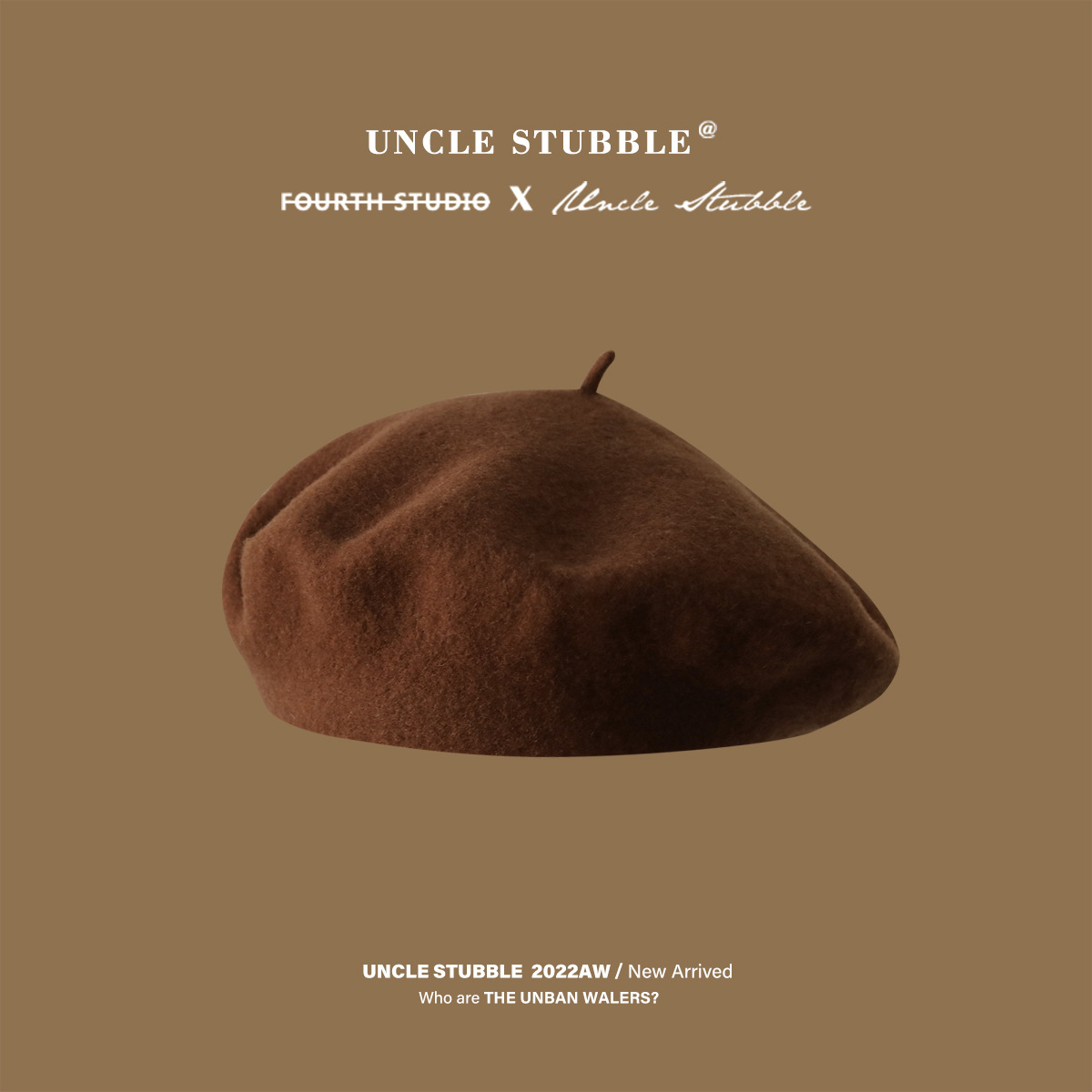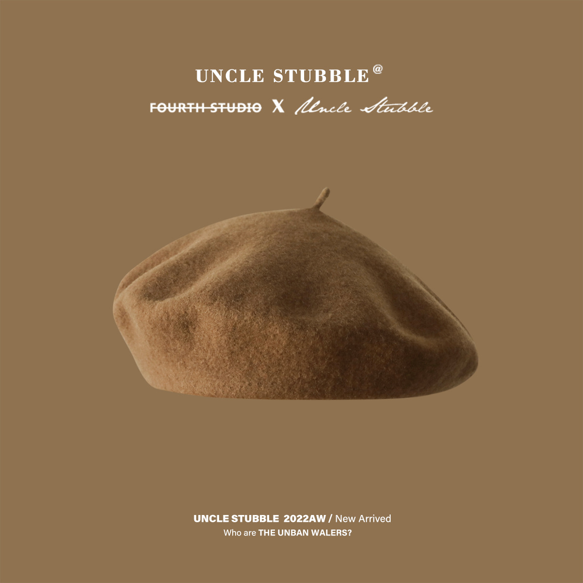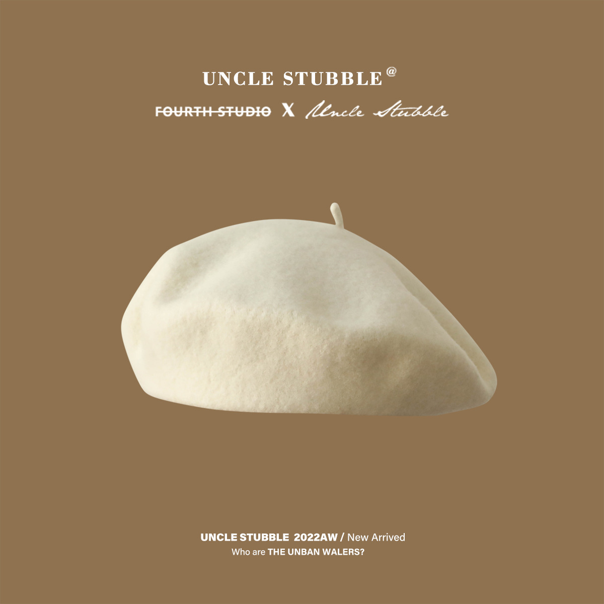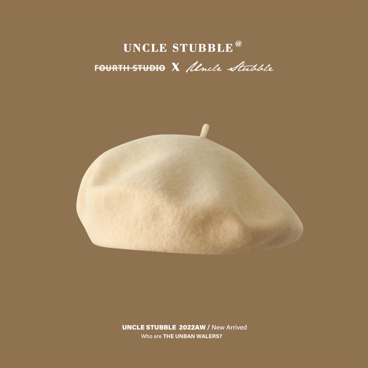 石原里美同款蓓蕾帽韩版皮标百搭毛呢贝雷帽秋冬复古画家帽子女生