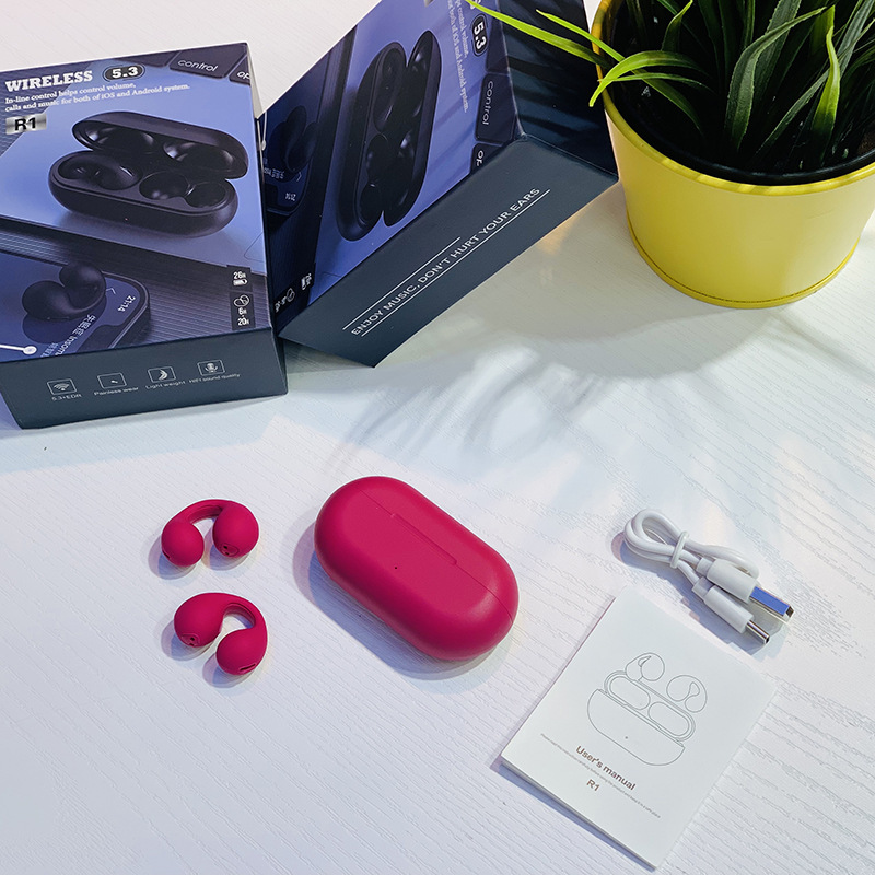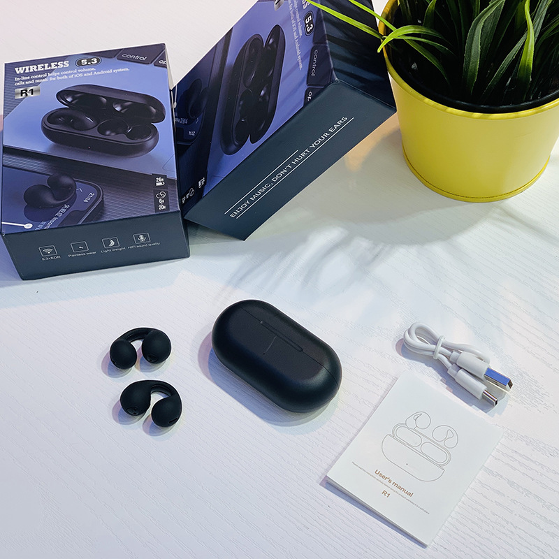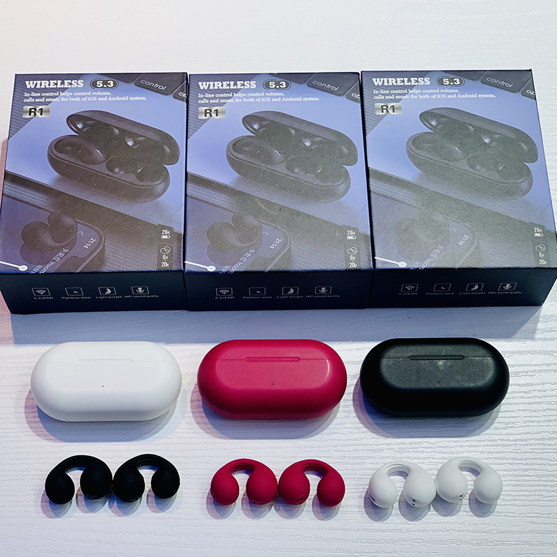R1跨境爆款批发真无线耳机不入耳夹耳式耳环式运动骨传蓝牙耳机