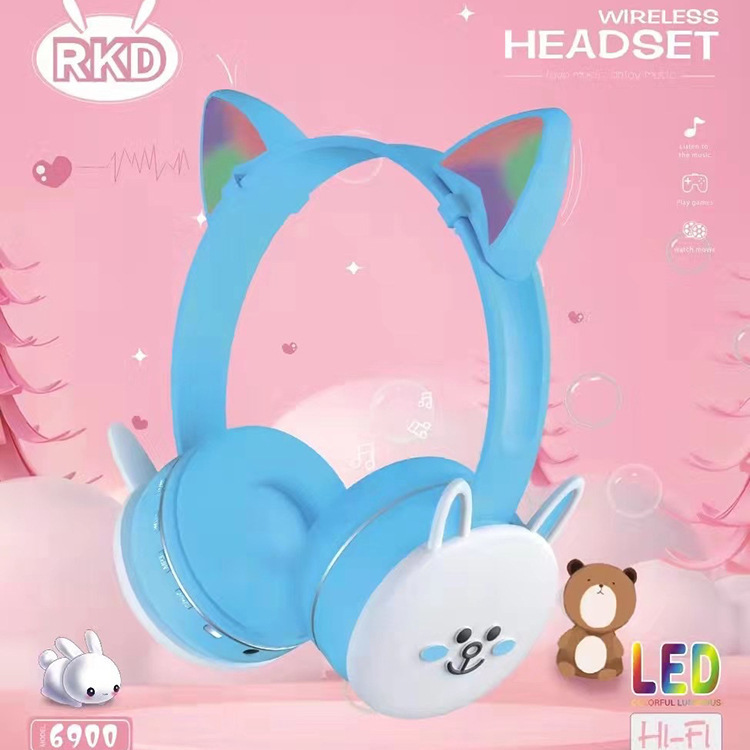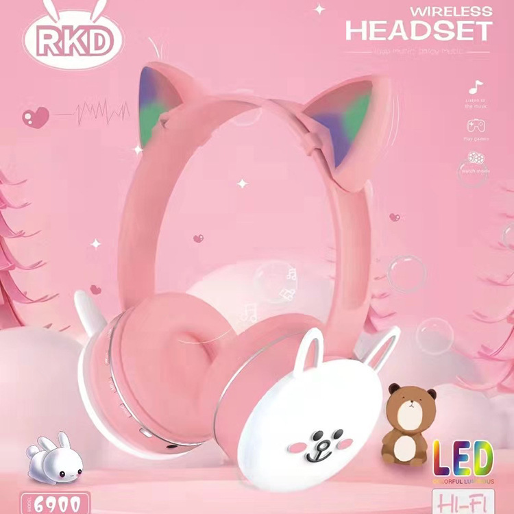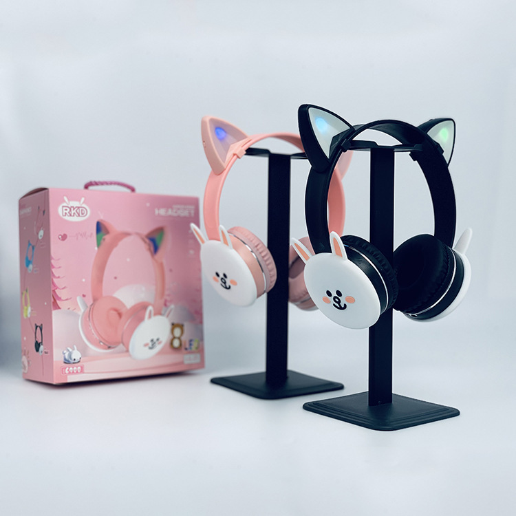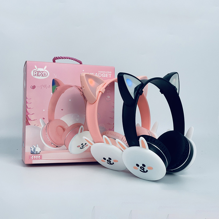 新款RKD6900头戴式无线蓝牙耳机小白兔带猫耳朵可爱发光游戏耳机