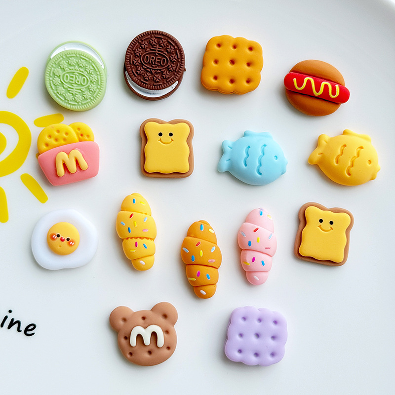 磨砂可爱饼干薯条仿真食玩树脂diy饰品洞洞鞋奶油胶冰箱贴片材料