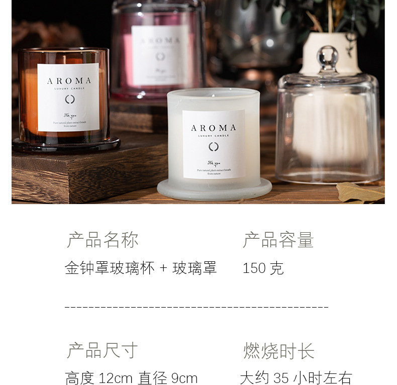 香薰蜡烛金钟罩玻璃杯香氛伴手礼物手工罐装家用无烟创意摆件礼盒