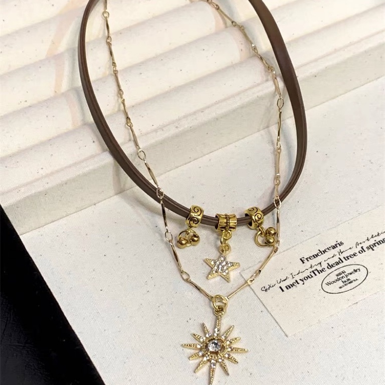 复古棕色太阳双层项链choker美拉德小众百搭颈链美式辣妹锁骨链女