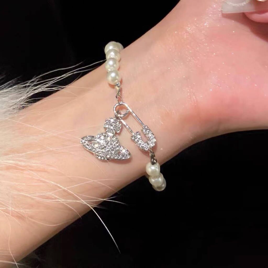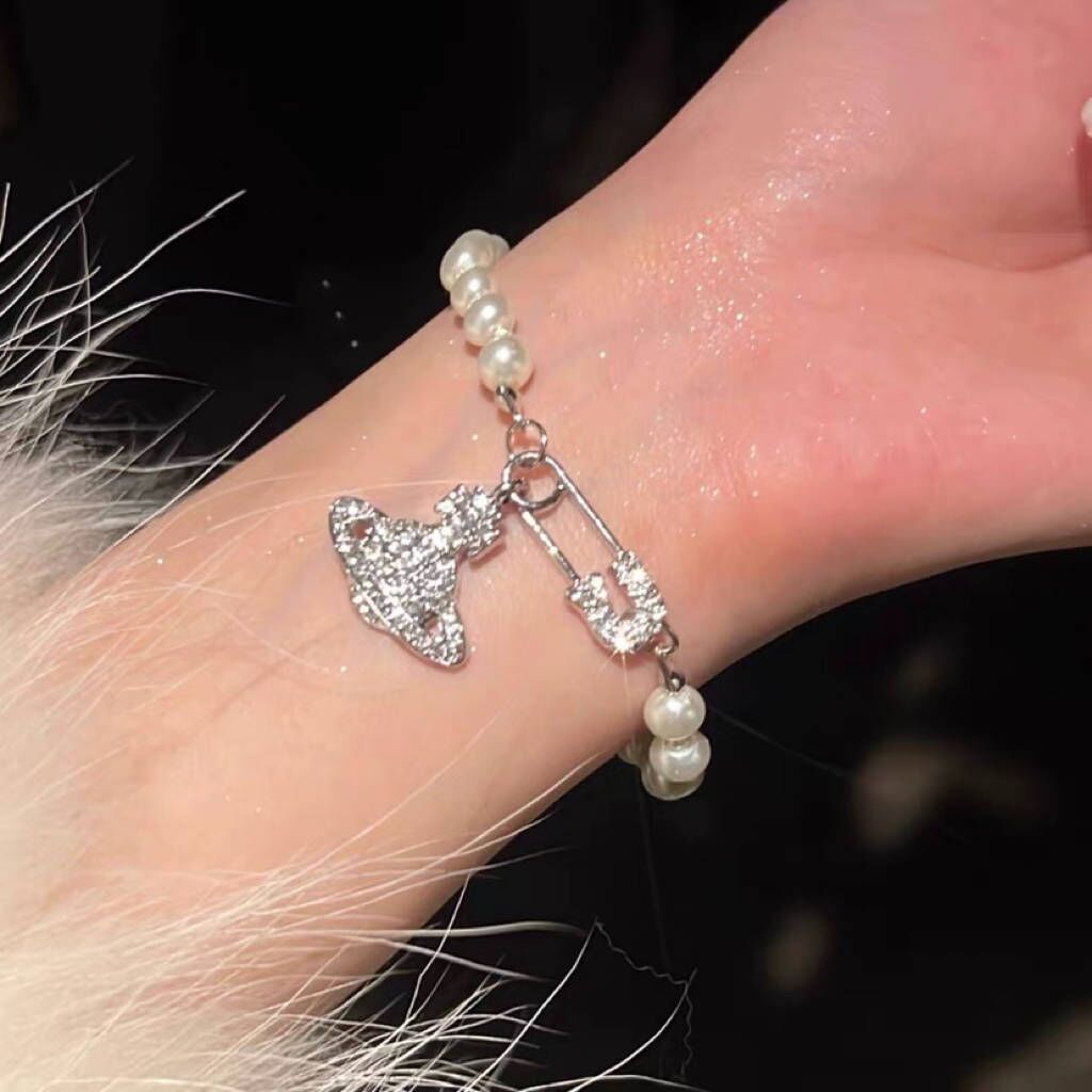 土星珍珠手链女款银色满钻轻奢小众精致设计感高级复古ins风手镯
