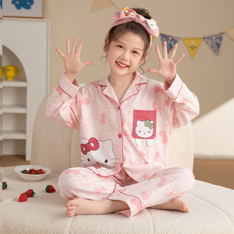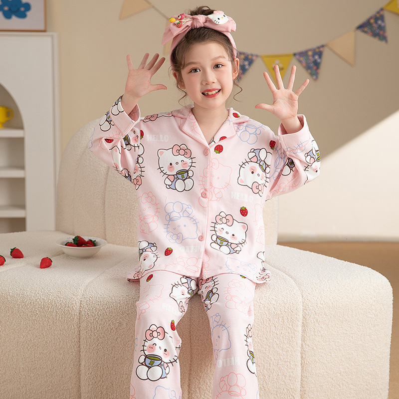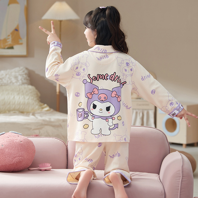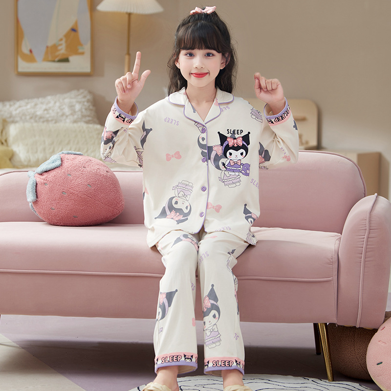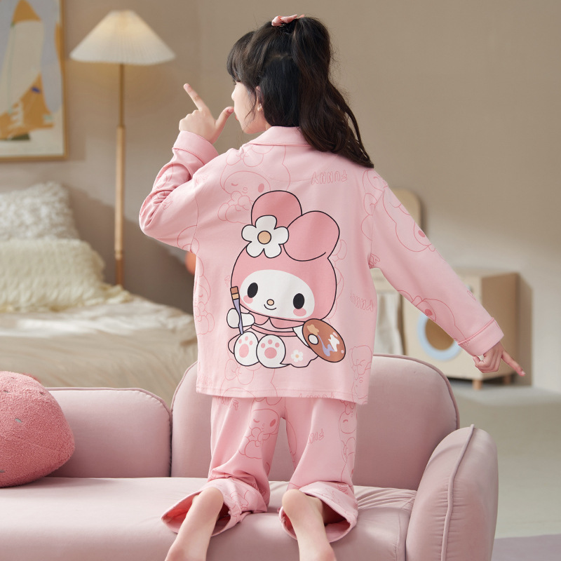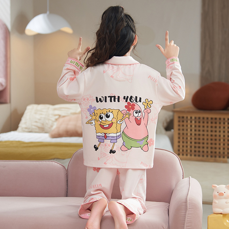 2024新款春秋季儿童睡衣女童长袖纯棉薄款公主女孩网红家居服套装