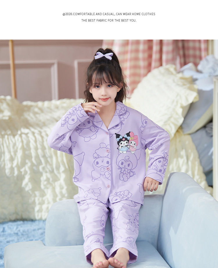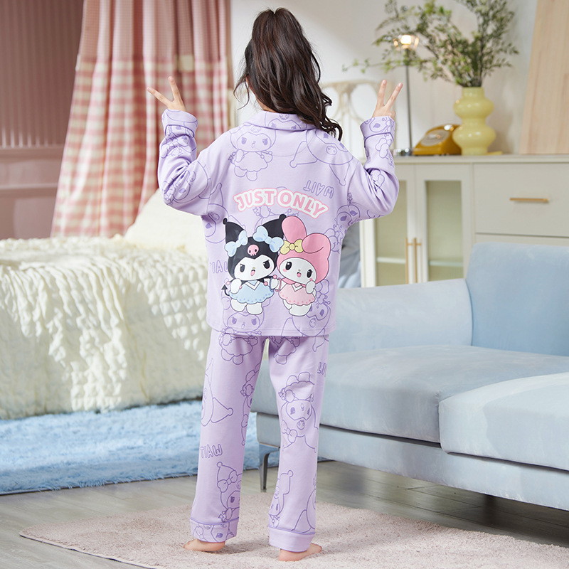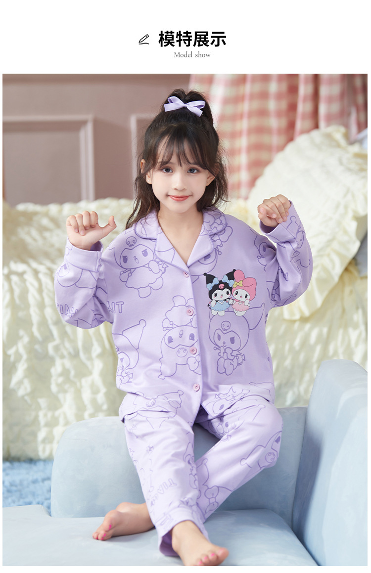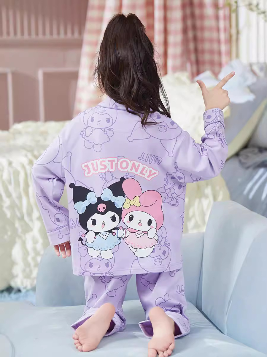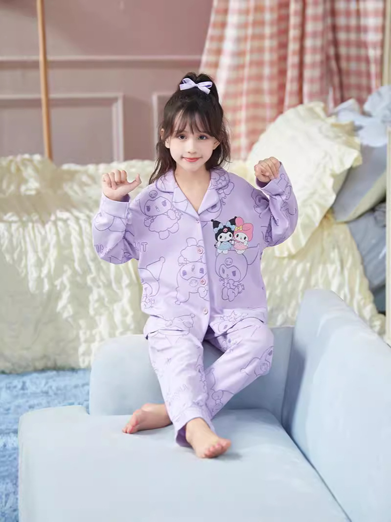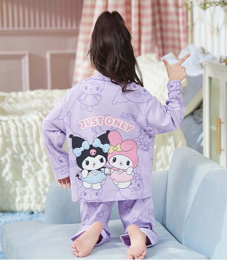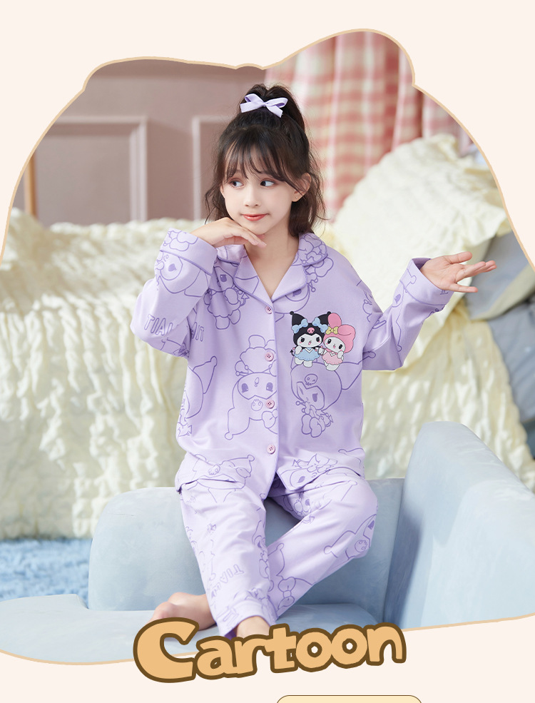 2024新款女童睡衣春秋季长袖卡通中大童女孩库洛米儿童家居服套装