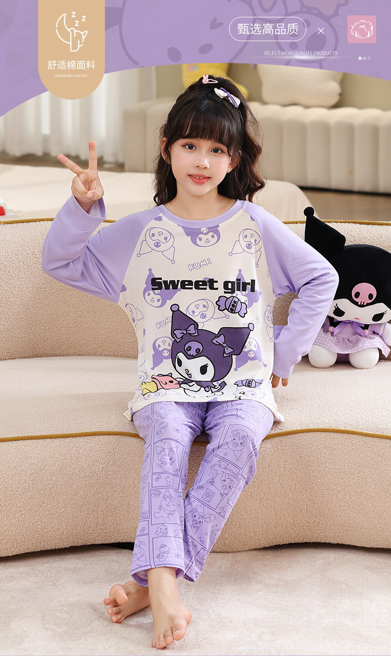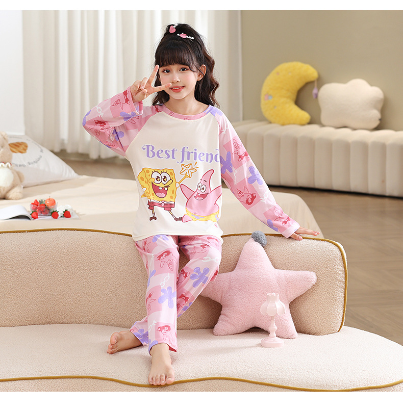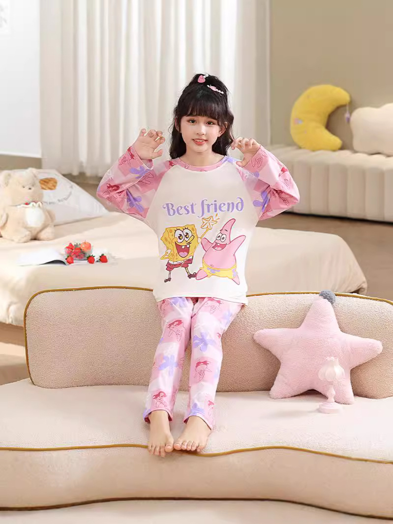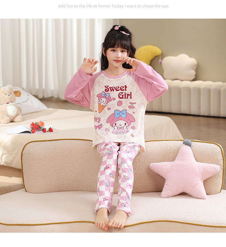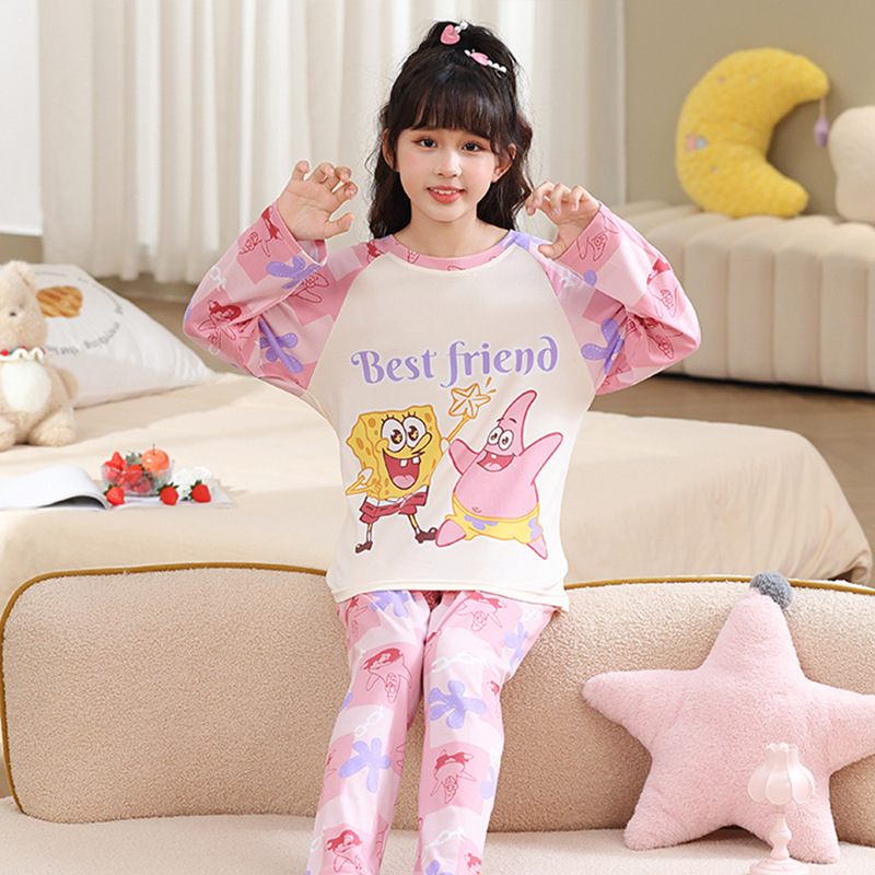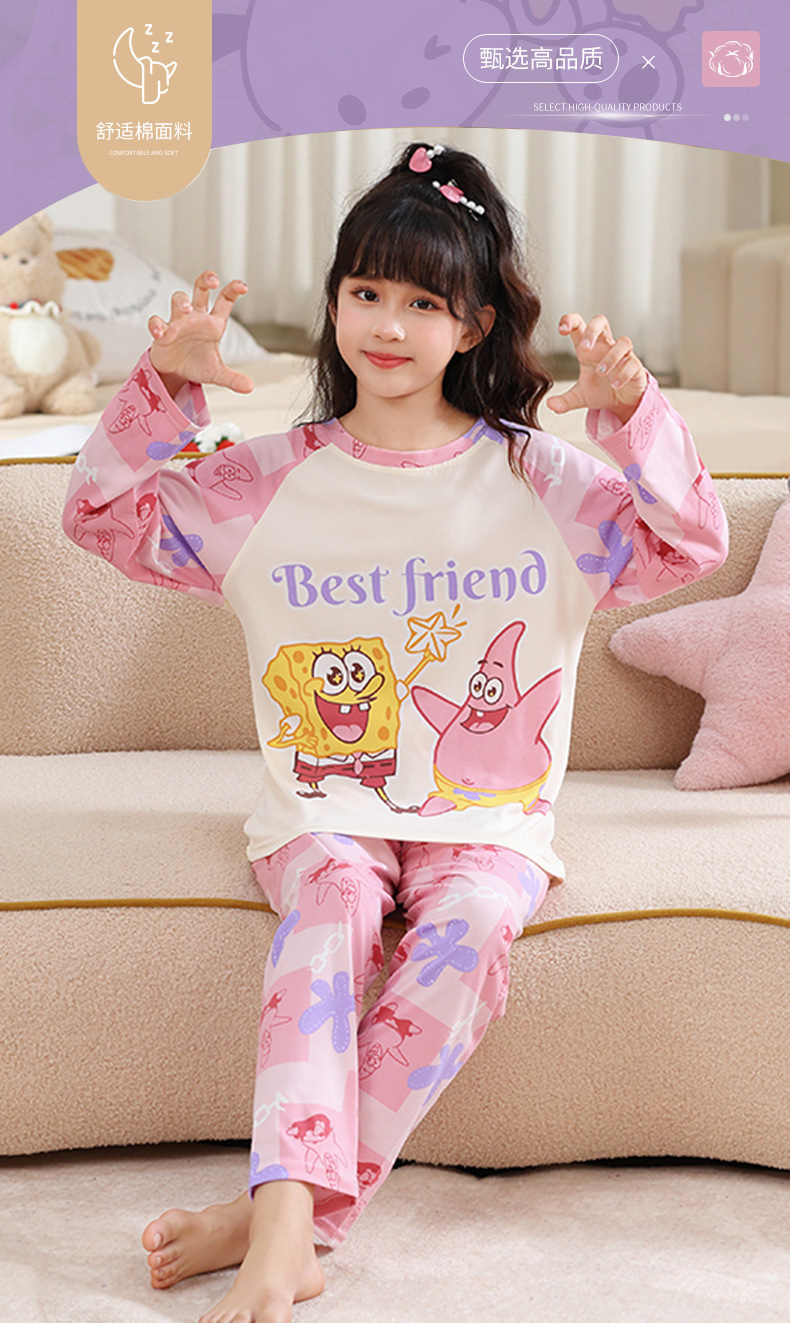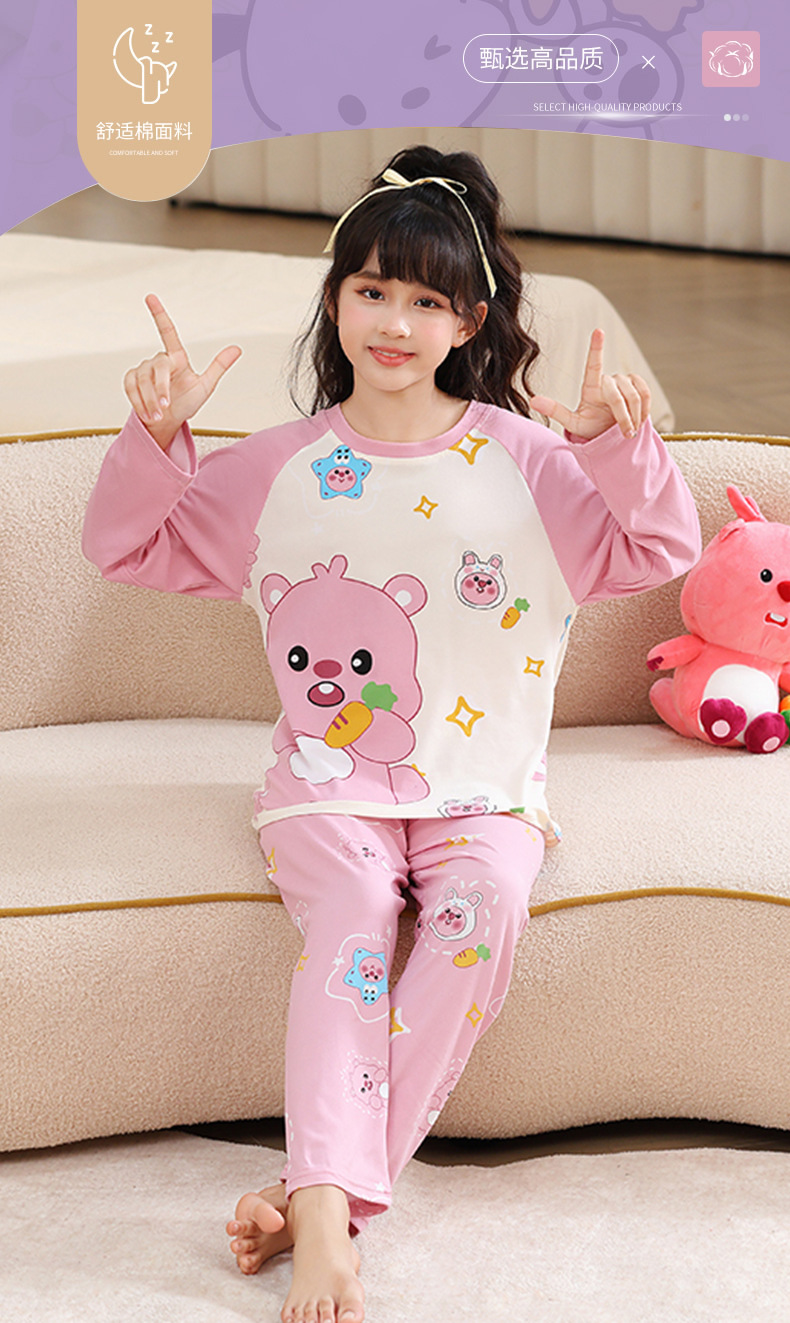 春秋季新款儿童睡衣家居服套装女童长袖薄款中大童可爱卡通小公主