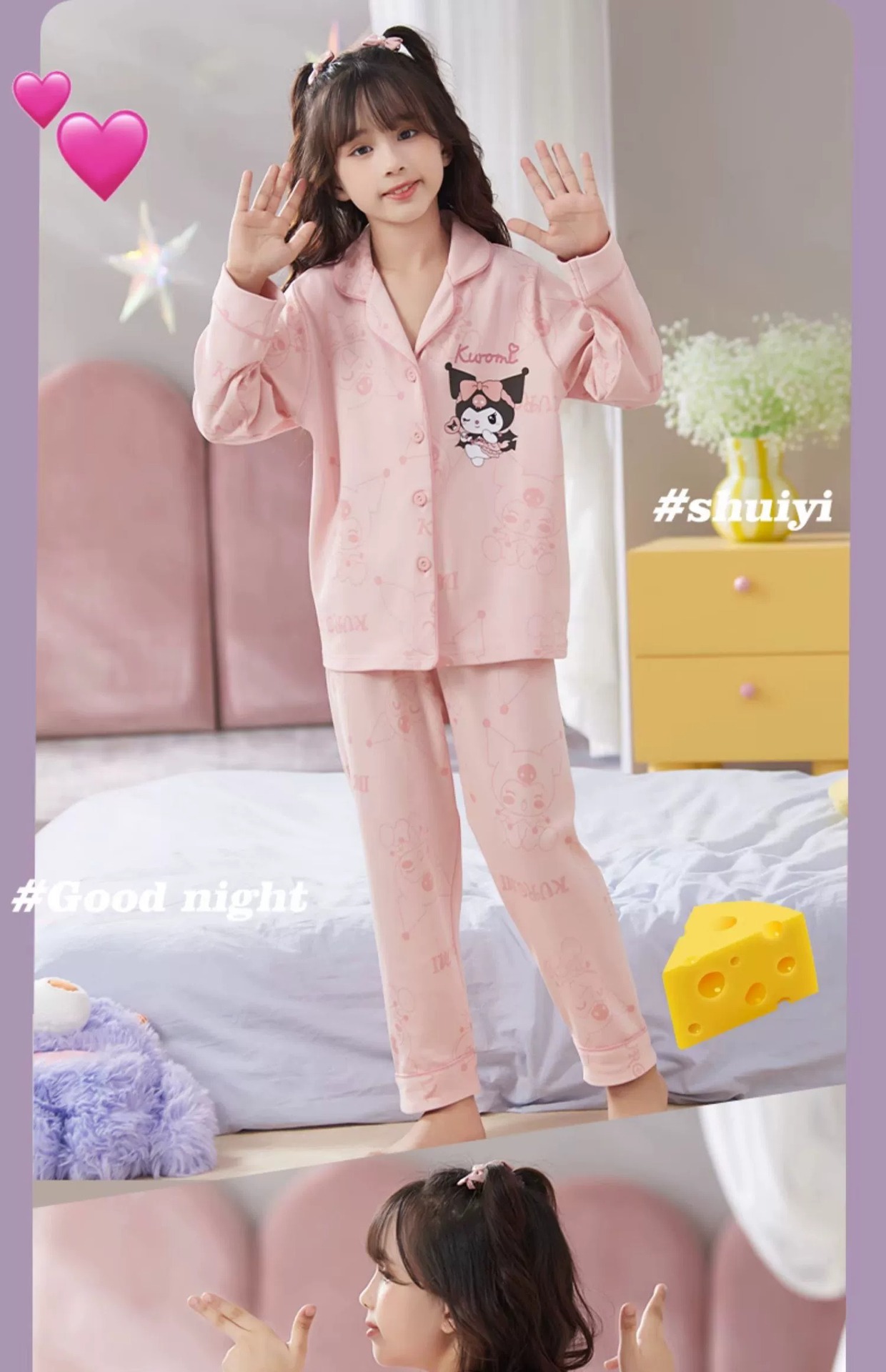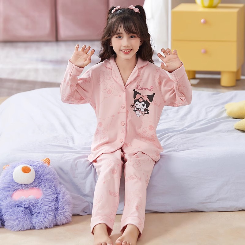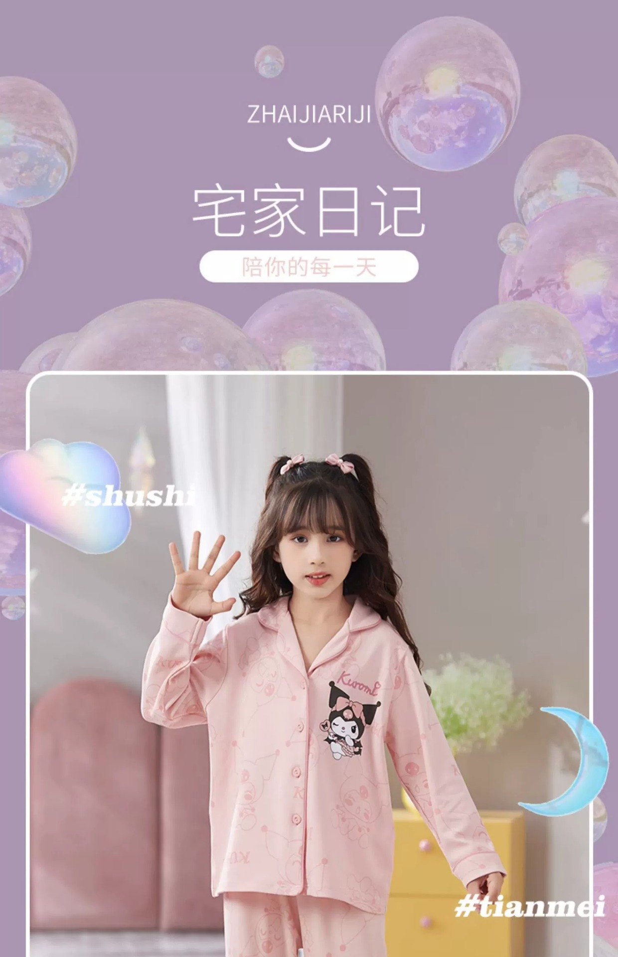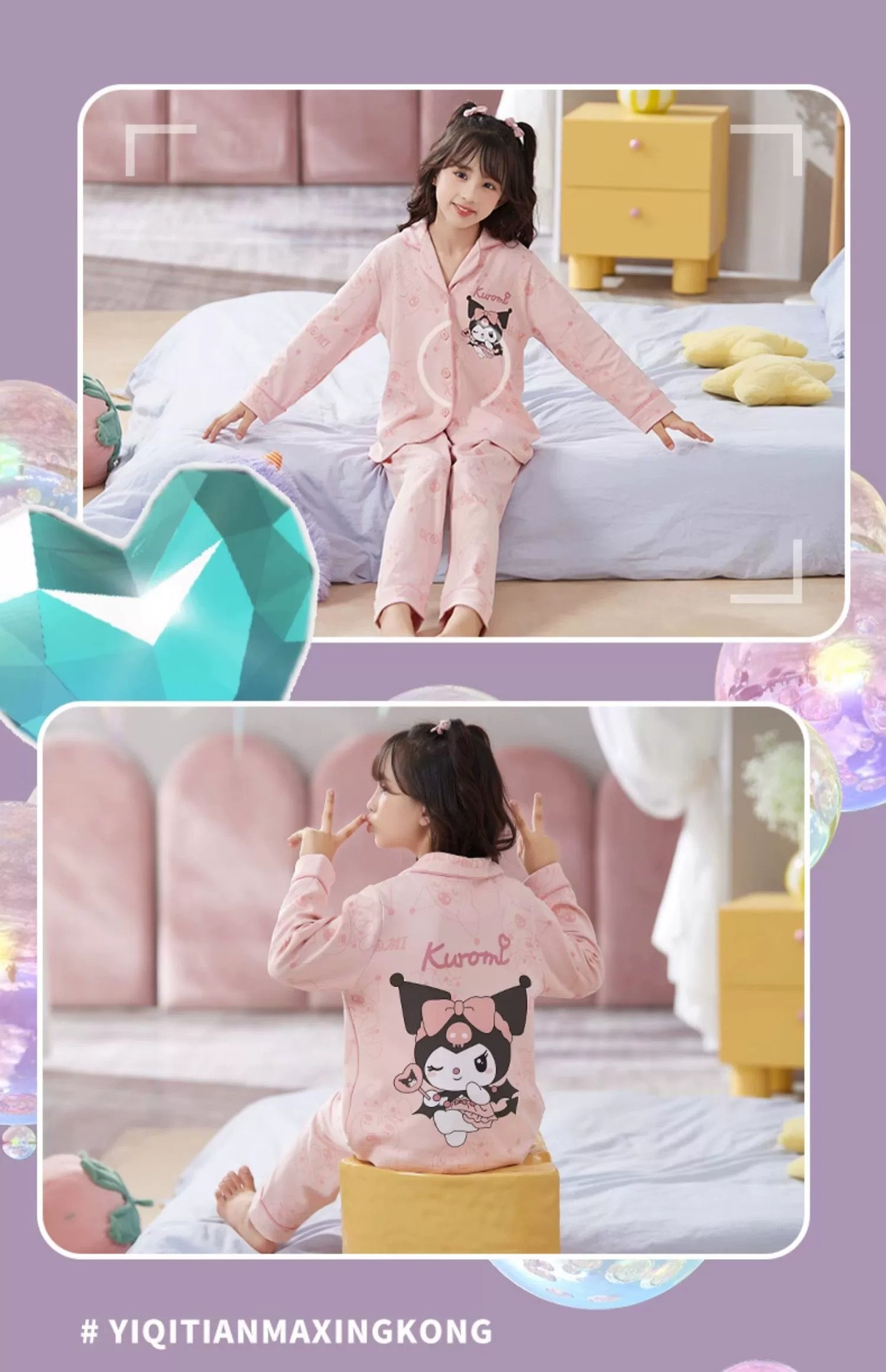 女童睡衣春秋季新款长袖开衫两件套可爱儿童洋气卡通草莓熊家居服