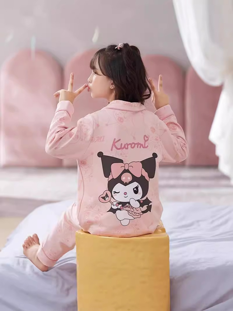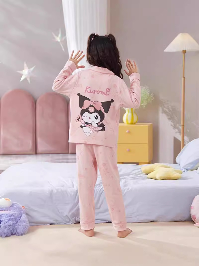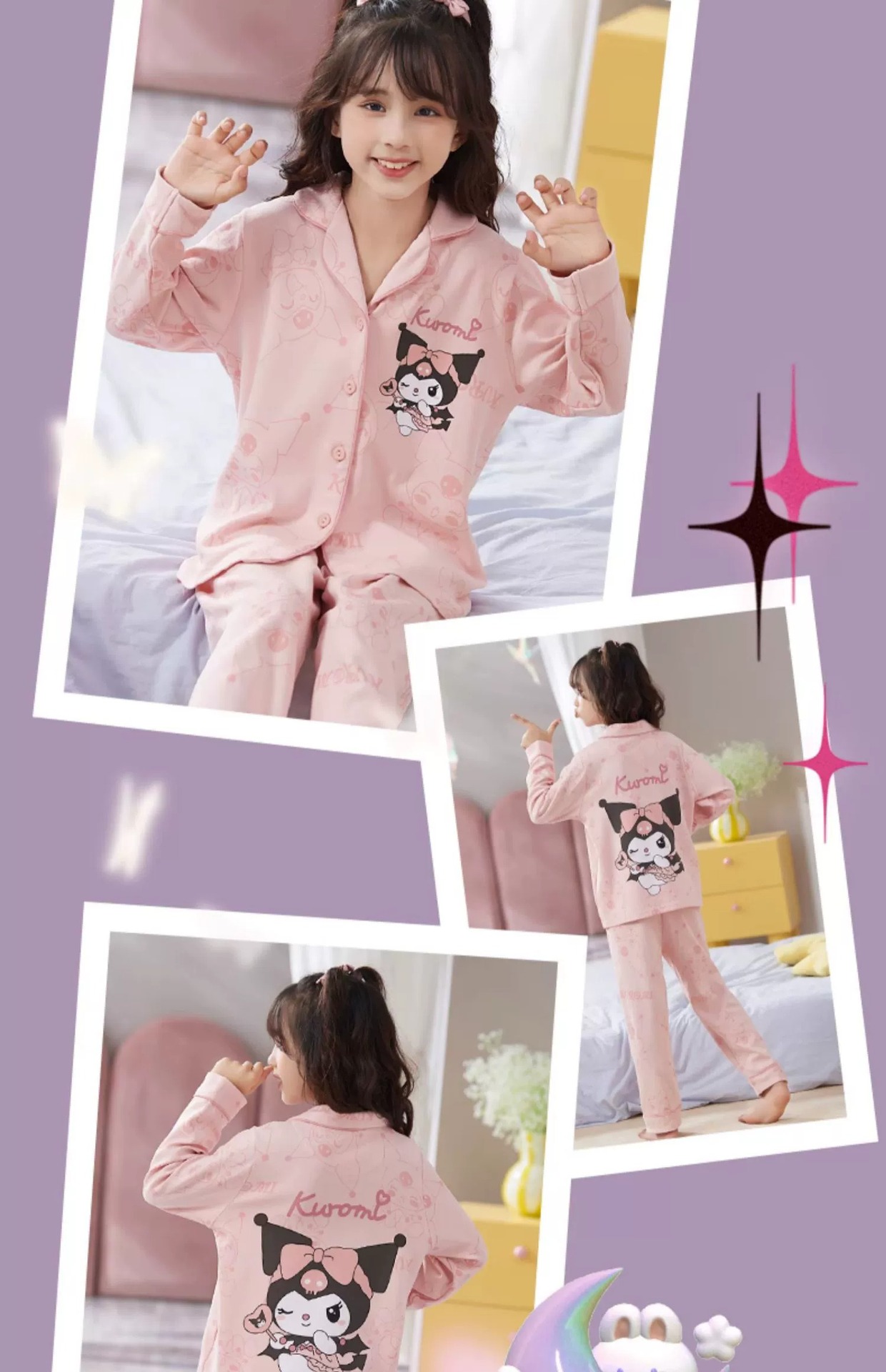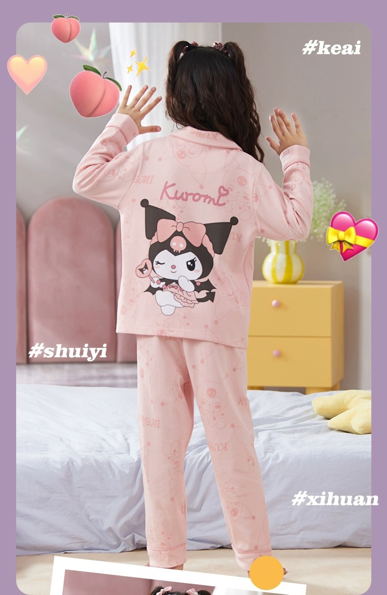 女童睡衣春秋季新款长袖开衫两件套可爱儿童洋气卡通草莓熊家居服