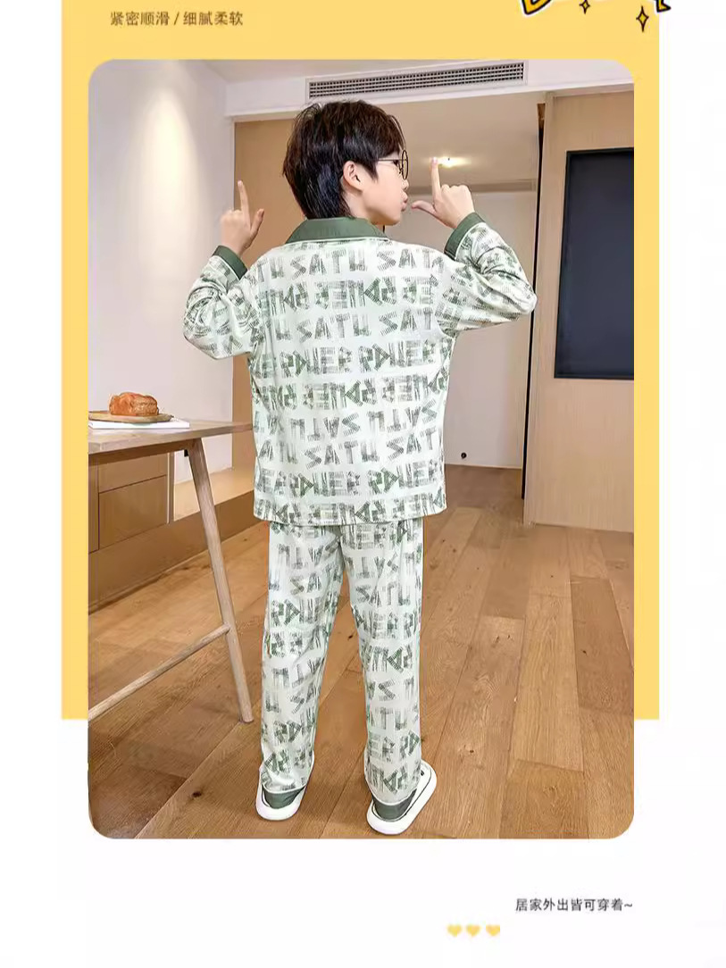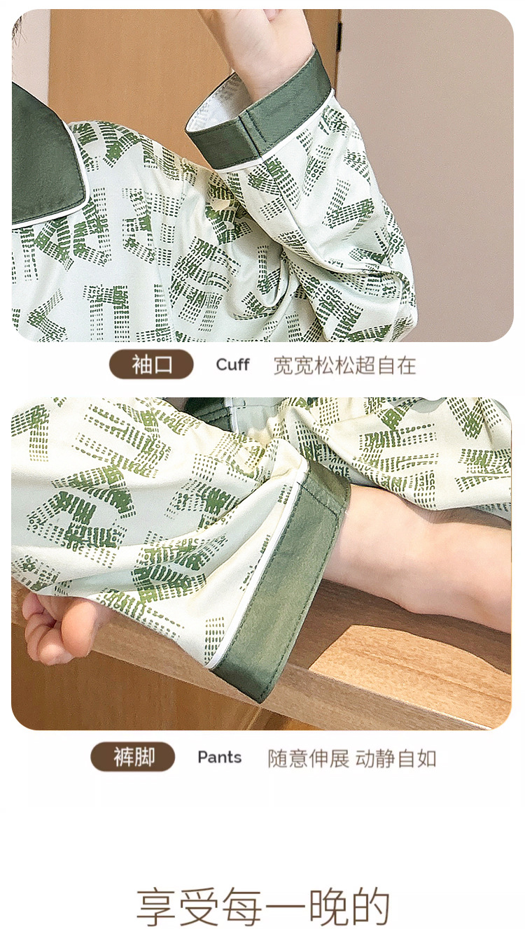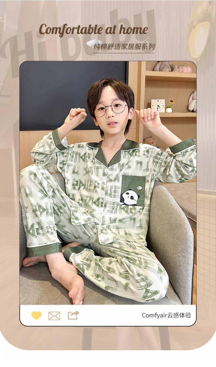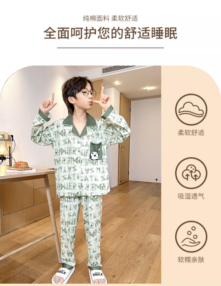 男童睡衣春秋季长袖薄款大童男孩卡通熊猫口袋儿童开衫家居服套装