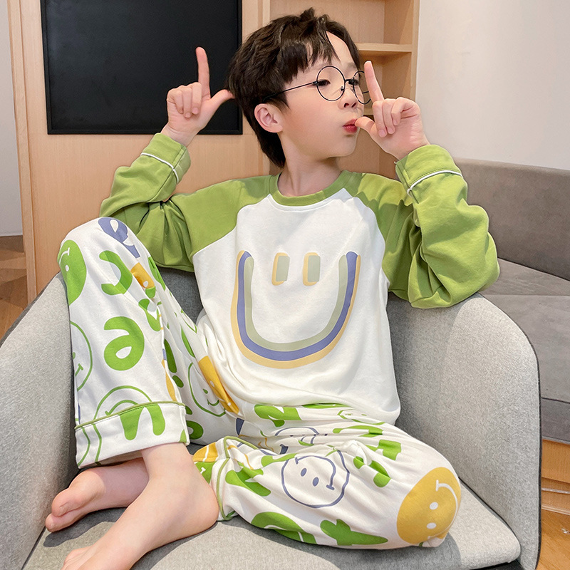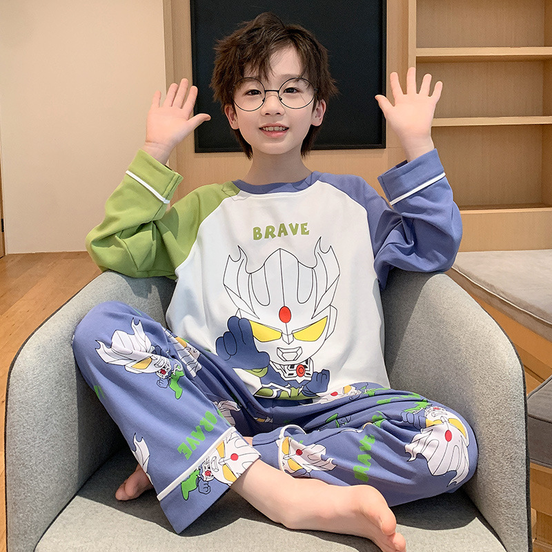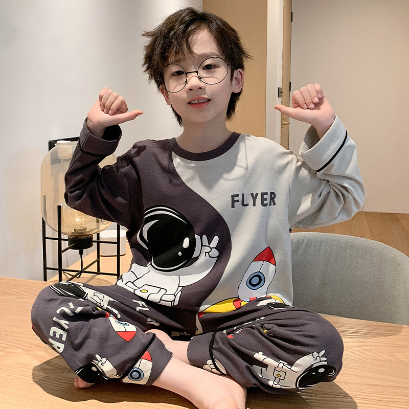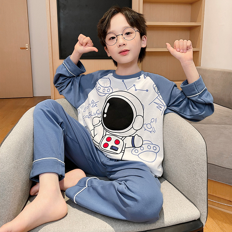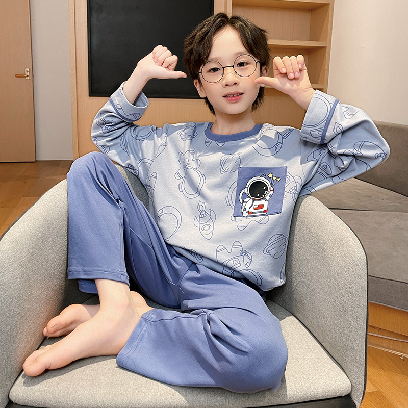 男童睡衣男孩纯棉秋装薄款长袖全棉空调青少年大童儿童家居服套装