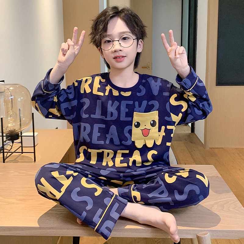 男童家居服套装秋季新款男孩纯棉长袖春秋款套头中大童睡衣可外穿