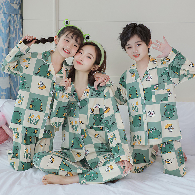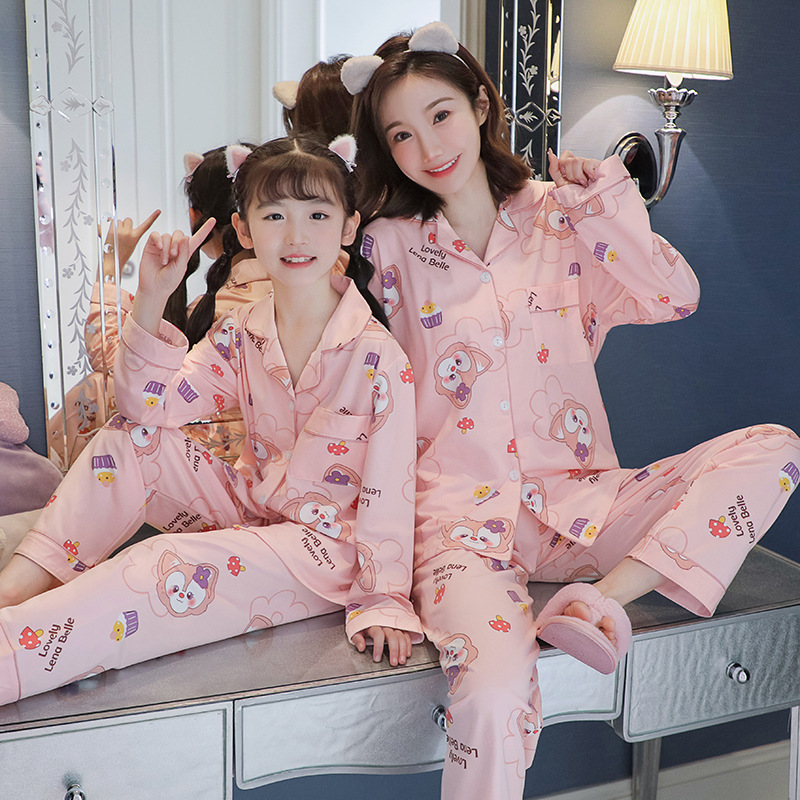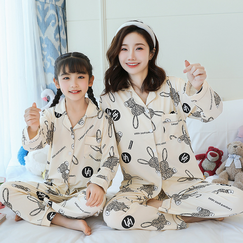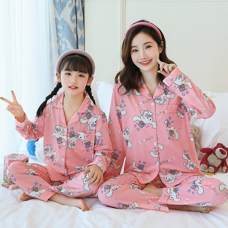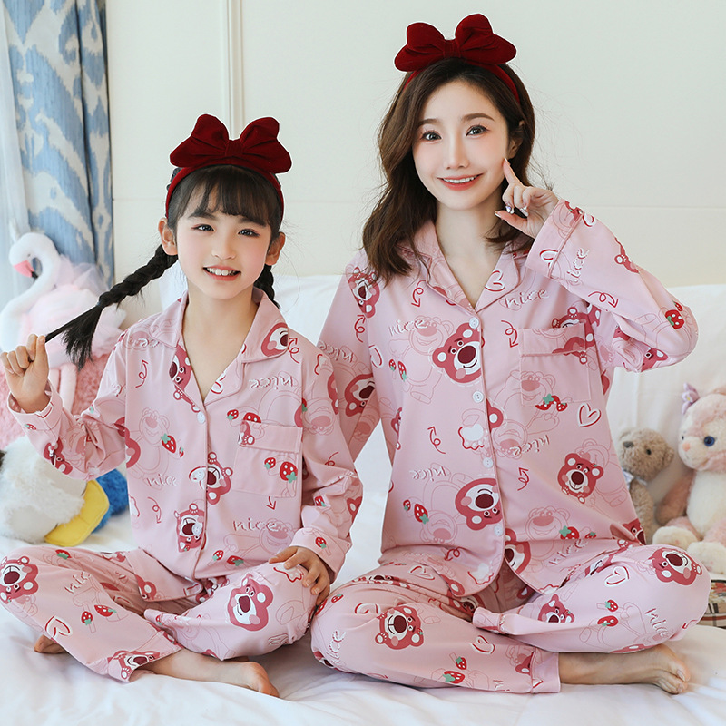 春秋季新款儿童女男童睡衣长袖米奇仿棉开衫母女小孩卡通翻领套装