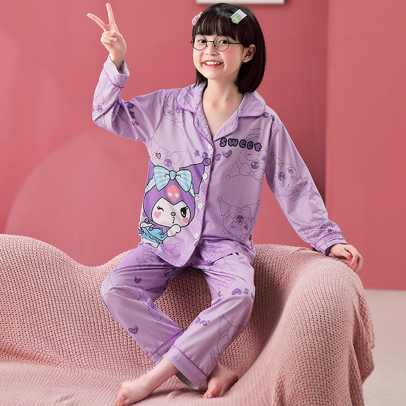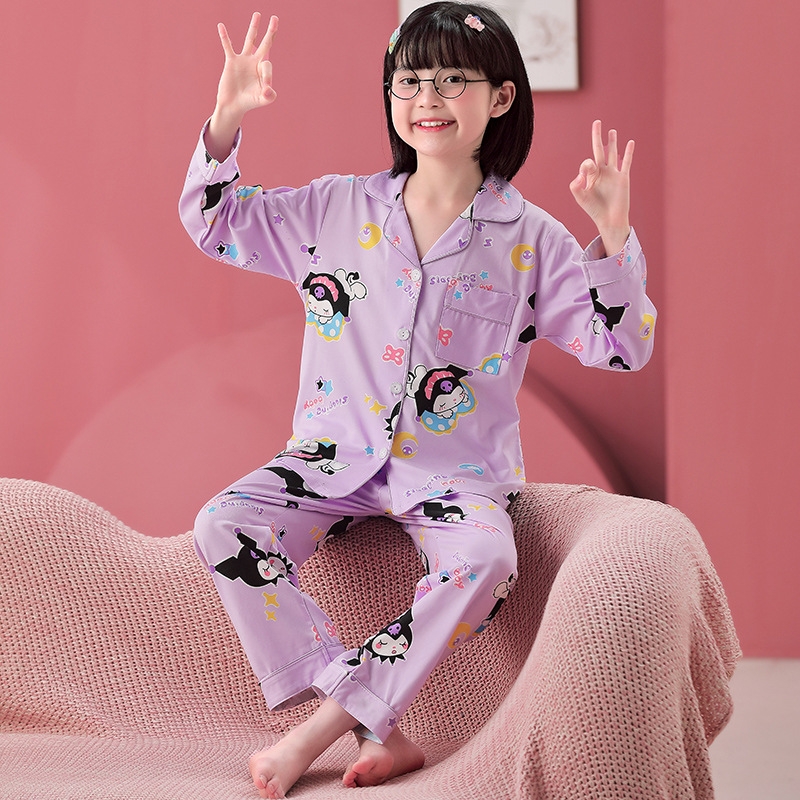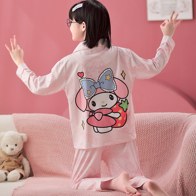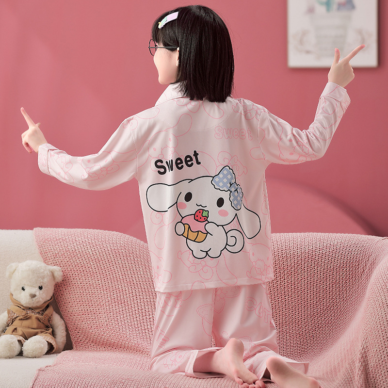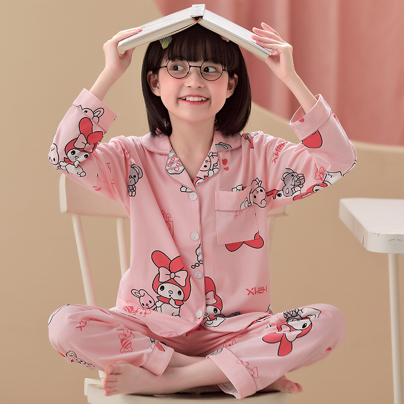 春秋季新款儿童女男童睡衣长袖米奇仿棉开衫母女小孩卡通翻领套装