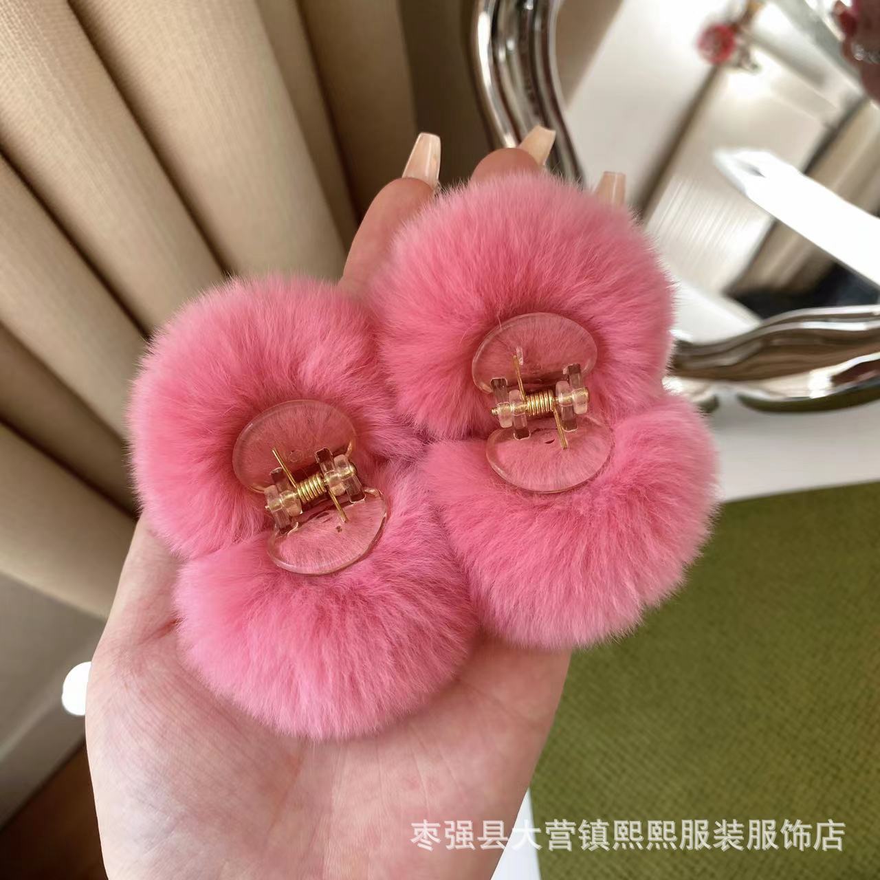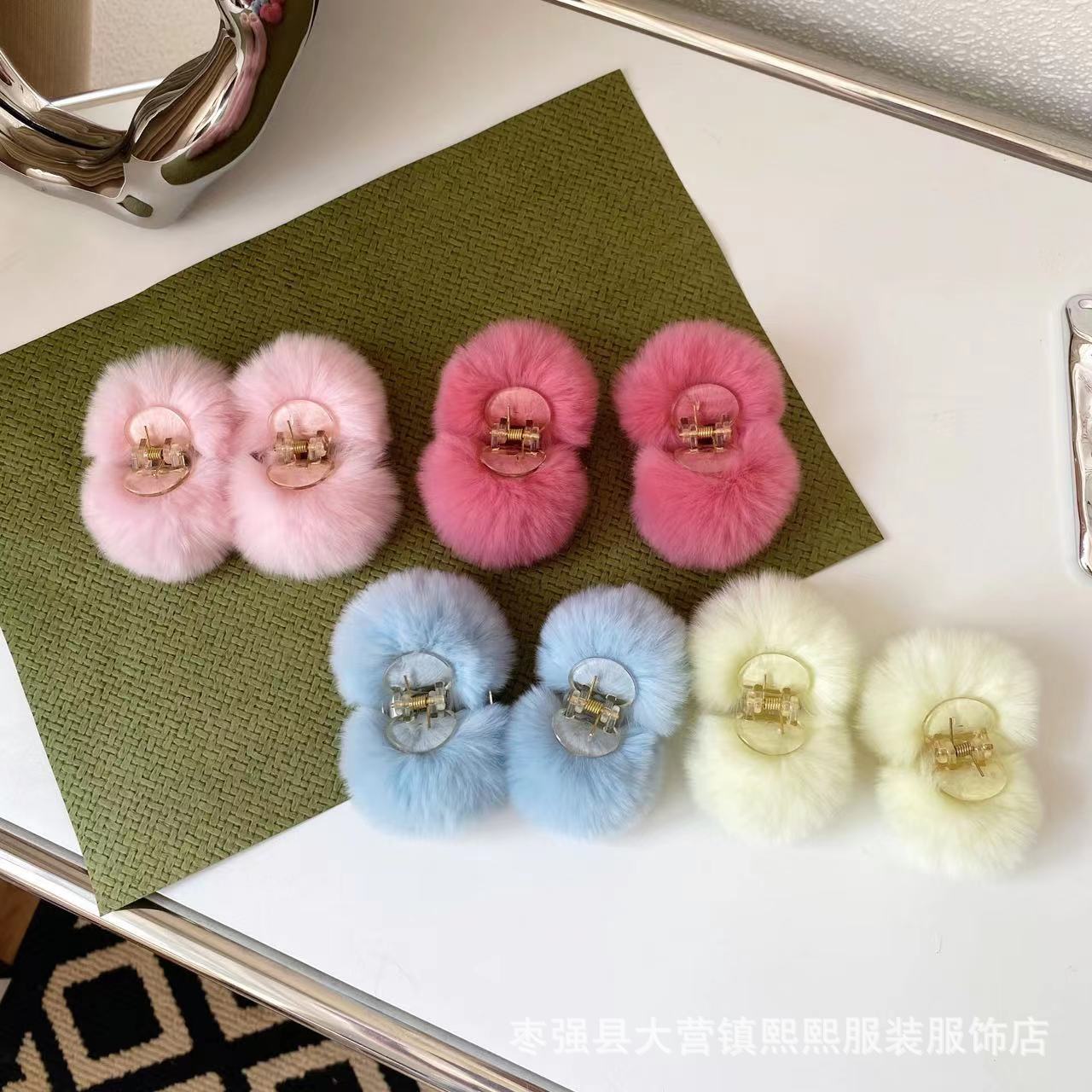 秋冬新款真獭兔毛毛球小号抓夹前额刘海碎发毛茸夹子毛绒鲨鱼夹发