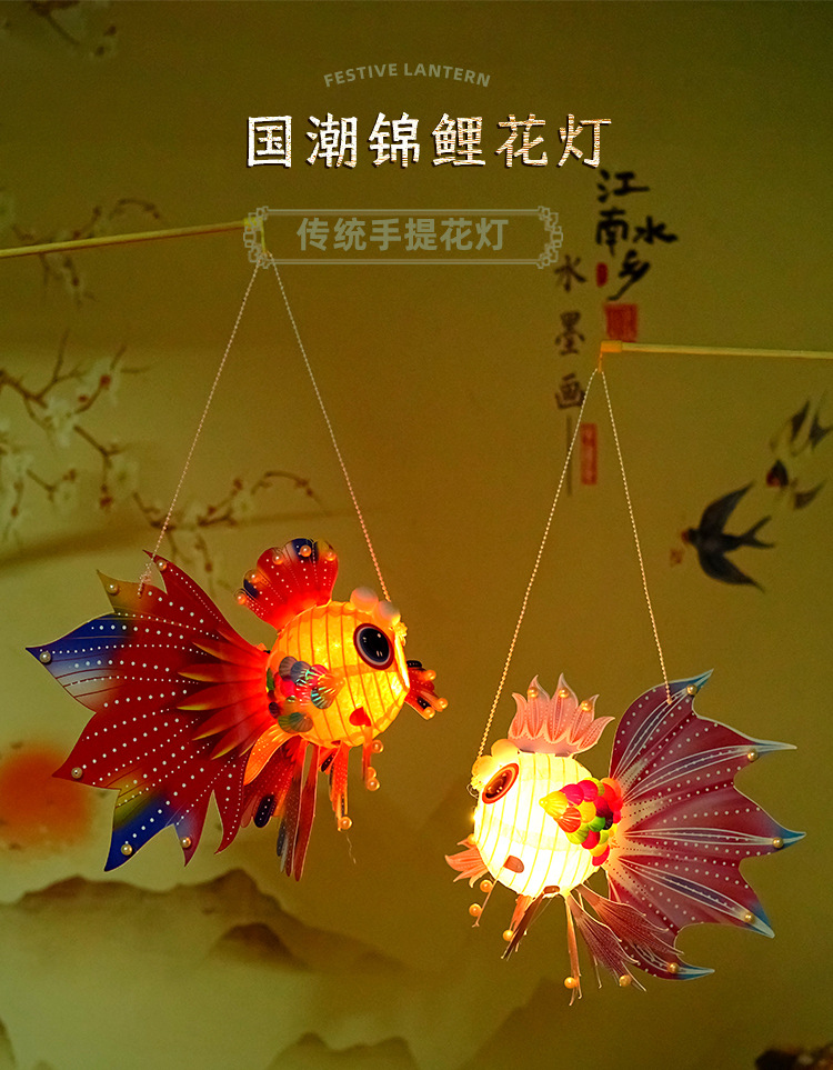 中秋节金鱼灯笼手工diy材料包 2024新款儿童手提锦鲤花灯宫灯挂饰