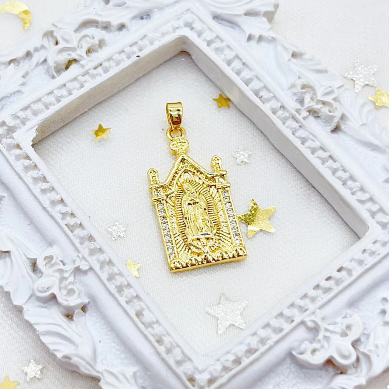 时尚欧美跨境新款圣母铜镀真金微镶锆石吊坠配件