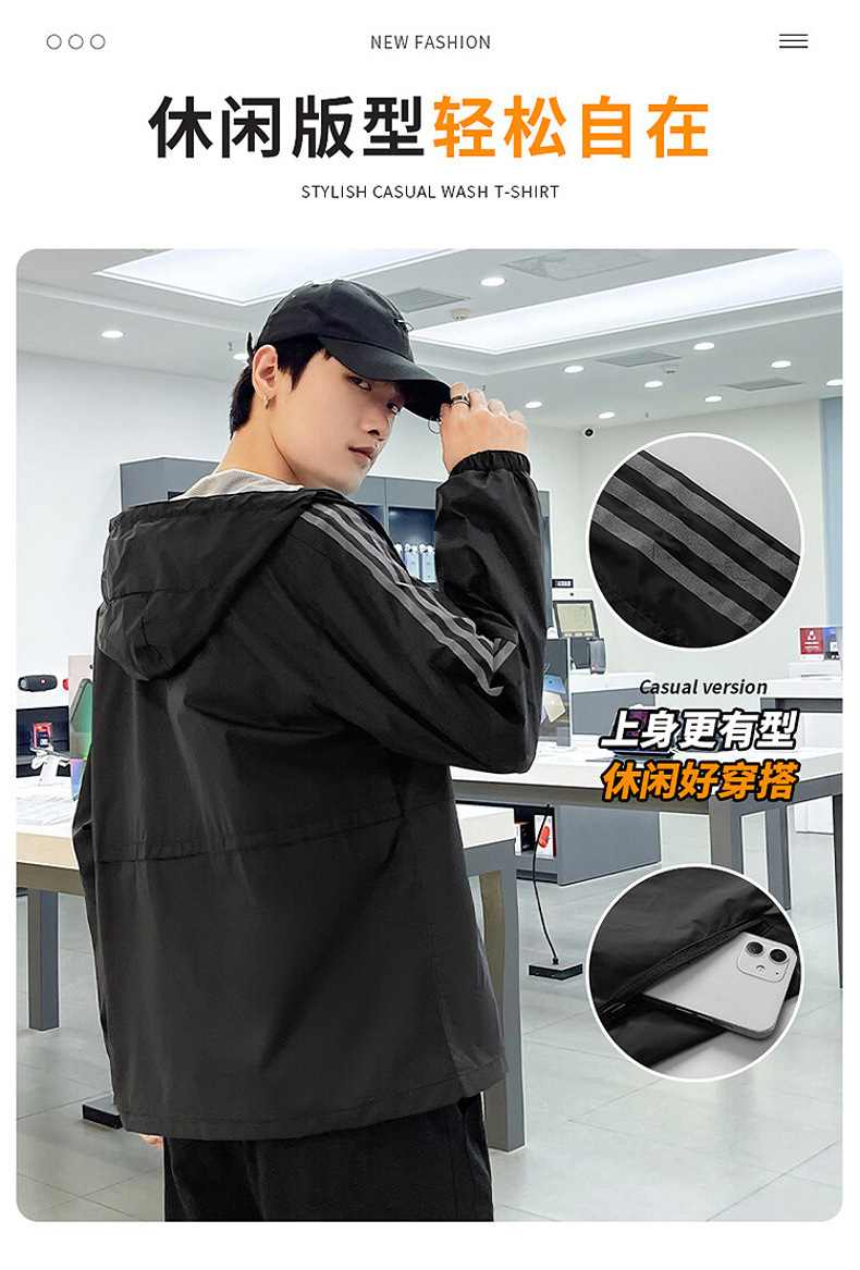 运动外套连帽夹克男2024秋季薄款高品质锦纶风衣户外休闲外衣男款