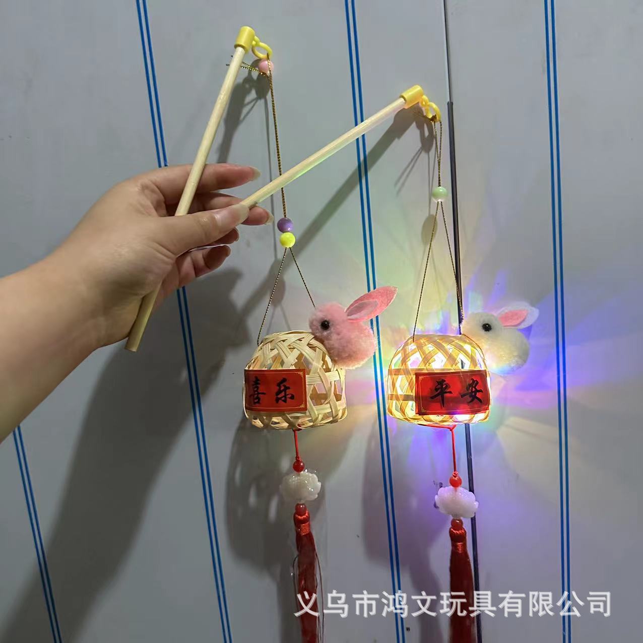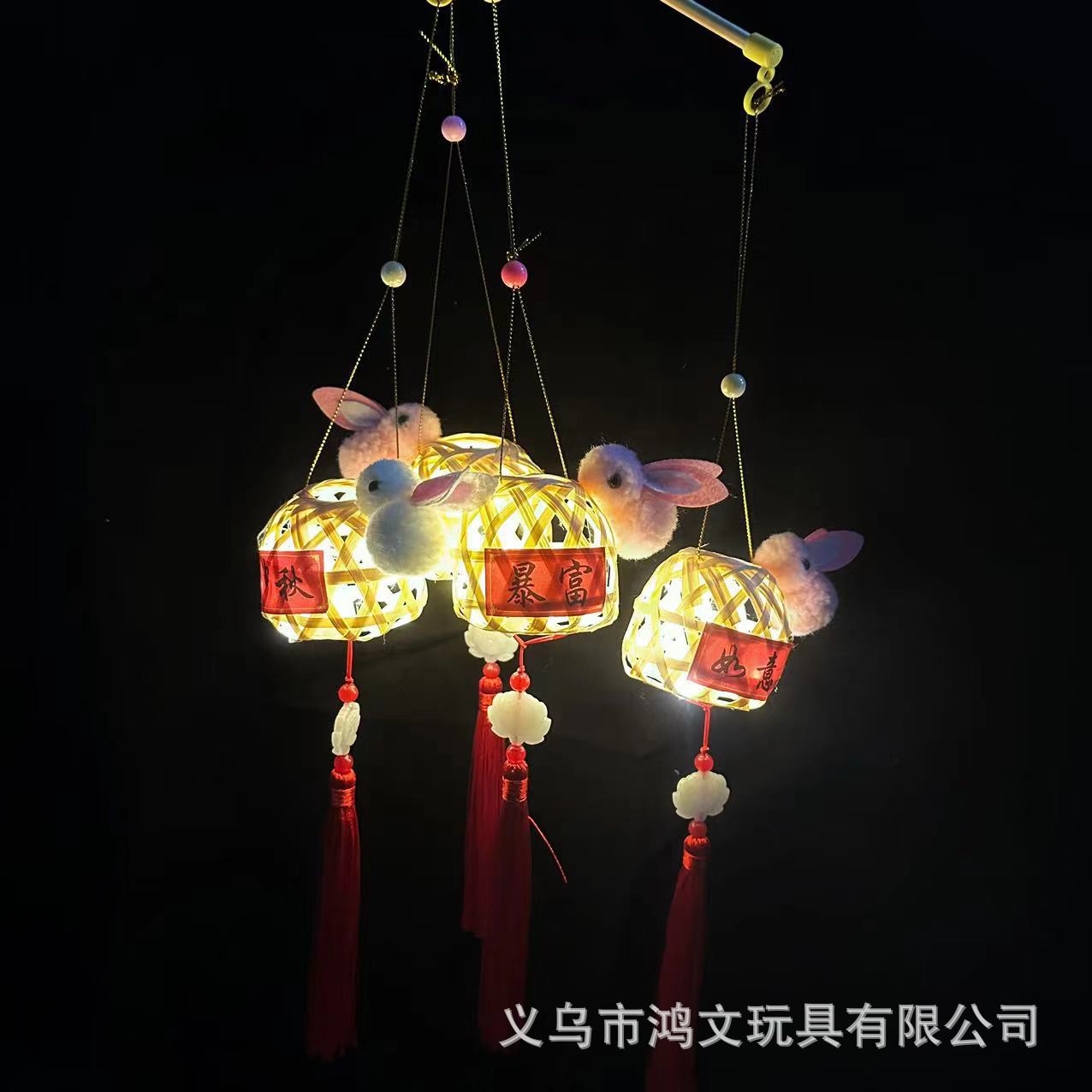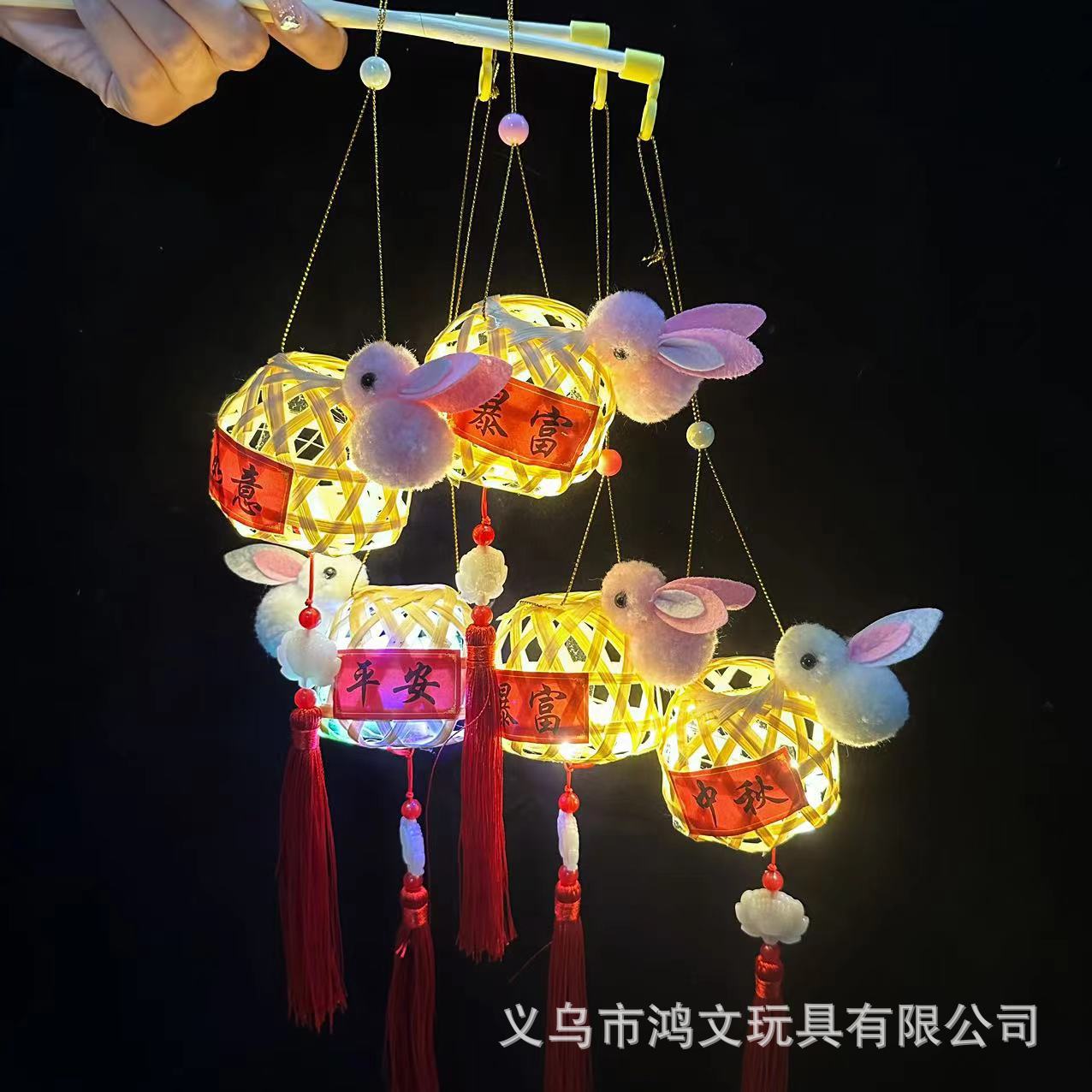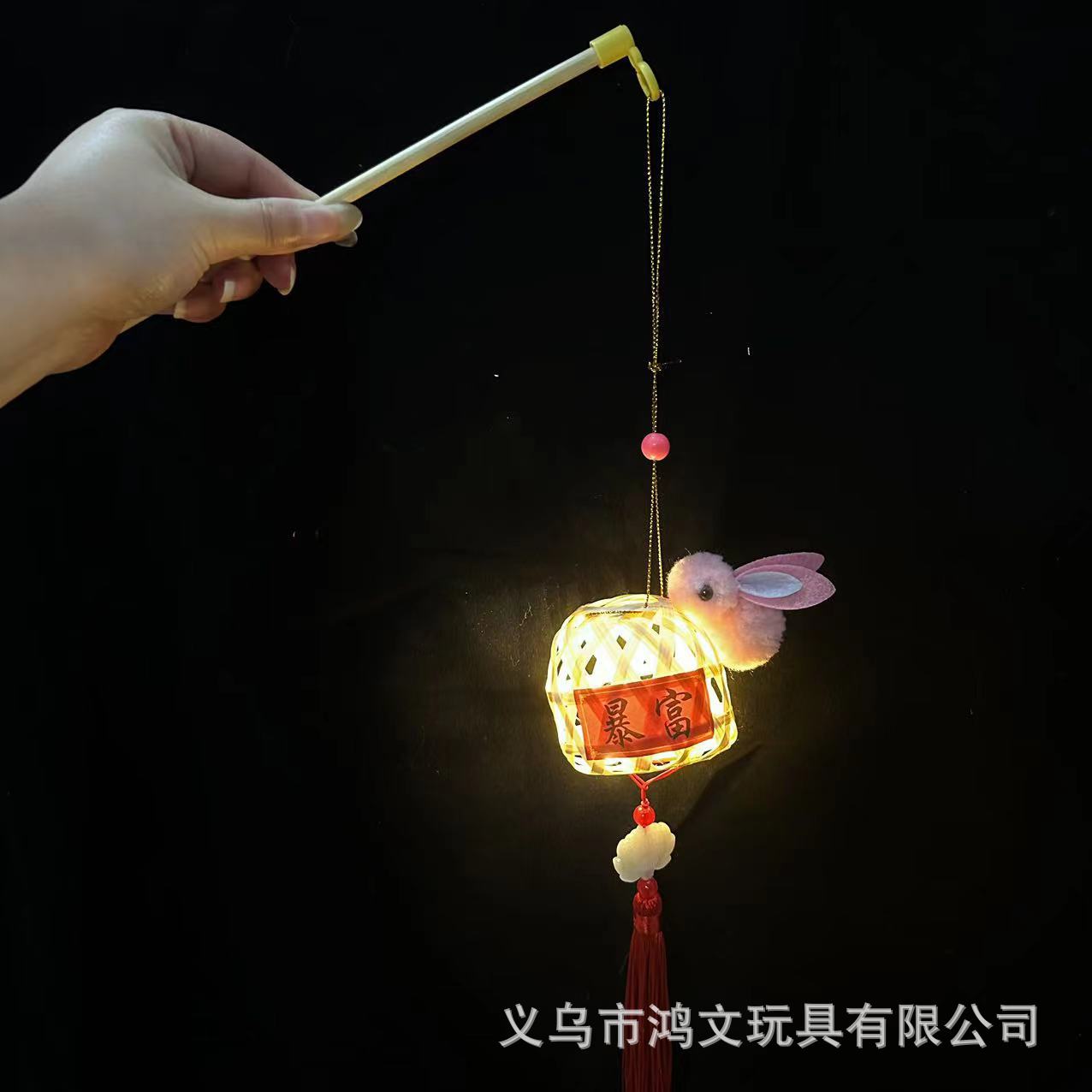 发光竹编兔子灯笼中秋节儿童手提发光玩具手工小礼品景区热卖花灯