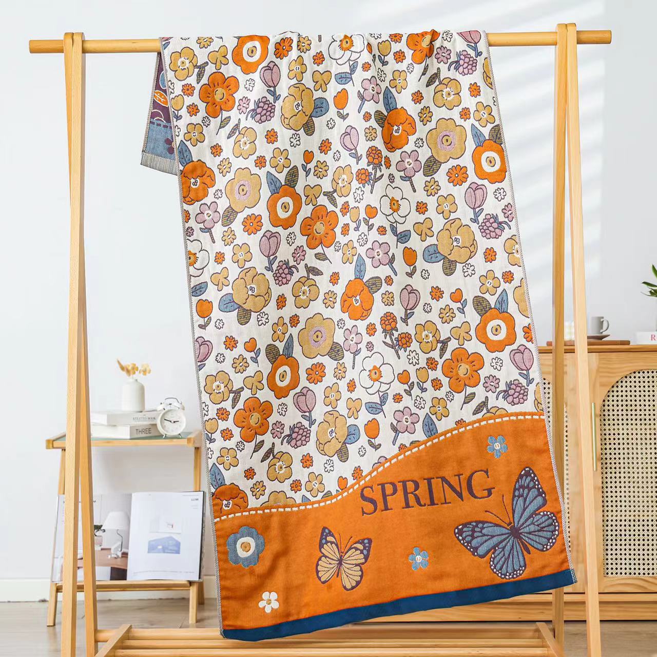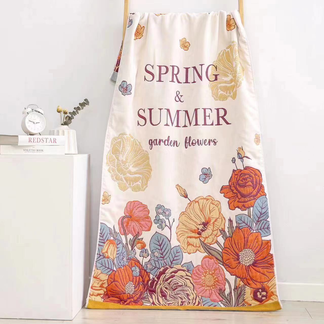 80*160加大四层彩棉纱布浴巾新疆长绒棉成人洗澡纯棉吸水浴巾速干