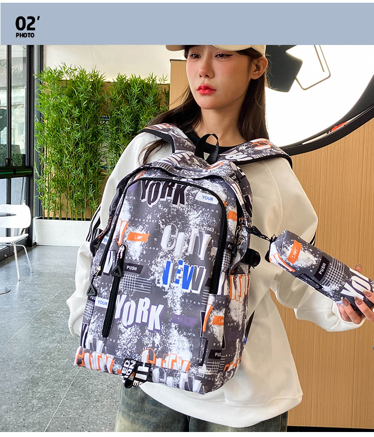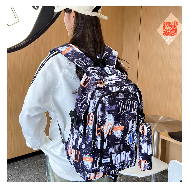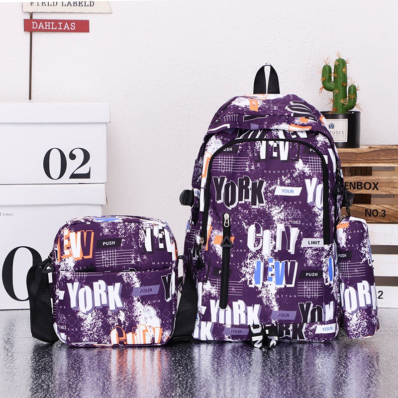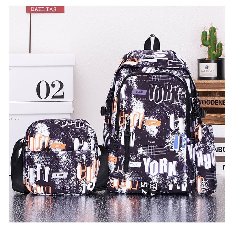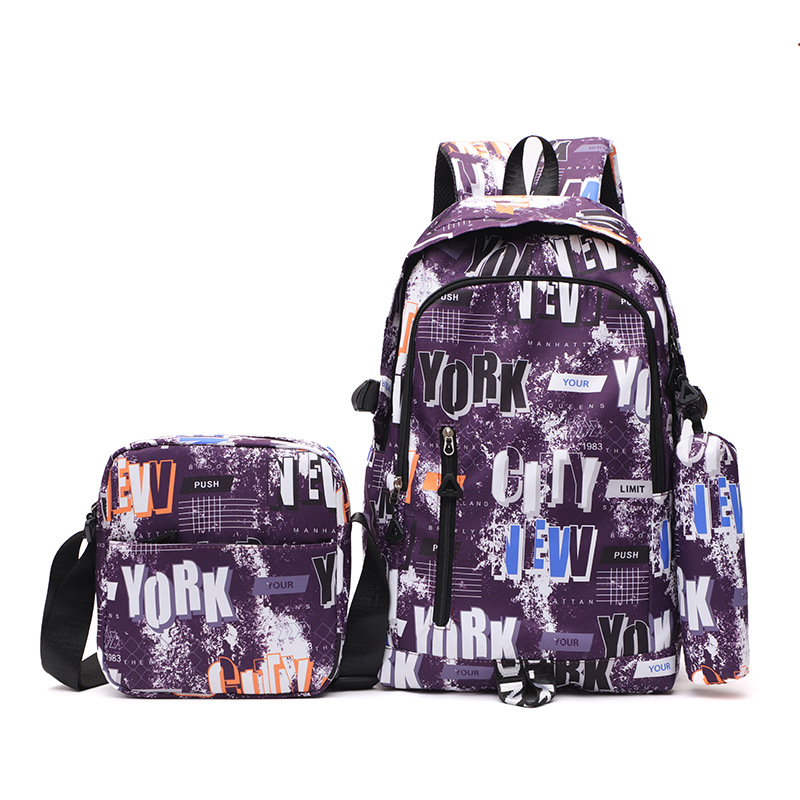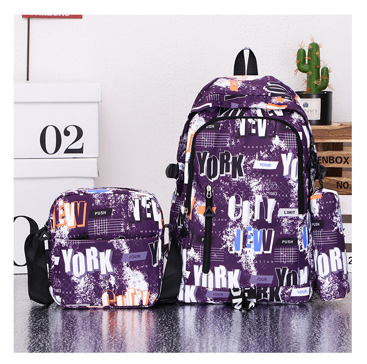 2024厂家新款高颜值初高中学生书包尼龙三件套双肩包