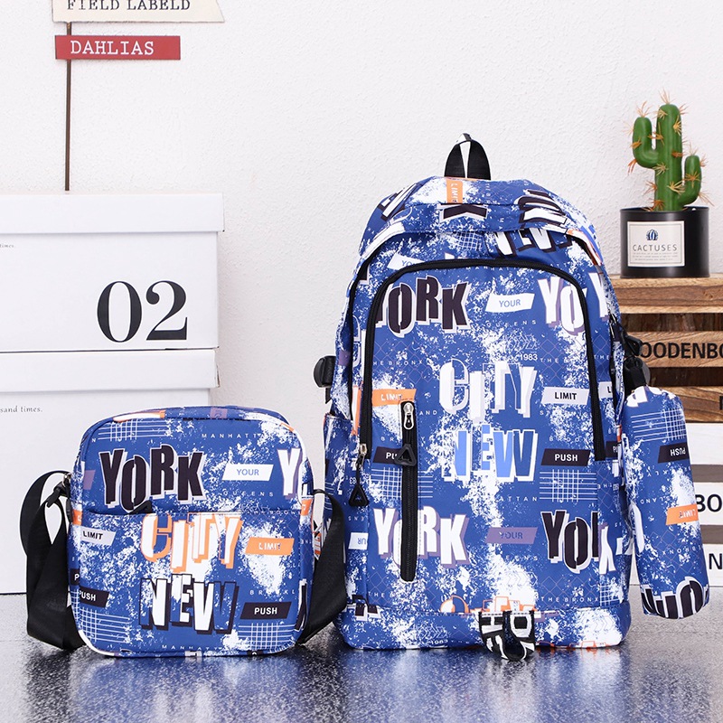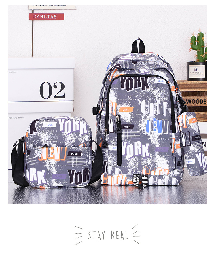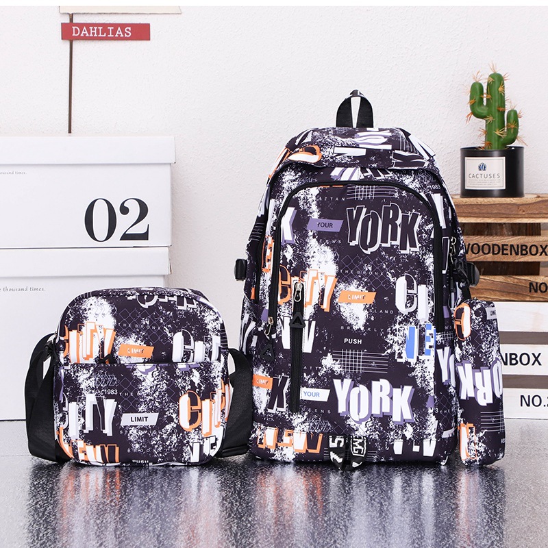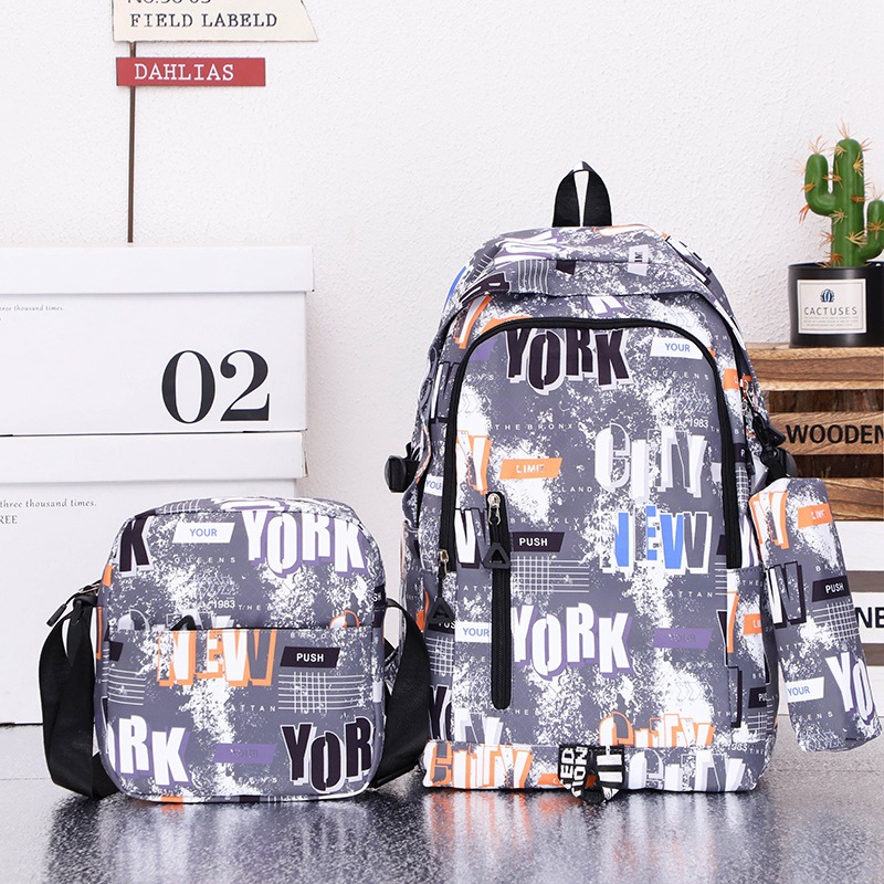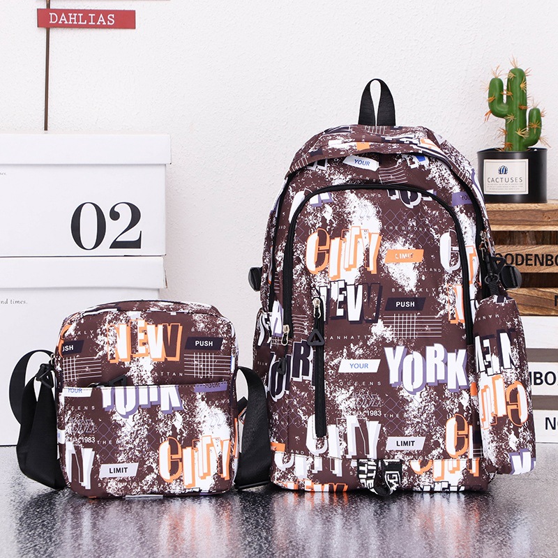 2024厂家新款高颜值初高中学生书包尼龙三件套双肩包